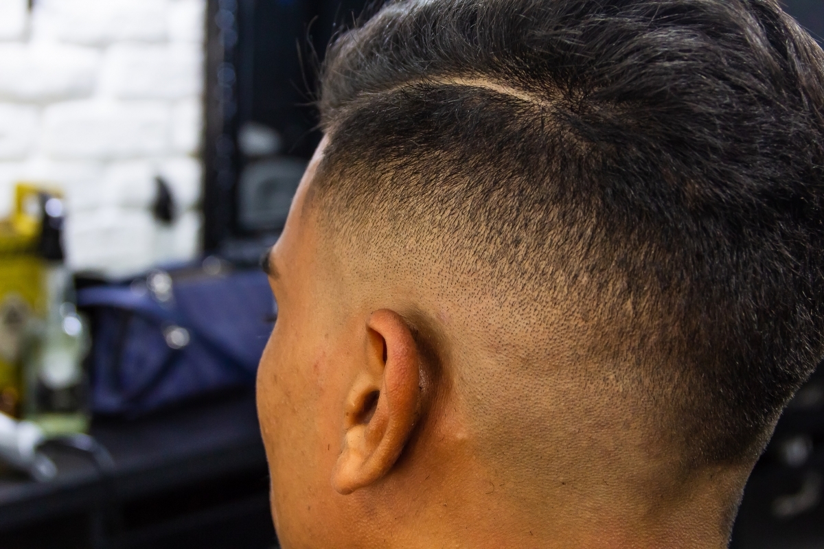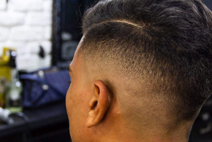 Corte: "Para deixar a mecha quiff bem em evidência, optei por um mix de cortes. Undercut, que é um corte sobre corte, uma parte usando máquina embaixo e tesoura na parte de cima (topo) e fade ou disfarçado. A principal característica do fade é deixar as laterais bem baixas e a nuca bem raspada na nuca, fazendo um degradee.