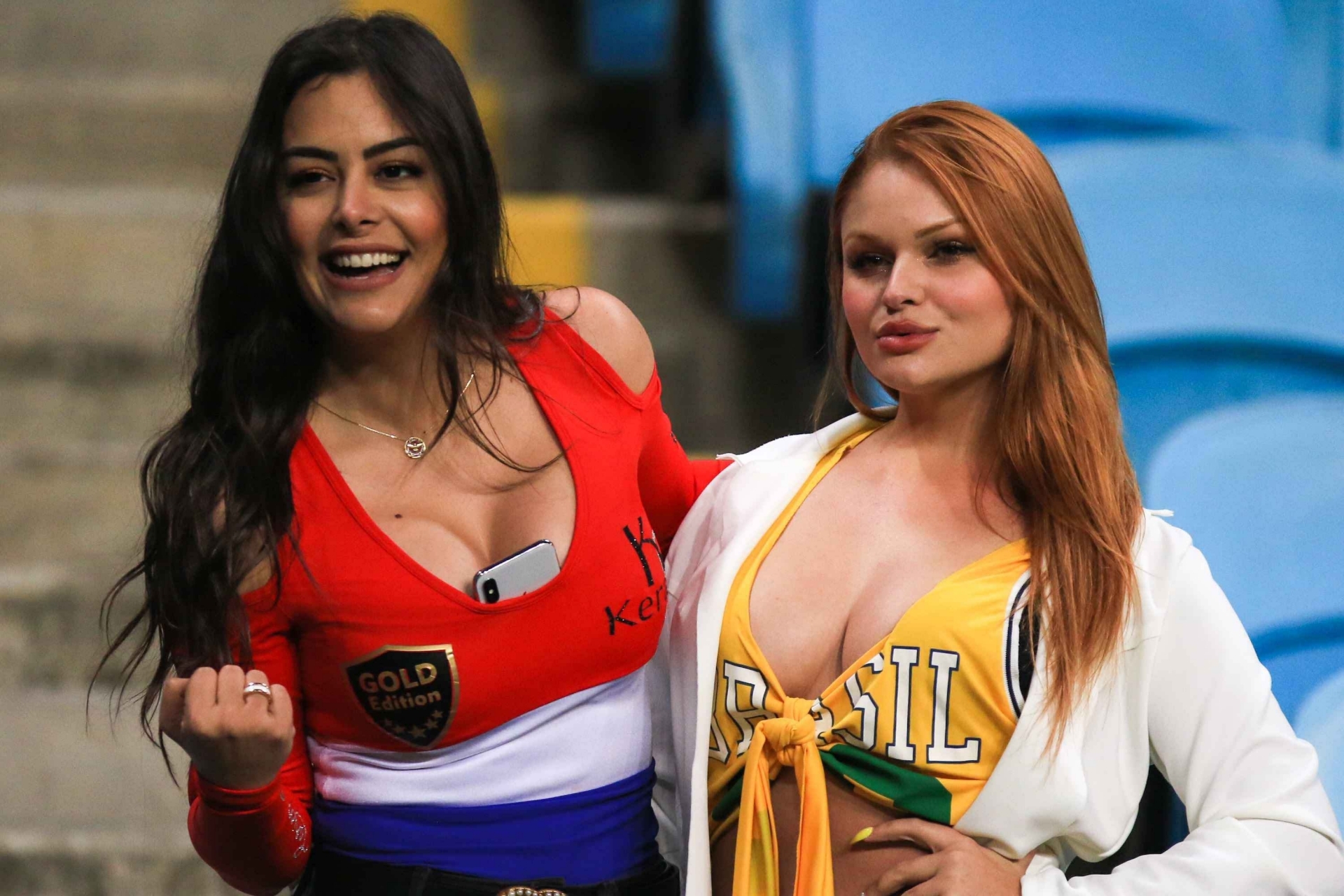 Foi clicada ao lado de uma amiga brasileira durante o jogo Brasil x Paraguai.
