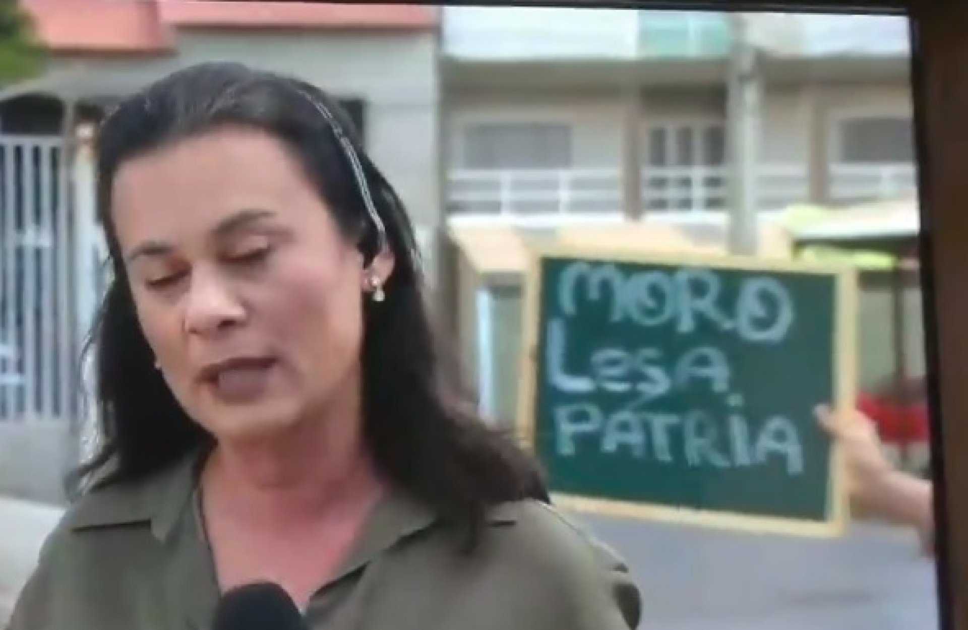 "Moro lesa pátria", era a inscrição do protesto, que foi escrito em um quadro negro e giz branco.