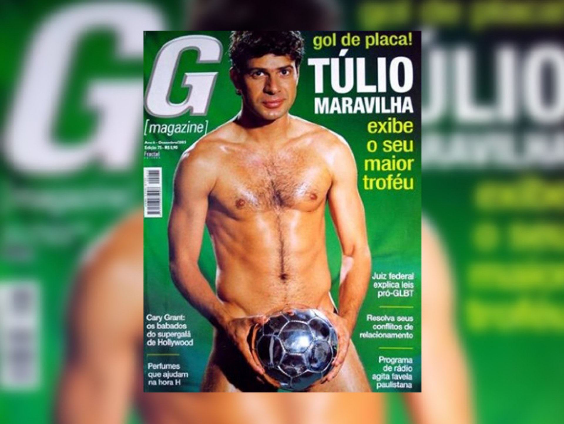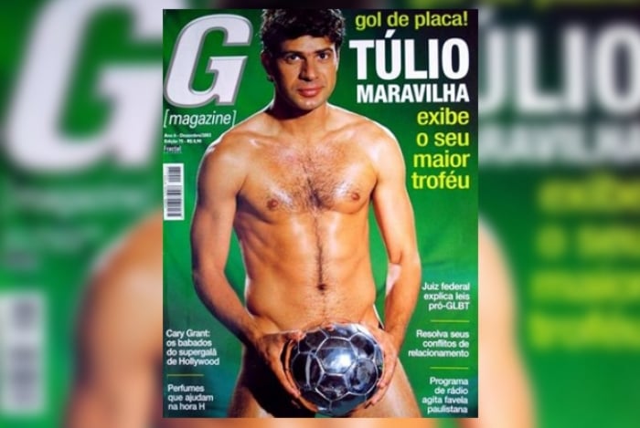 Um dos que ficaram peladão nas páginas da revista foi o ex-atleta, Túlio Maravilha. No auge de sua carreira o jogador revelou o guardava por debaixo do calção.