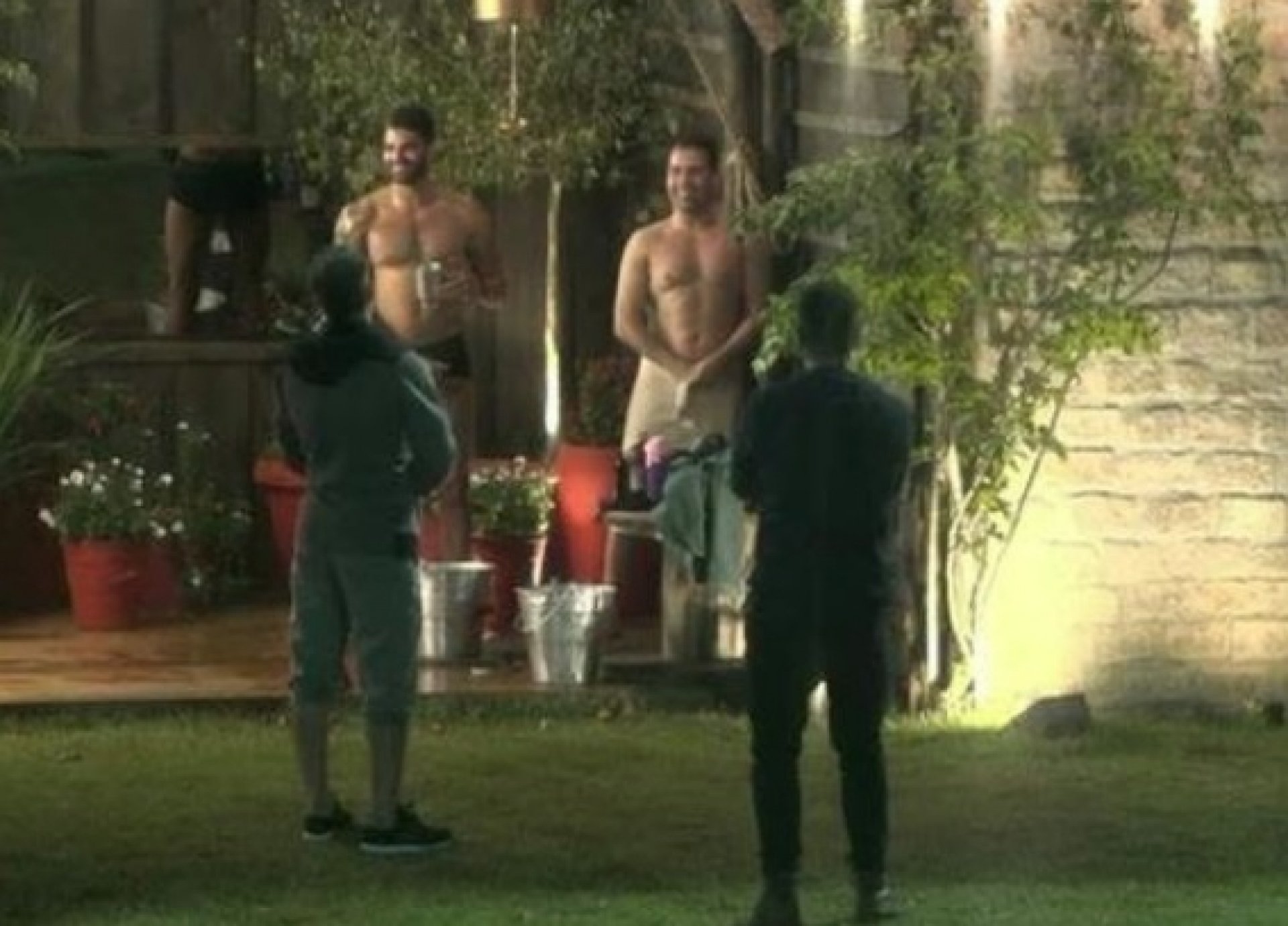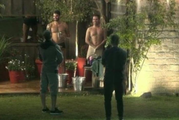Nesta quinta-feira, o humorista Viny Viera, deixou alguns participantes chocados na hora em que resolveu tomar banho. Ele optou por se banhar do lado de fora da casa e quando Hariany e Tati passaram ficaram chocadas ao ver o participante nu. Brasil. Cai o pano!