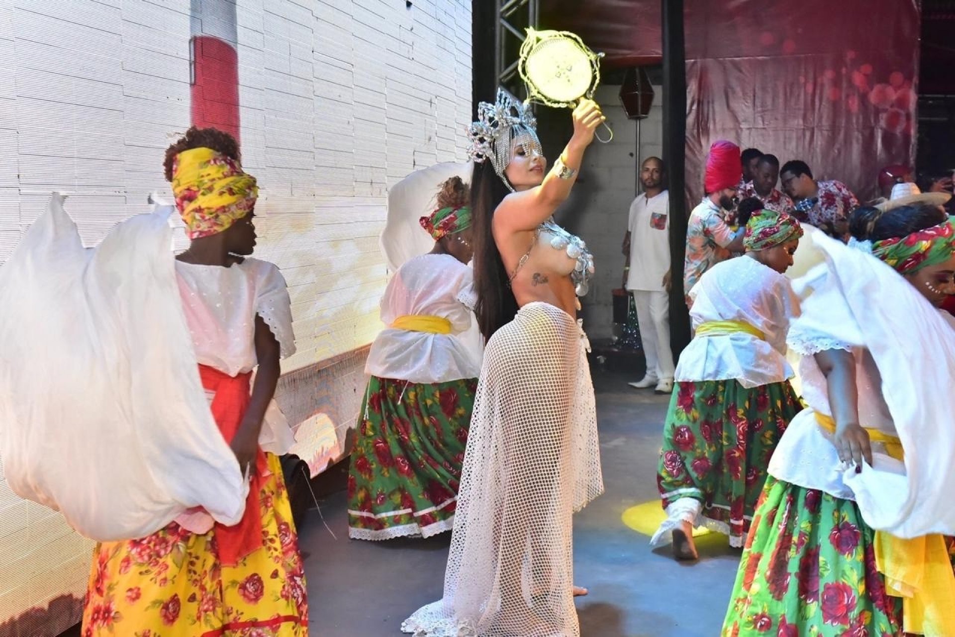 Por fim, Raissa sambou bastante à frente da bateria da escola, que em 2020 irá homenagear as Ganhadeiras de Itapuã, grupo musical que surgiu dos cantos, danças e crenças das lavadeiras do litoral da Bahia.