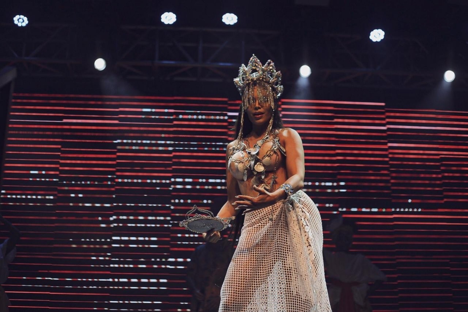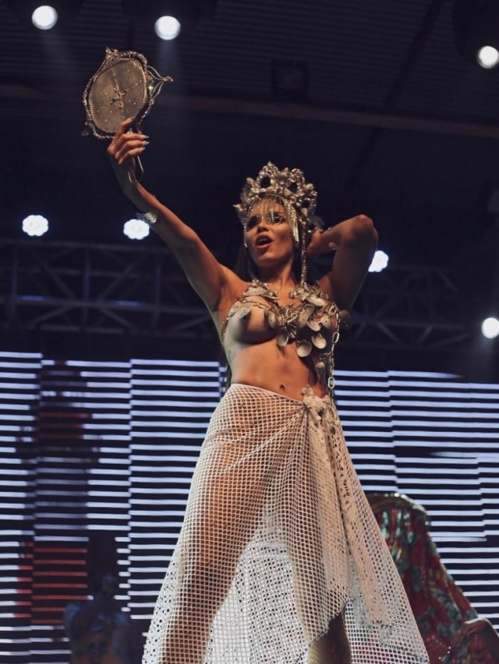 "Eu gosto de mostrar a minha personalidade nas roupas que visto. É ótimo ser você mesma. O Ruan já fez outros trabalhos comigo e sabe me vestir como eu me sinto bem", explicou a rainha, se referindo ao estilista Ruan Morelli, que assinou dois dos seus looks da noite.