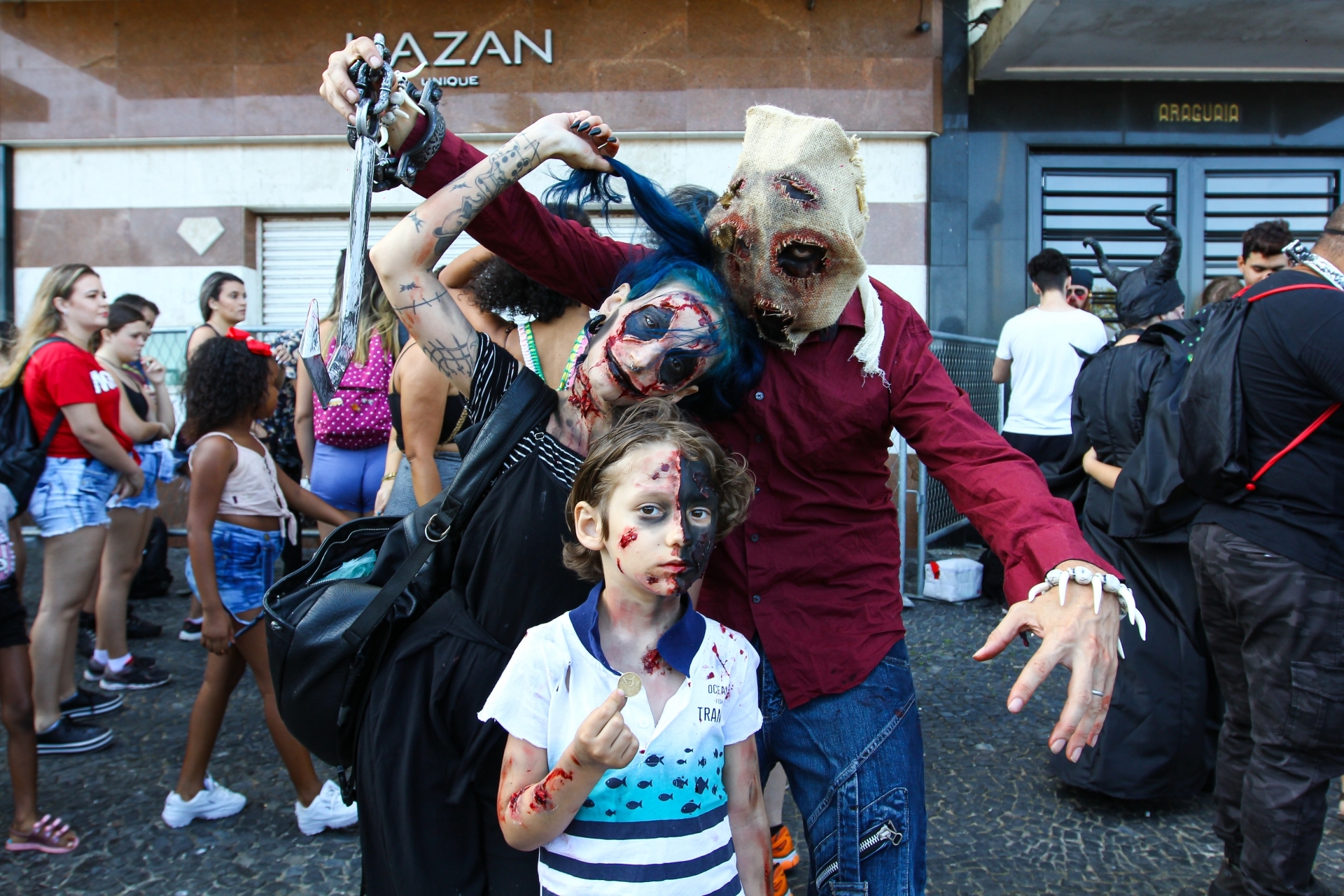 A Zombie Walk 2019 reuniu fãs e aficionados nos monstros, caracterizados da forma mais aterrorizante que conseguirem.