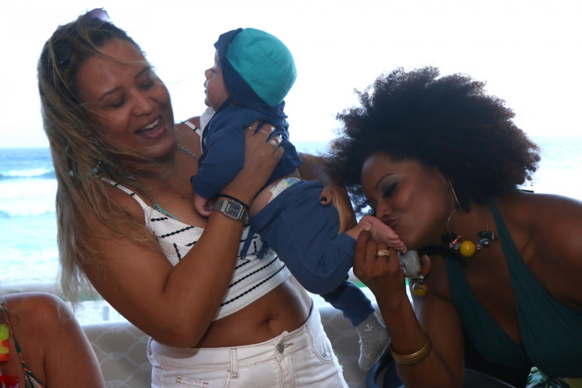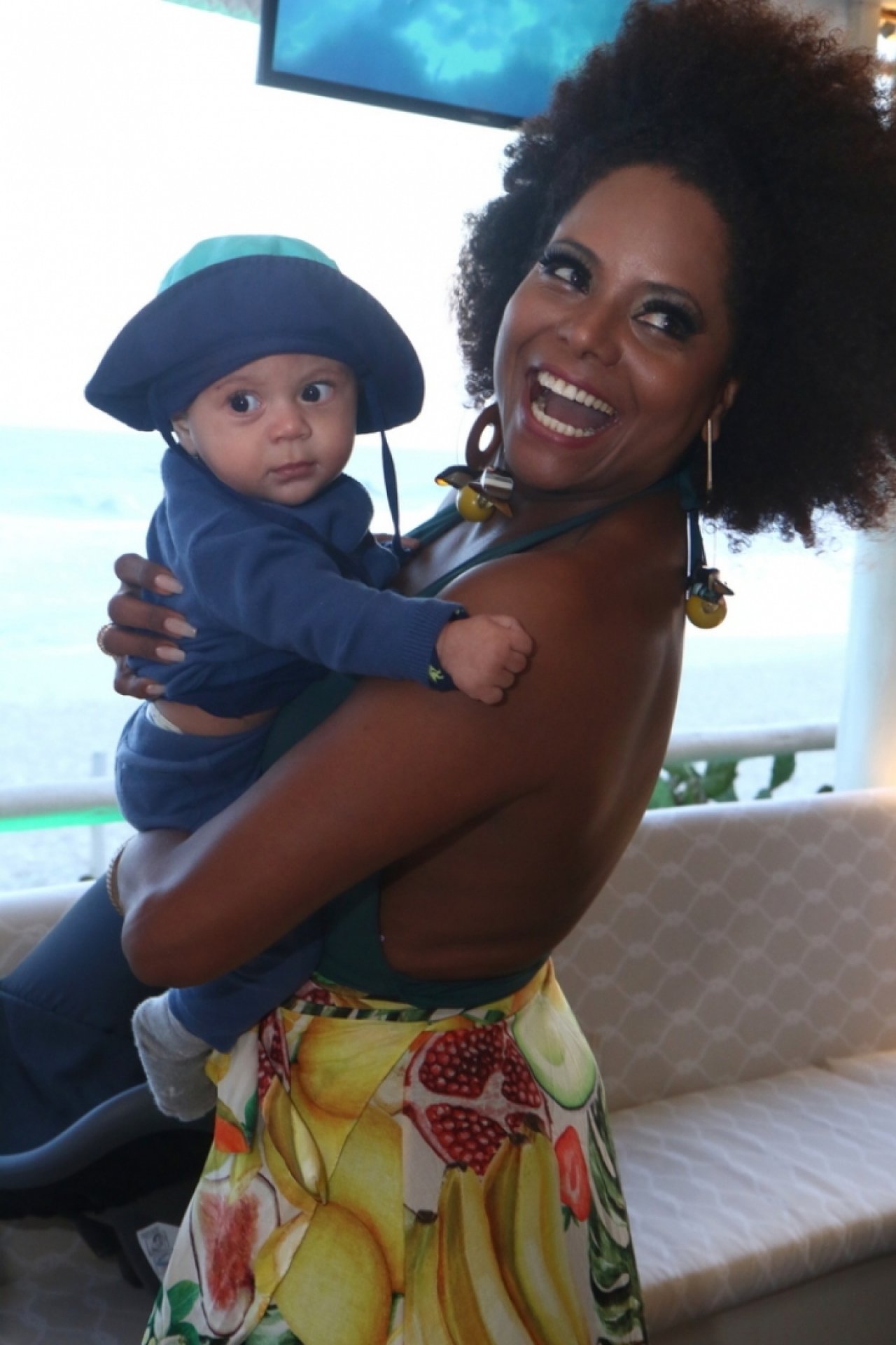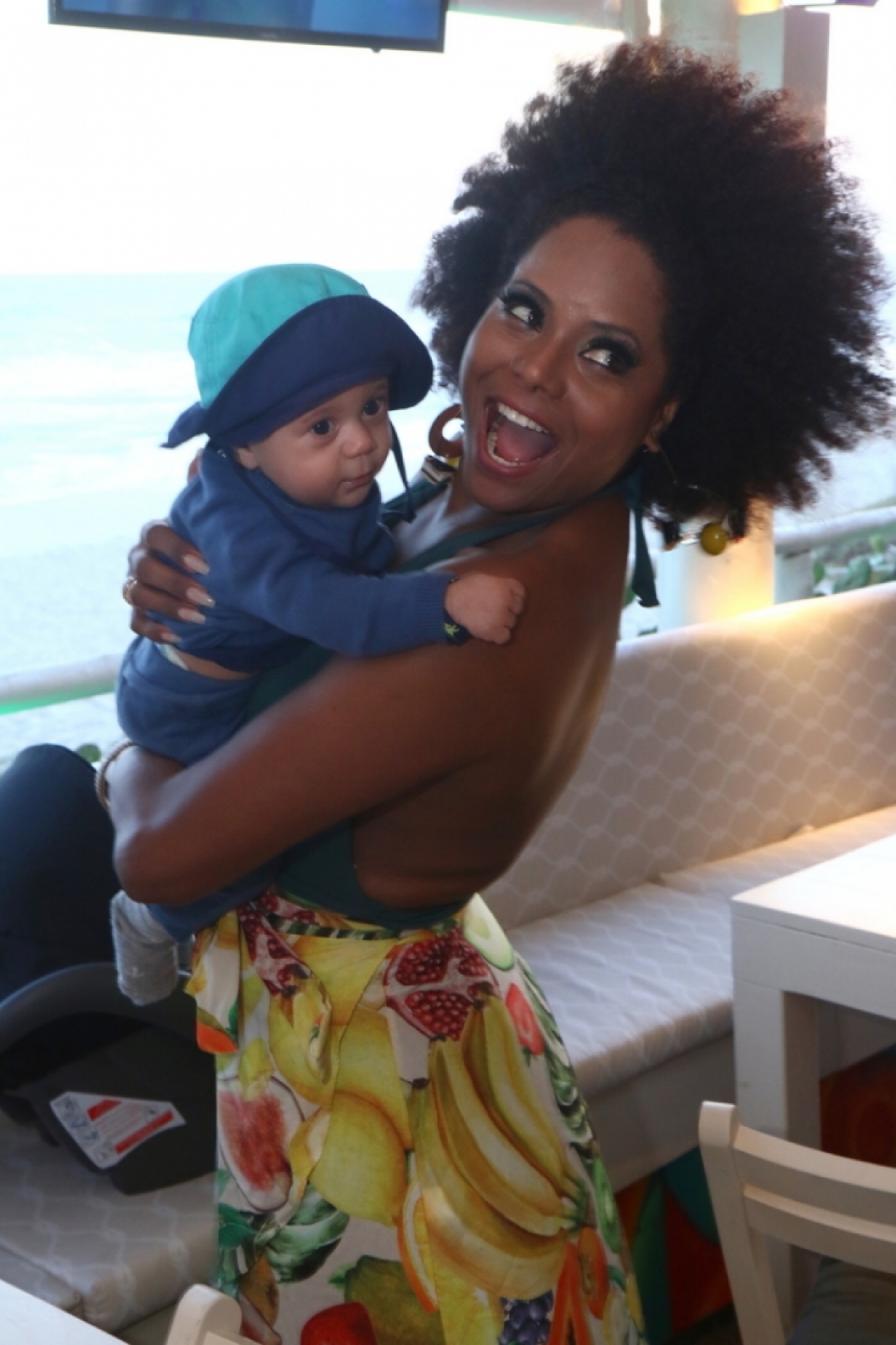 Adriana Bombom esteve no local ao lado do noivo Adrien Cunha e a filha Thalita Nobre.