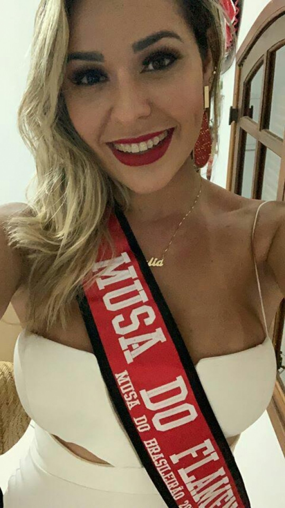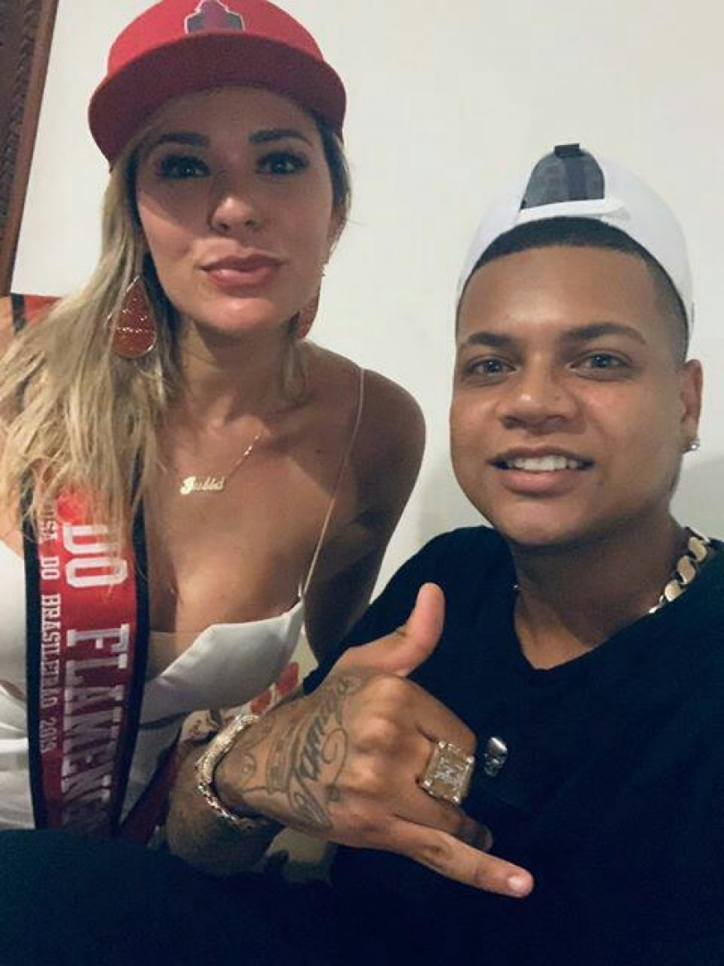A loira caiçara, natural da bela cidade do litoral sul carioca, aproveitou para dizer na publicação para os funkeiros que é muito fã das músicas deles e curtiu muito a noitada com a dupla sensação do funk e ostentou seu corpo escultural num lindo vestido branco e usando a faixa de Musa do Flamengo.