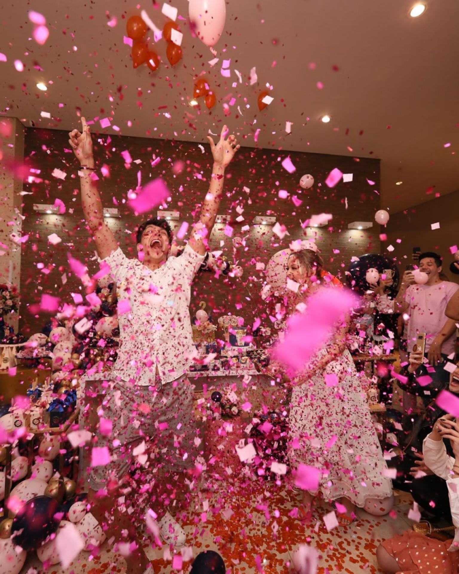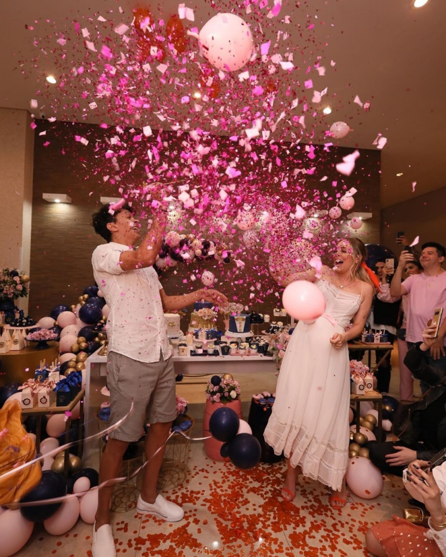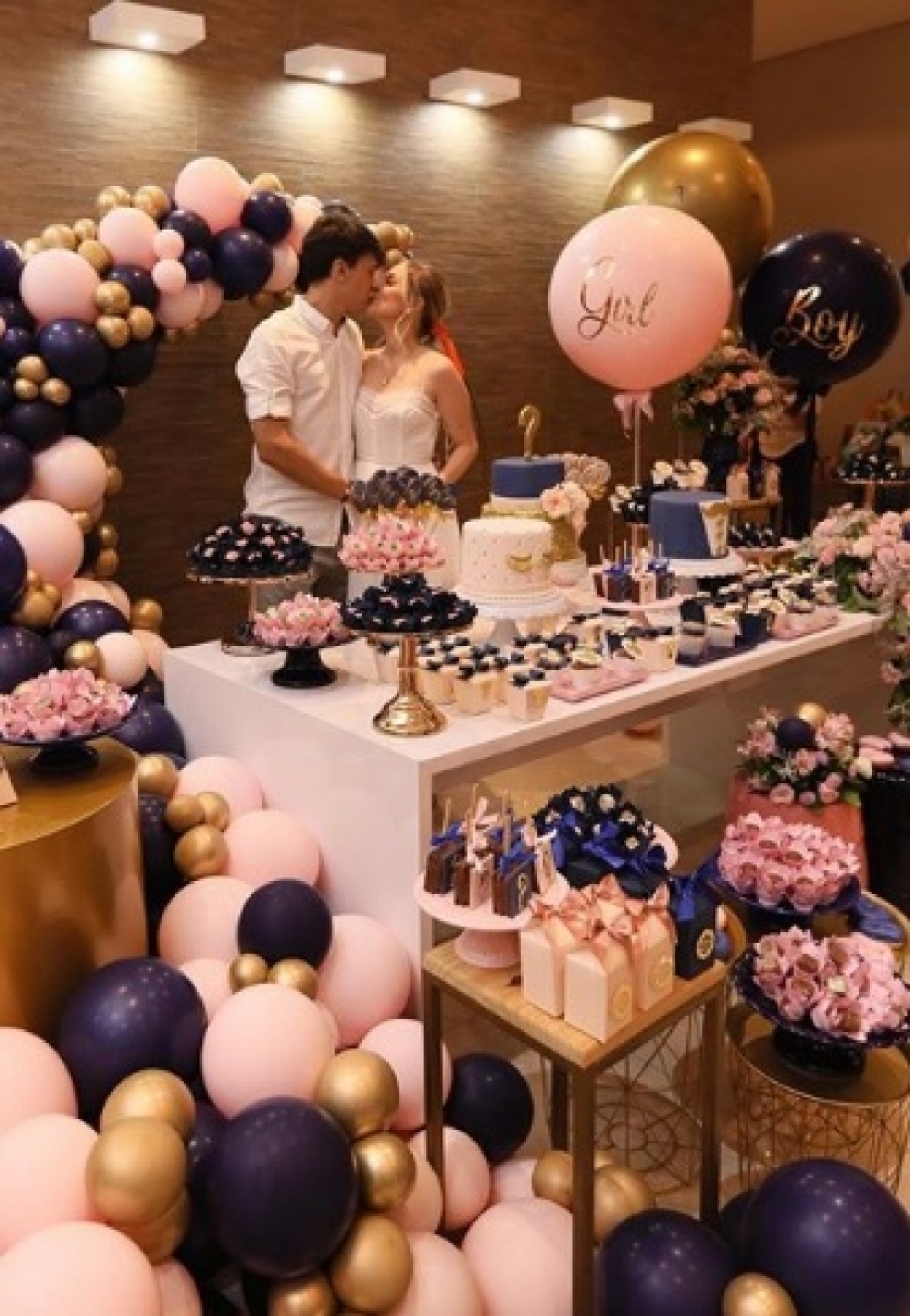 A festa, que teve patrocínio de uma marca de fralda, foi toda feita em azul e rosa com toques de dourado e deixou os fãs felizes da vida com a notícia.