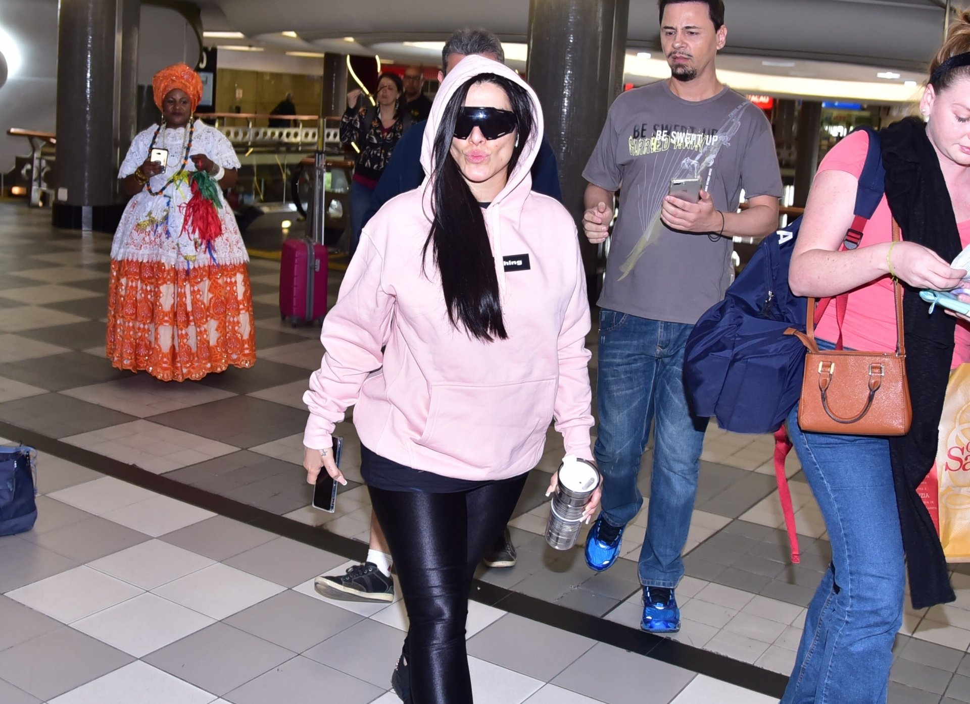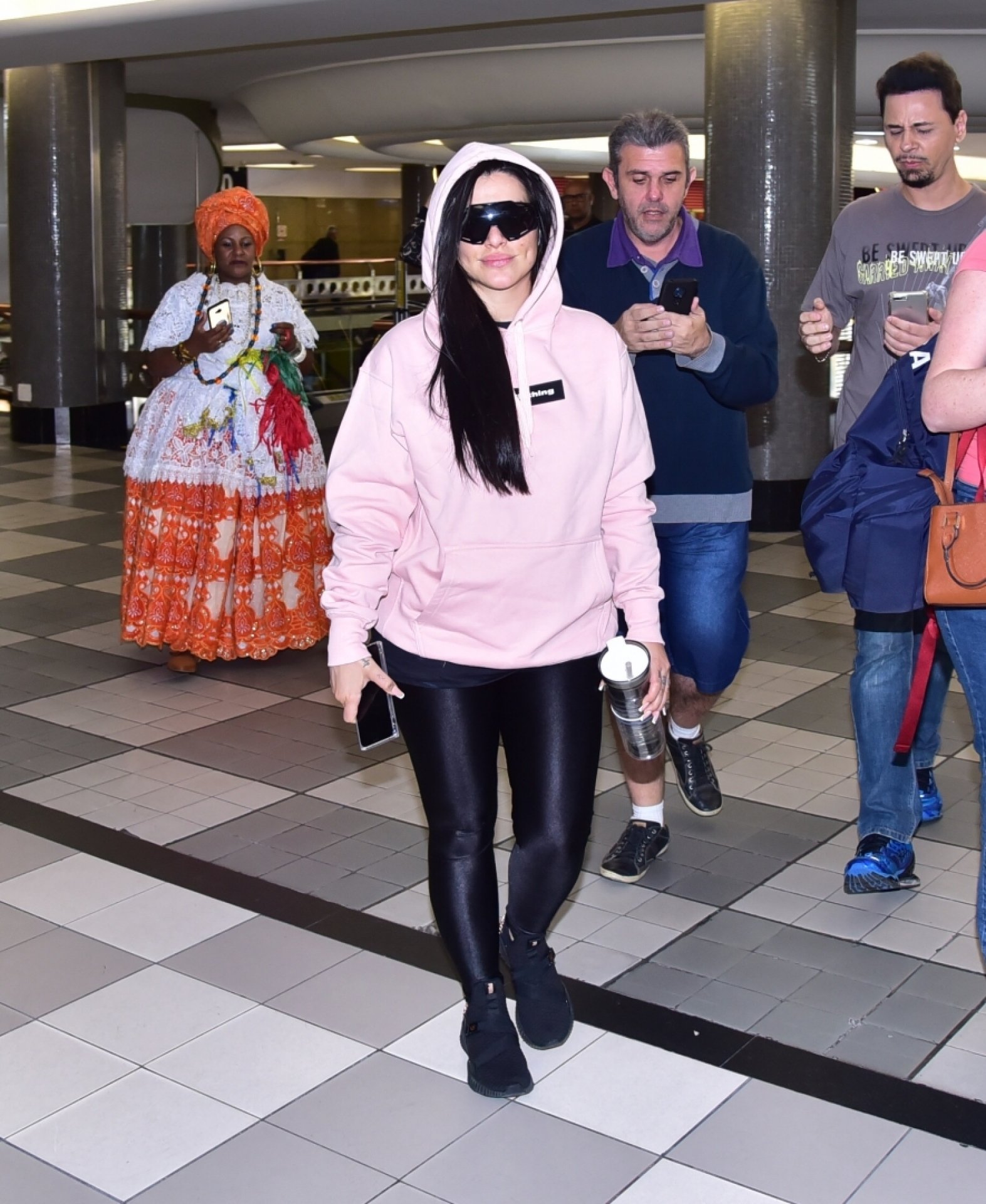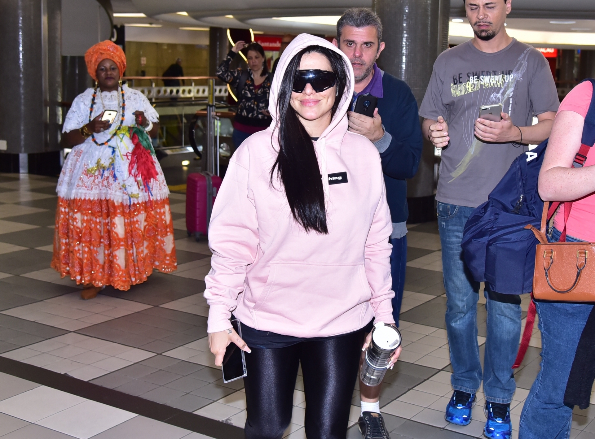 Cleo foi flagrada super básica andando pelos corredores do aeroporto de Congonhas, em São Paulo. Vestida com uma calça legging preta e um moletom cor de rosa, a atriz parou para atender fãs, tirar fotos e dar autógrafos. Um sucesso só, né mores? Veja fotos!
