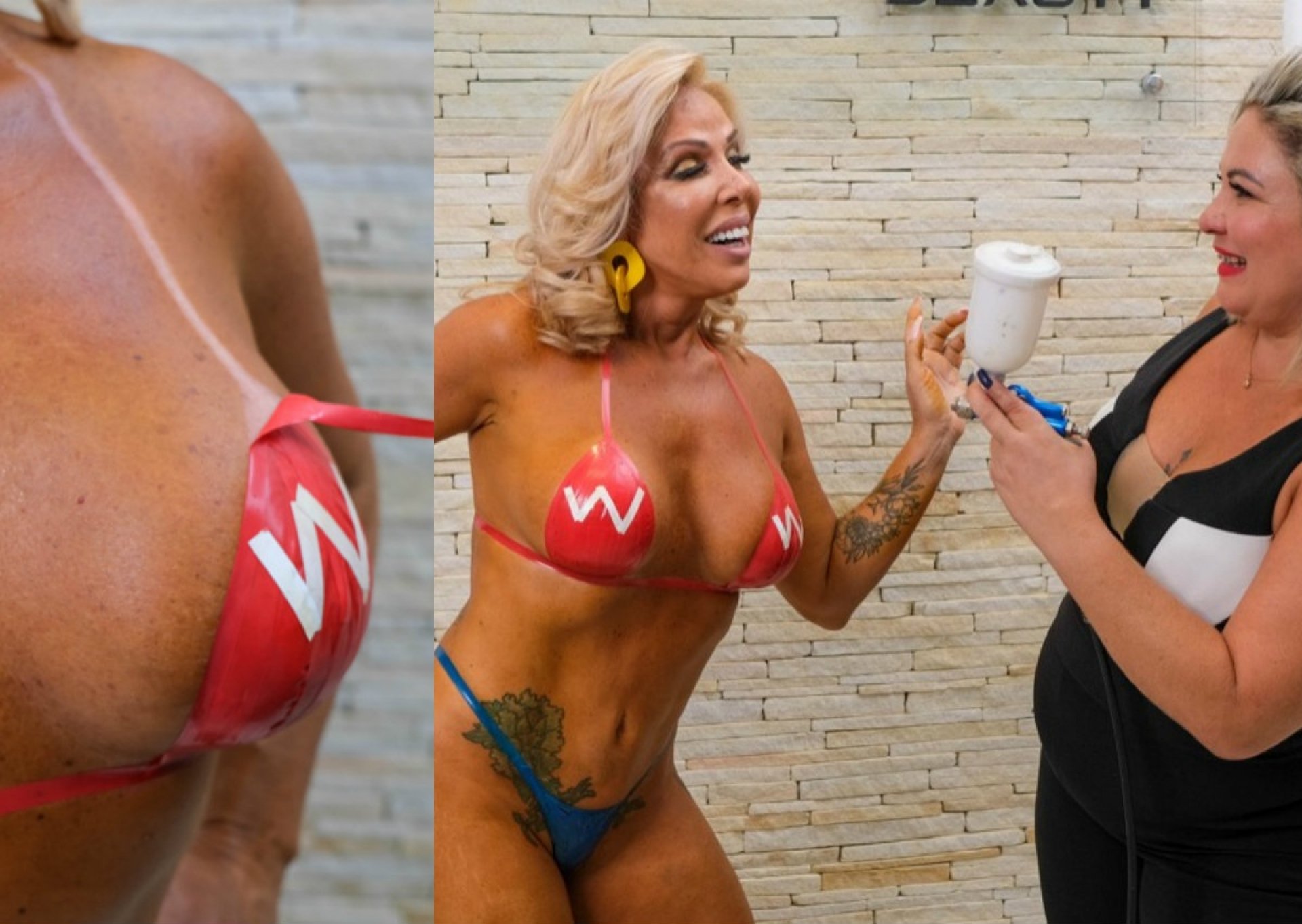 A 'Cinquentona mais sexy do Brasil' segundo votação da revista Sexy, Rosana Menezes, investiu no bronzeamento artificial para garantir o final de ano.