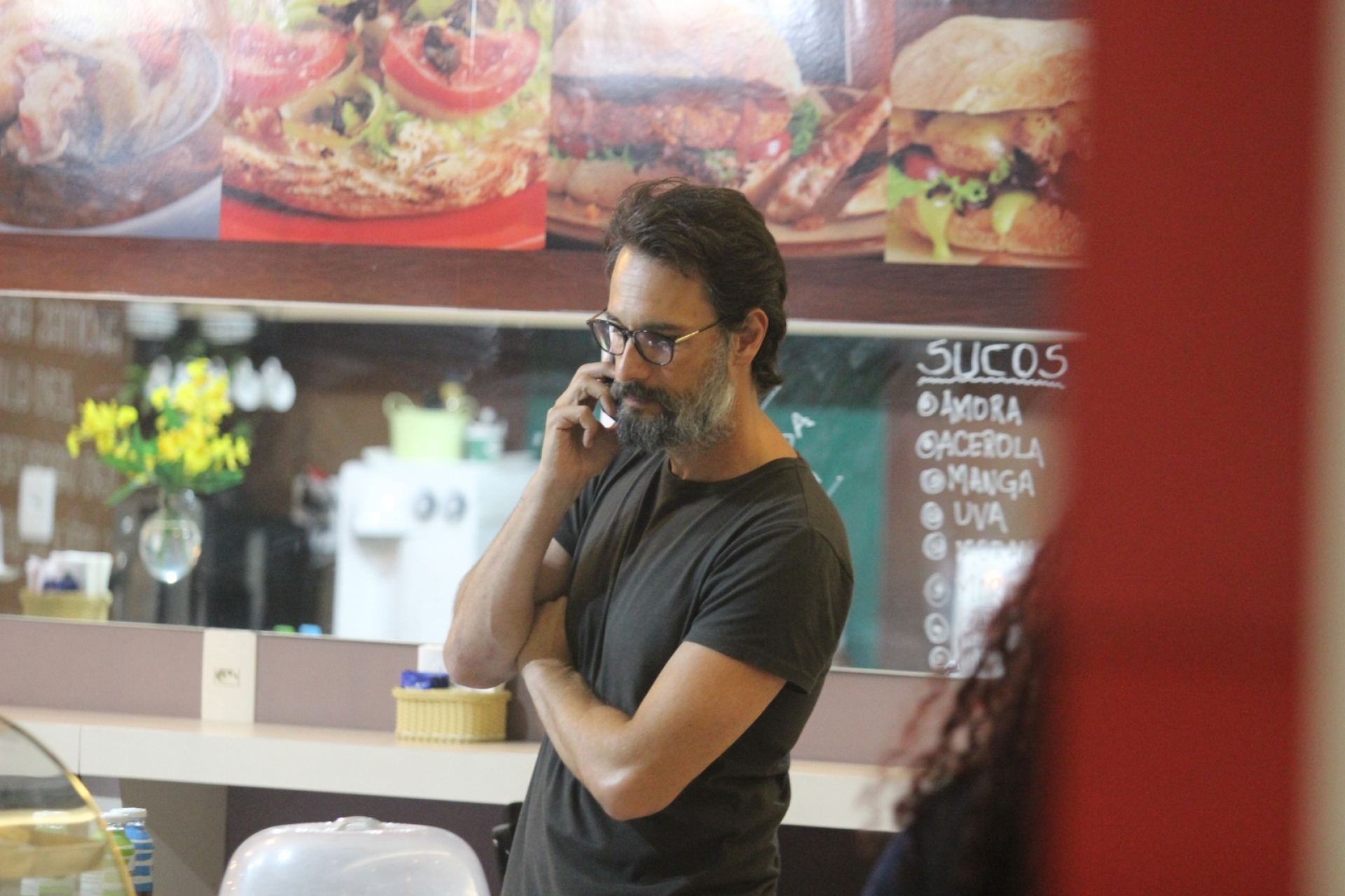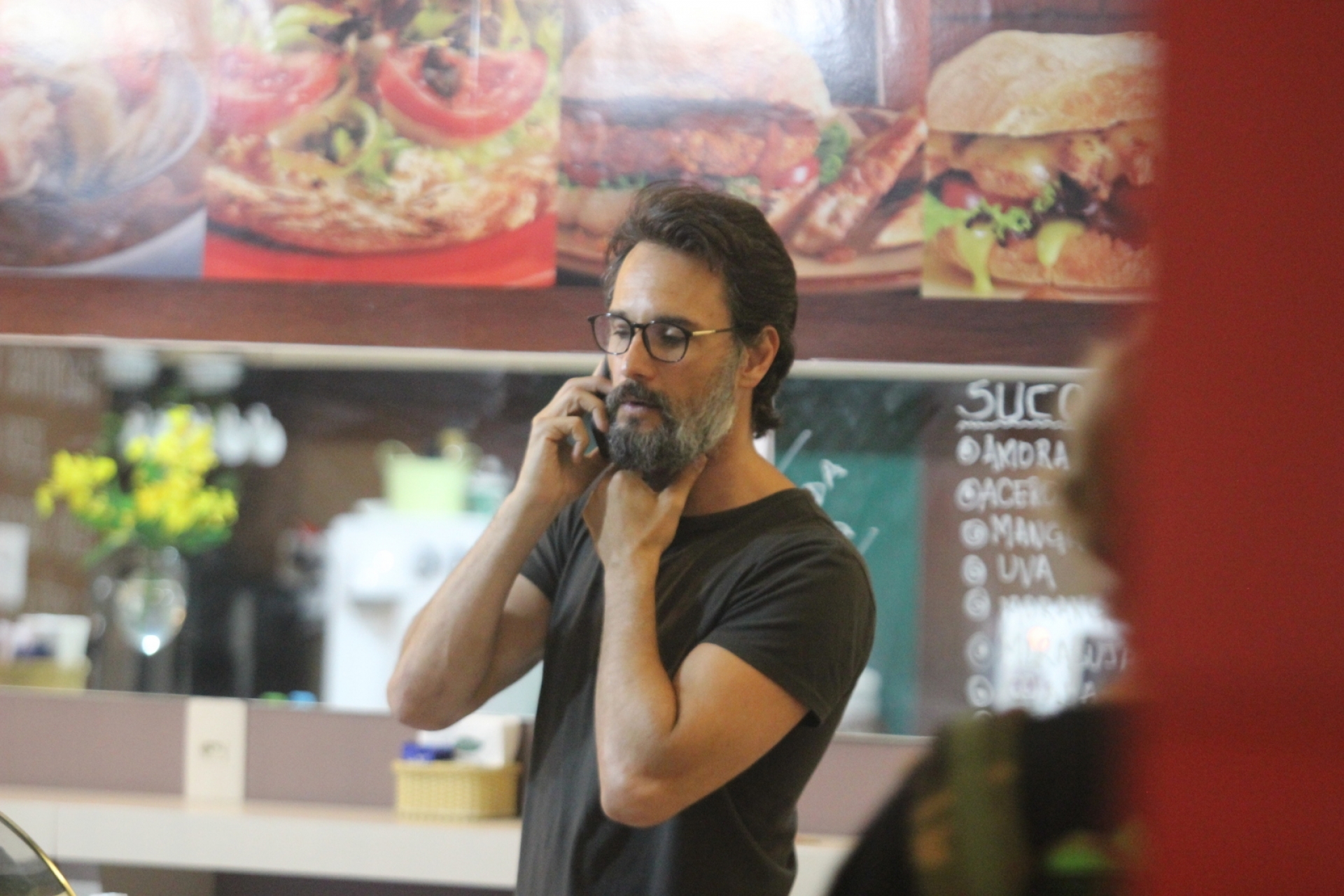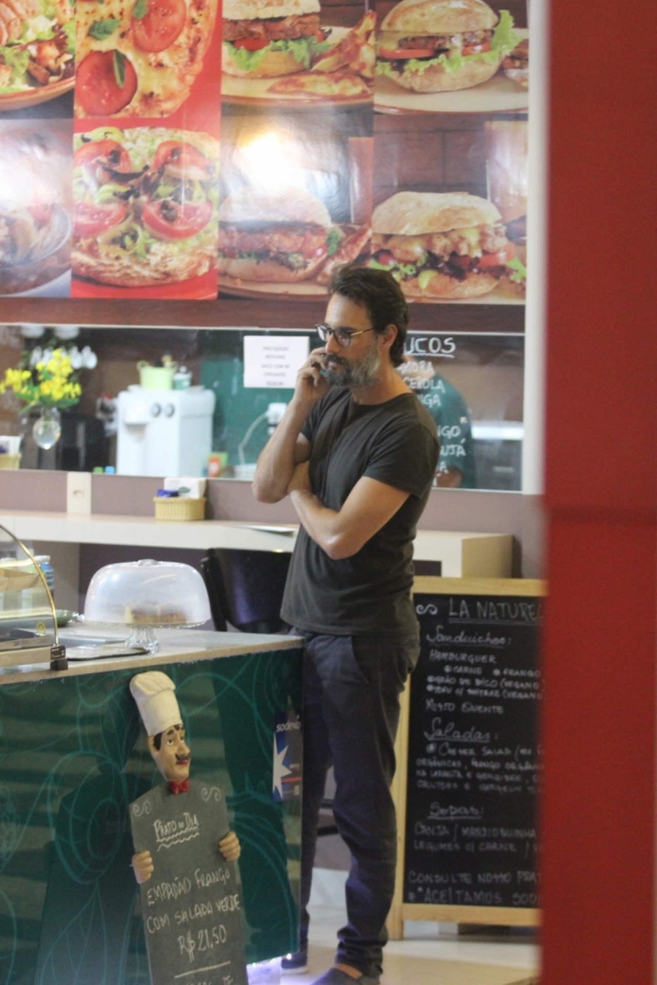 Pode? Rodrigo Santoro atende celular no banco. O Ator foi visto na Zona Sul do Rio de Janeiro na tarde desta terça-feira. O gato também visitou uma loja de produtos orgânicos. Veja fotos!