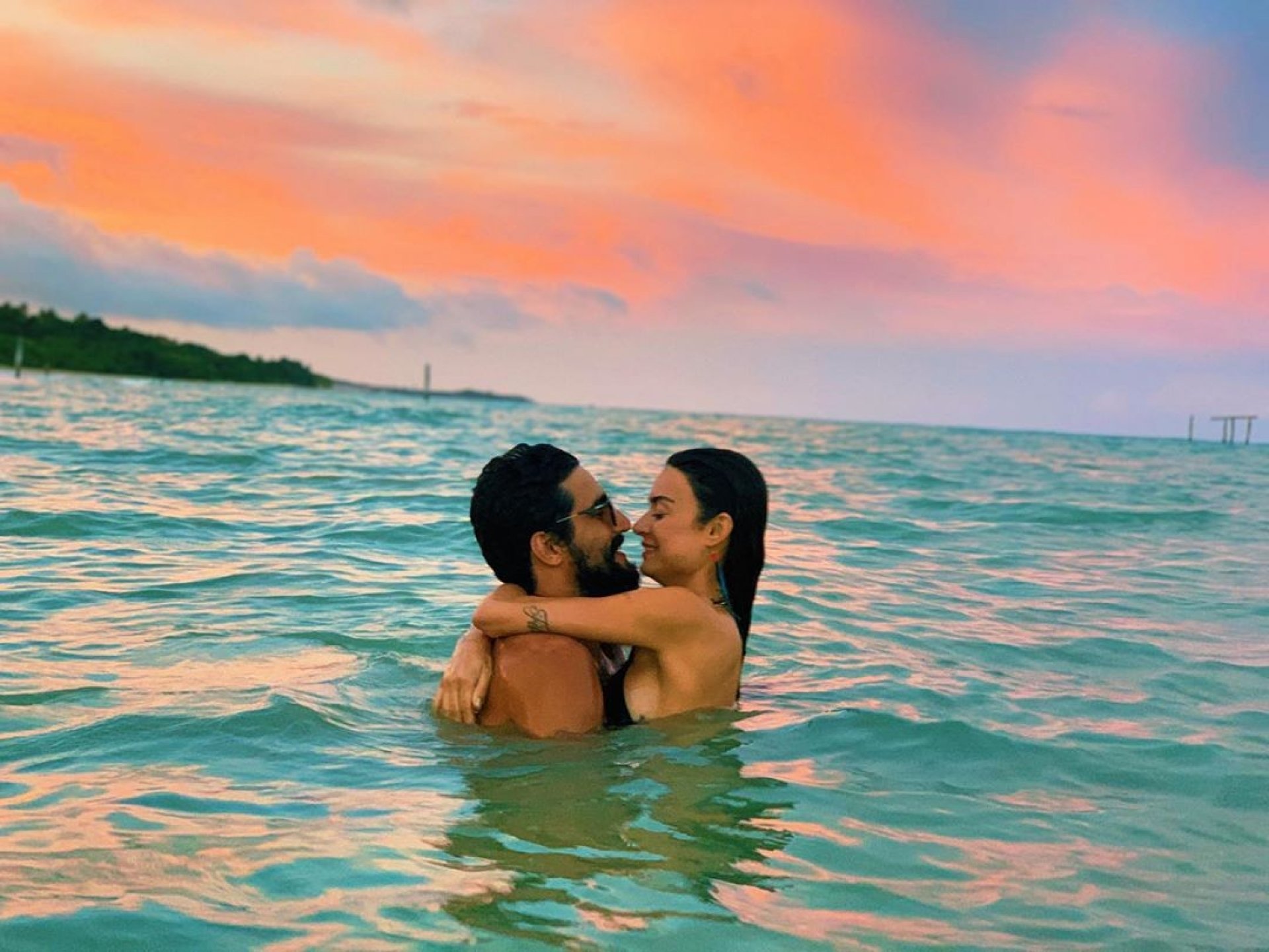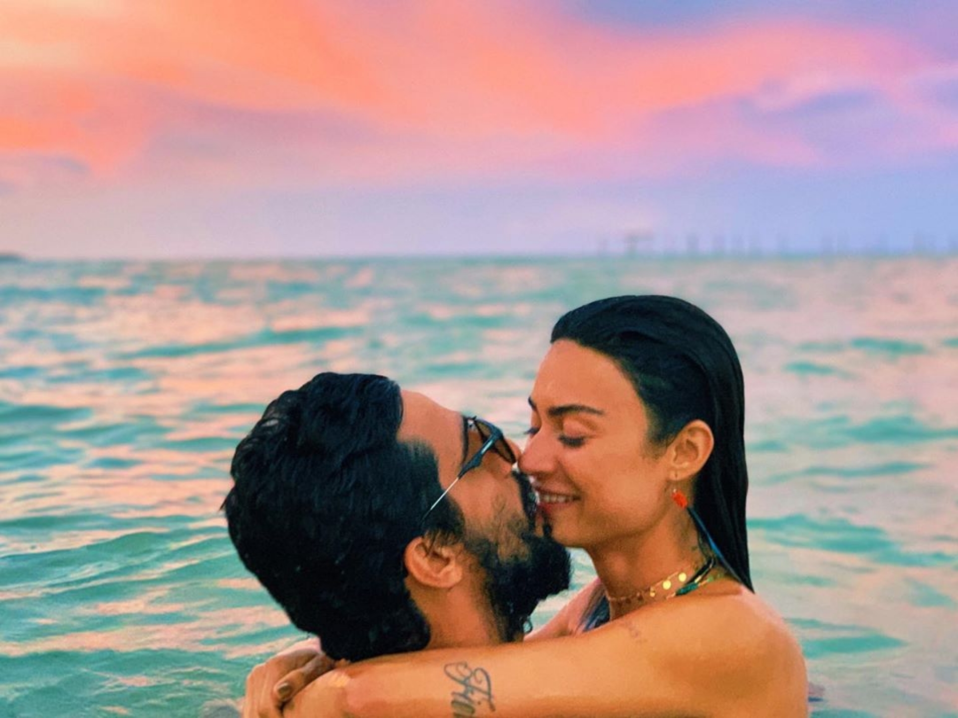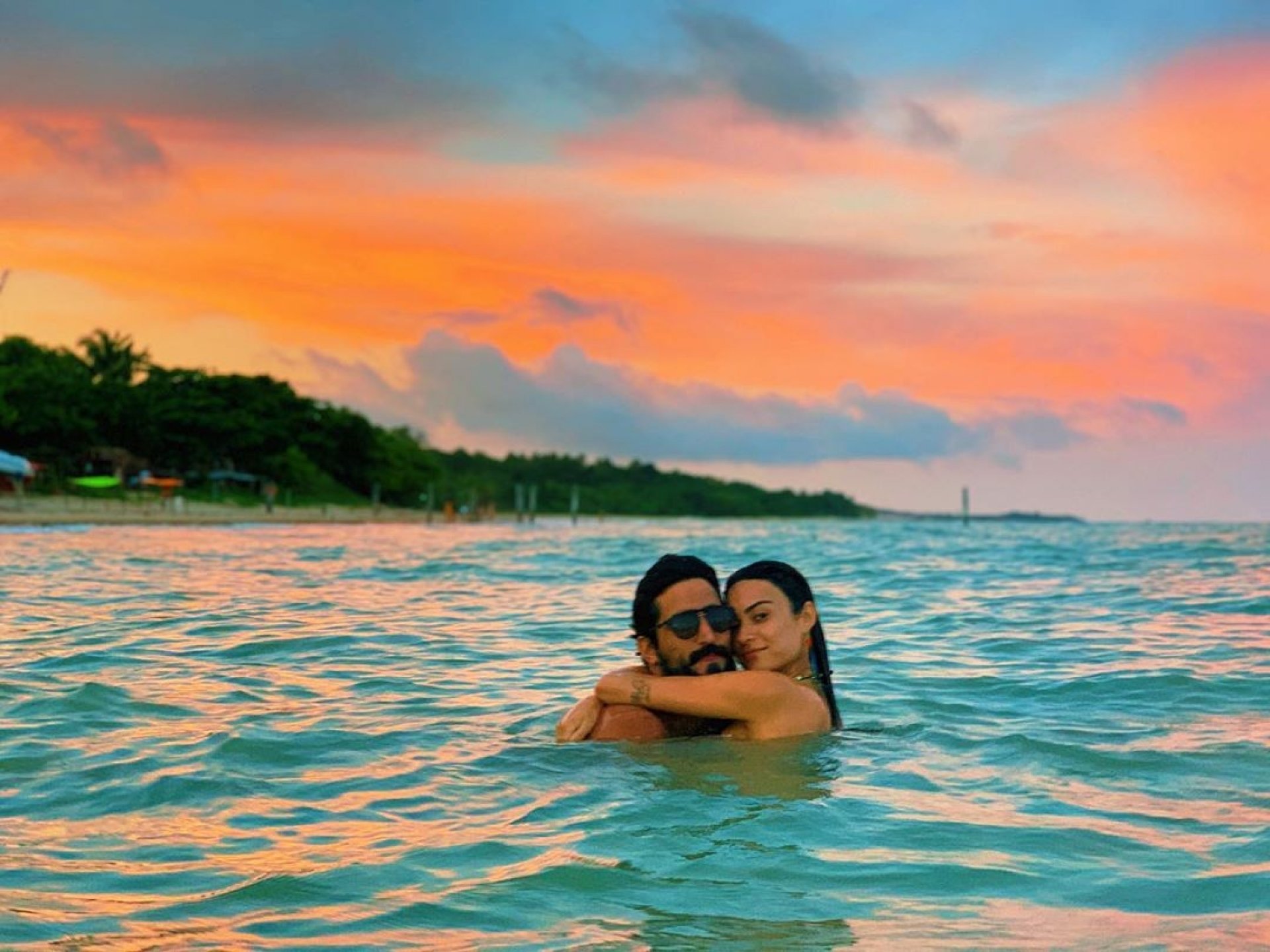 O registro foi feito pelo amigo do casal Ícaro Silva enquanto eles desfrutavam o pôr do sol em Caraíva, na Bahia.