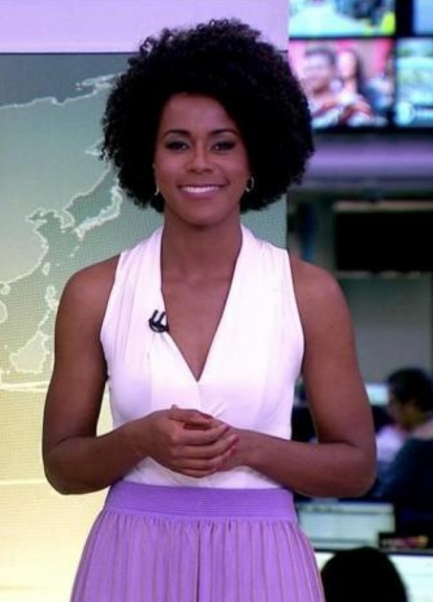 No último sábado, Maria Júlia Coutinho dividiu a bancada do Jornal Nacional com Flávio Fachel.- Musa fitness vai embora do Brasil depois do Carnaval