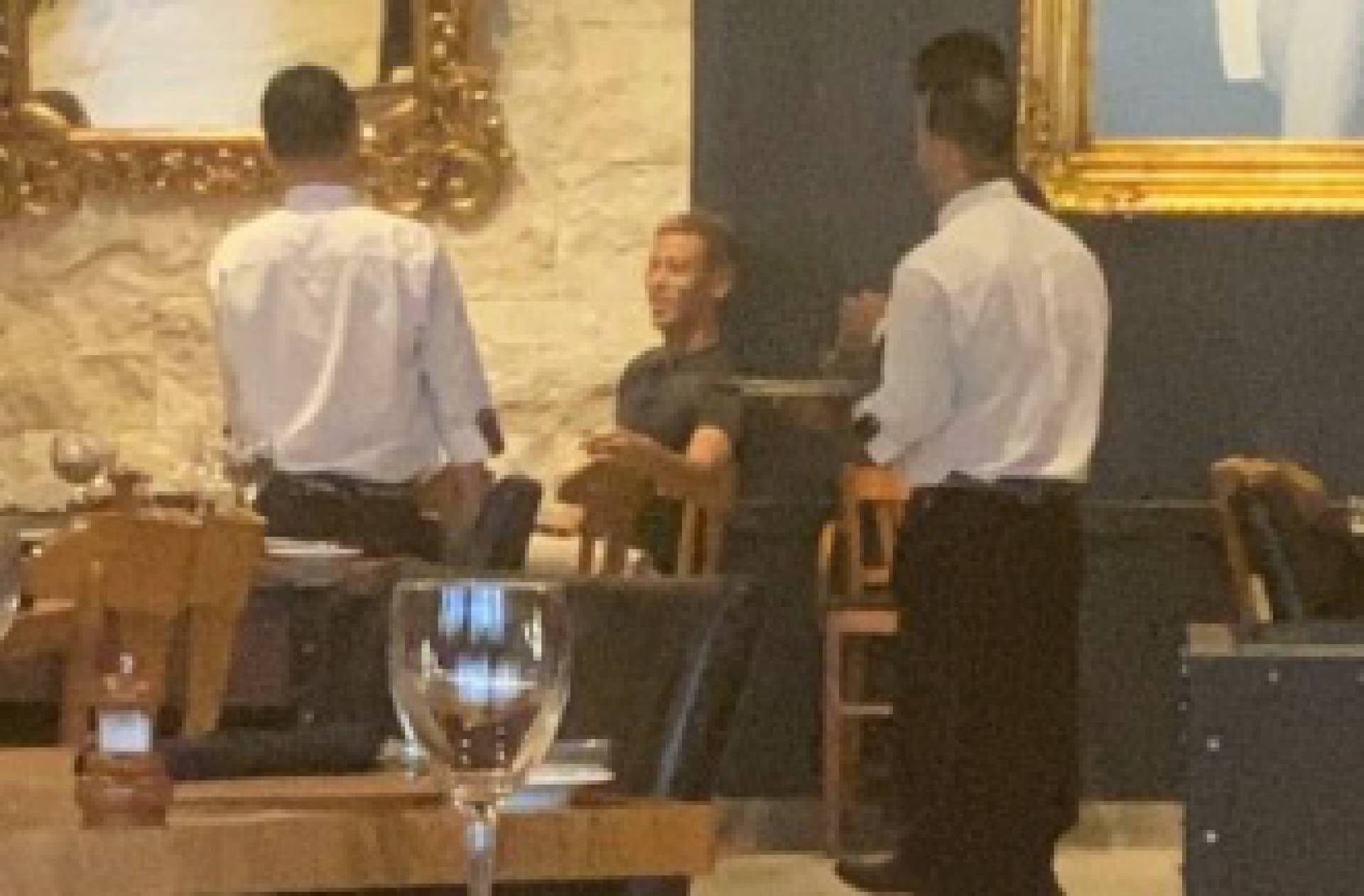 Ele foi flagrado sozinho na churrascaria Barra Grill, na Zona Oeste, do Rio de Janeiro.