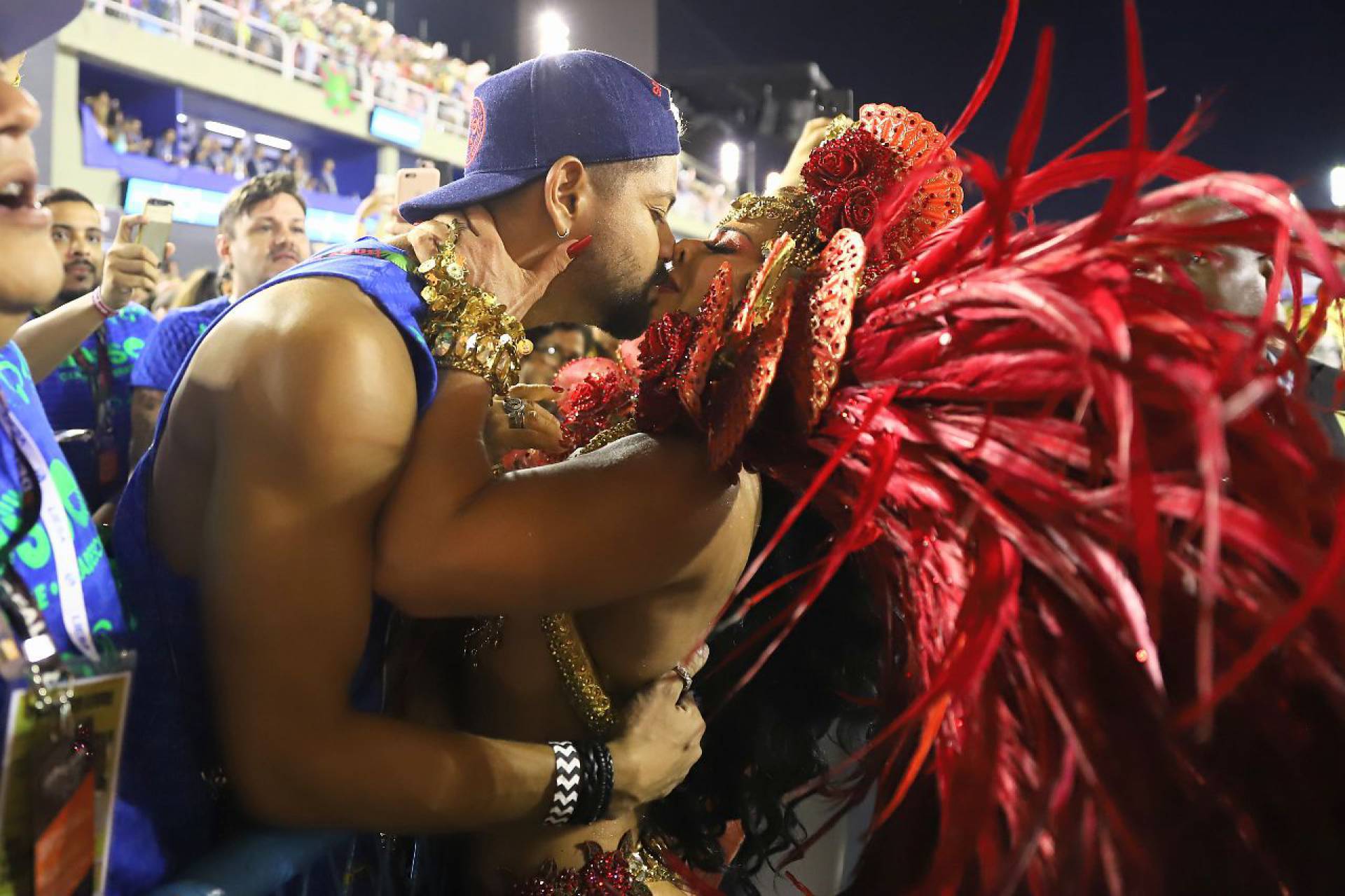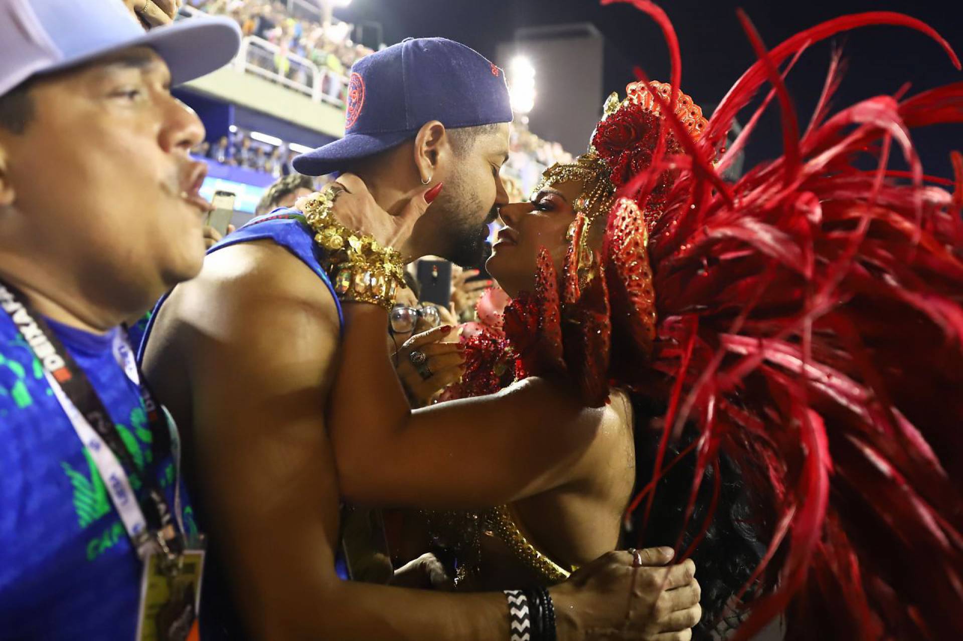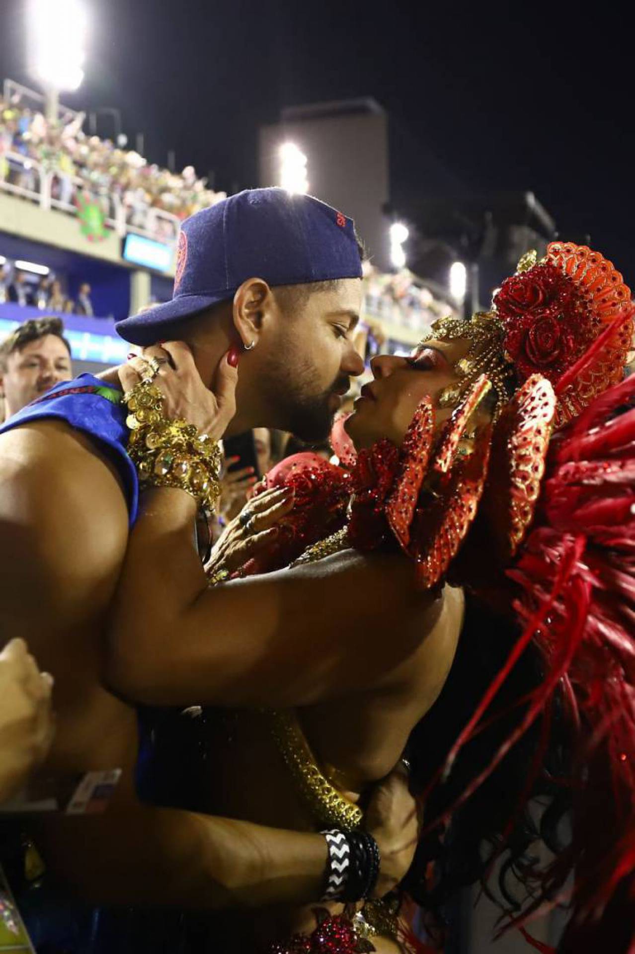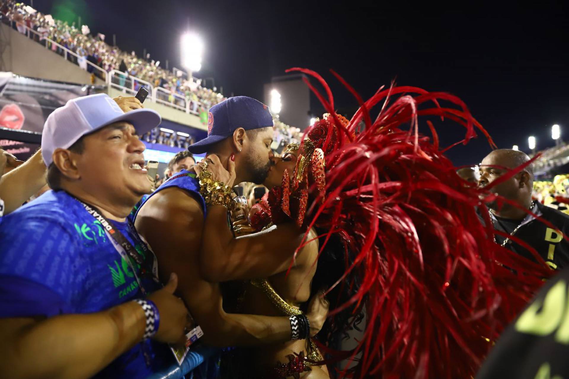 Viviane Araújo para o desfile do Salgueiro e beija namorado