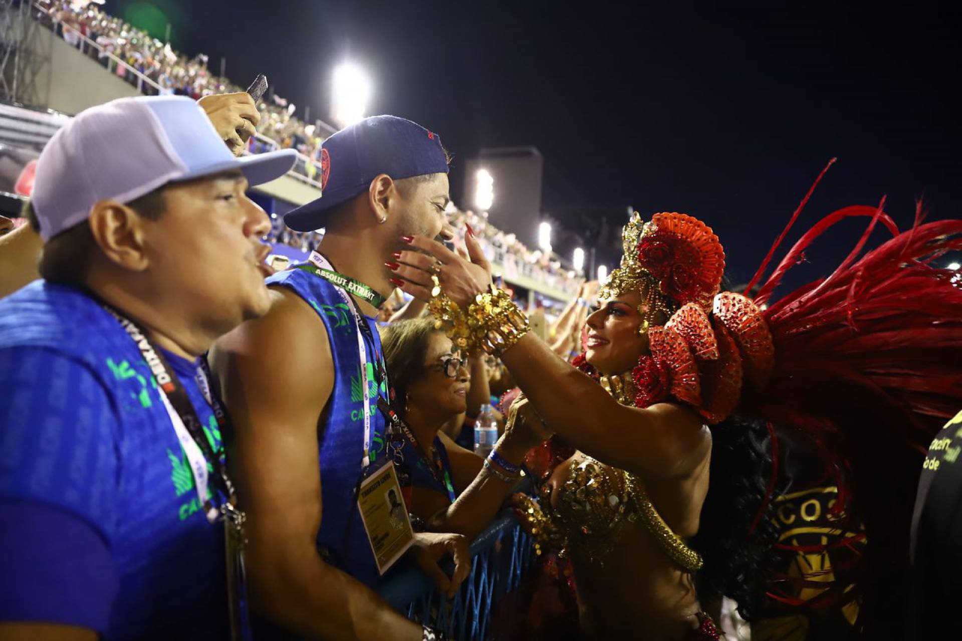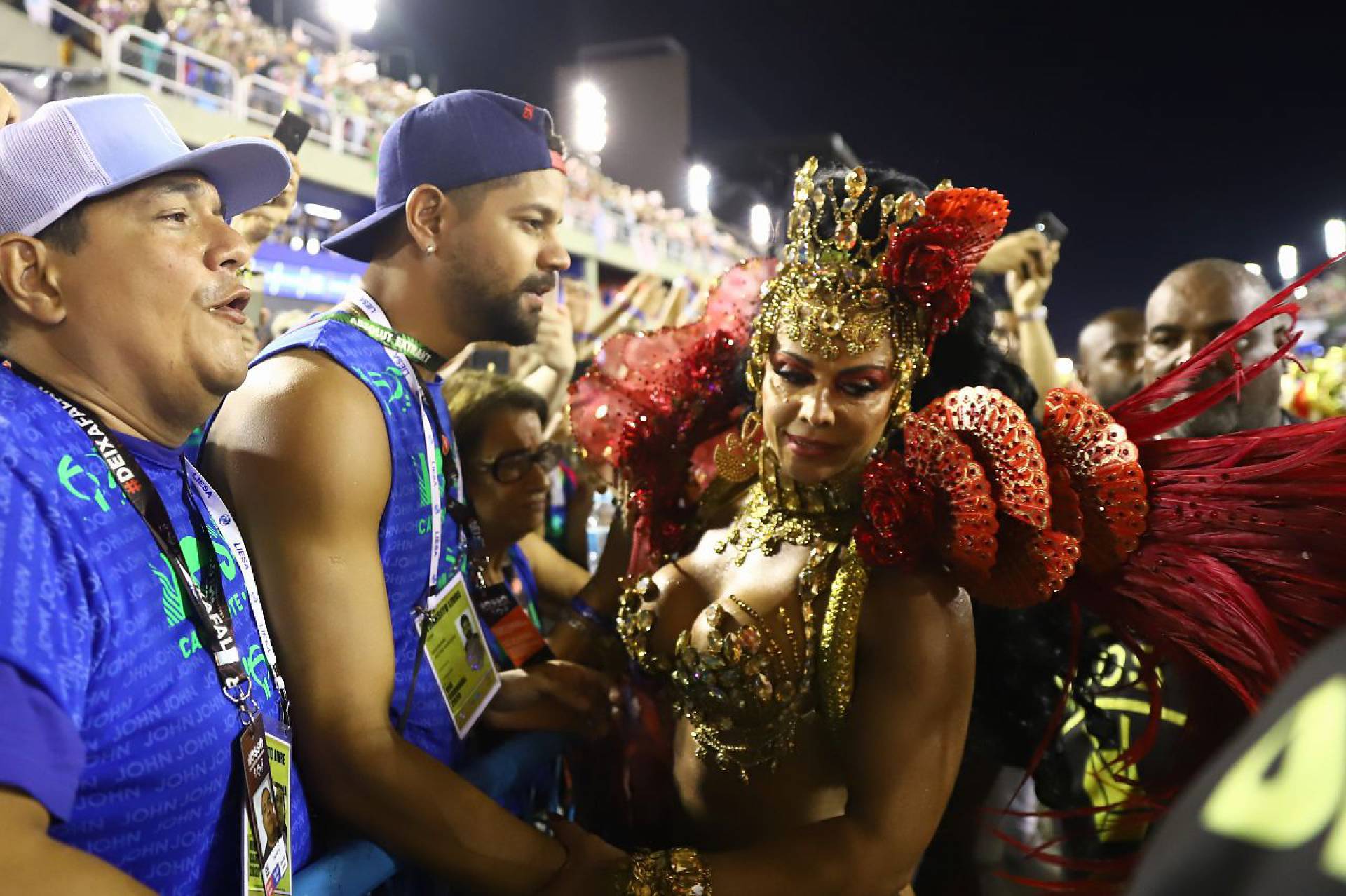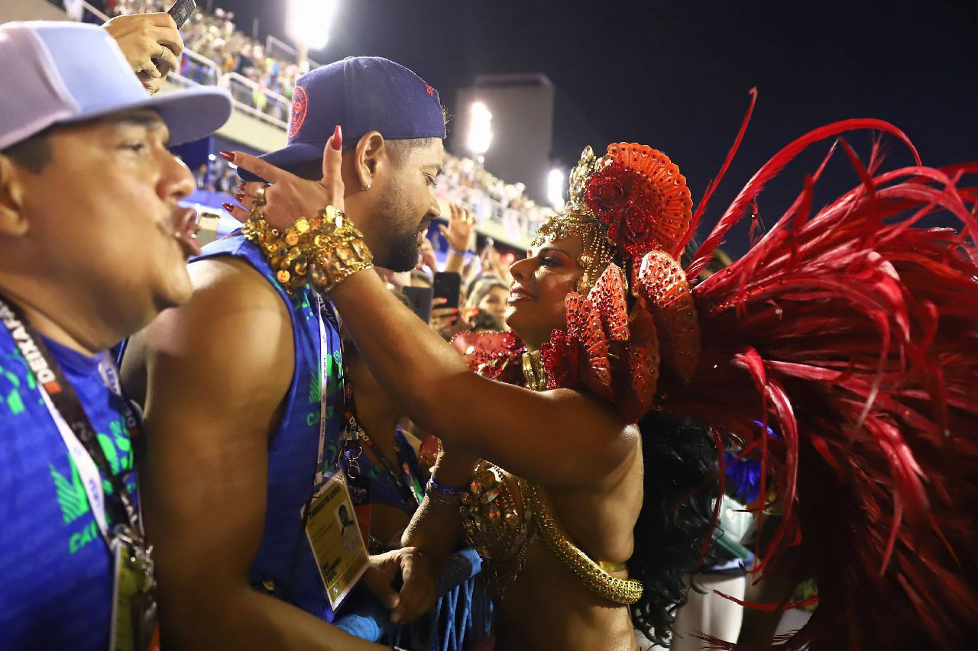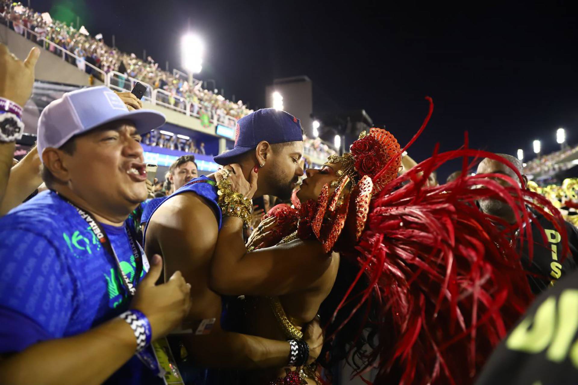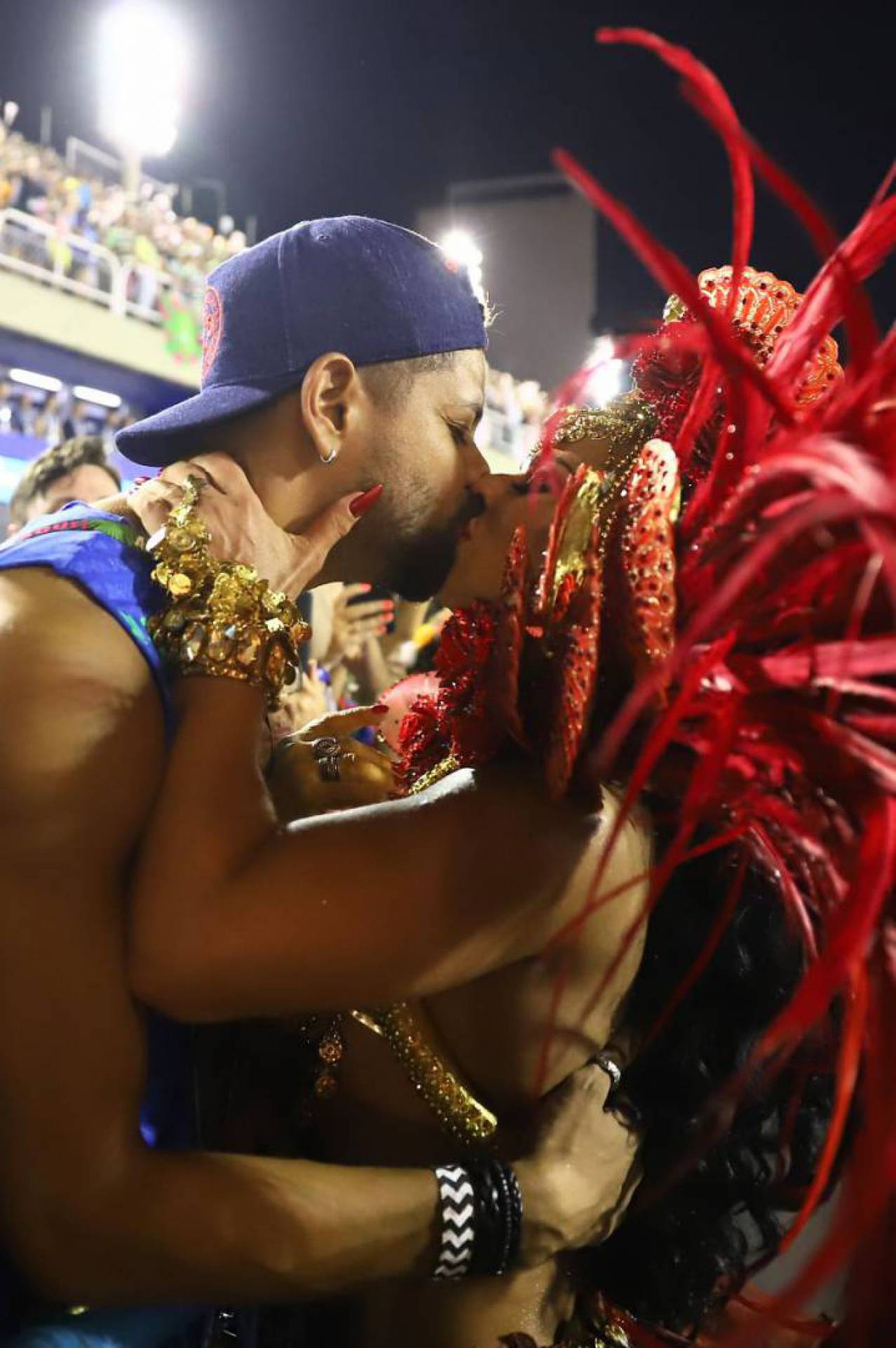 Viviane Araújo para o desfile do Salgueiro e beija namorado