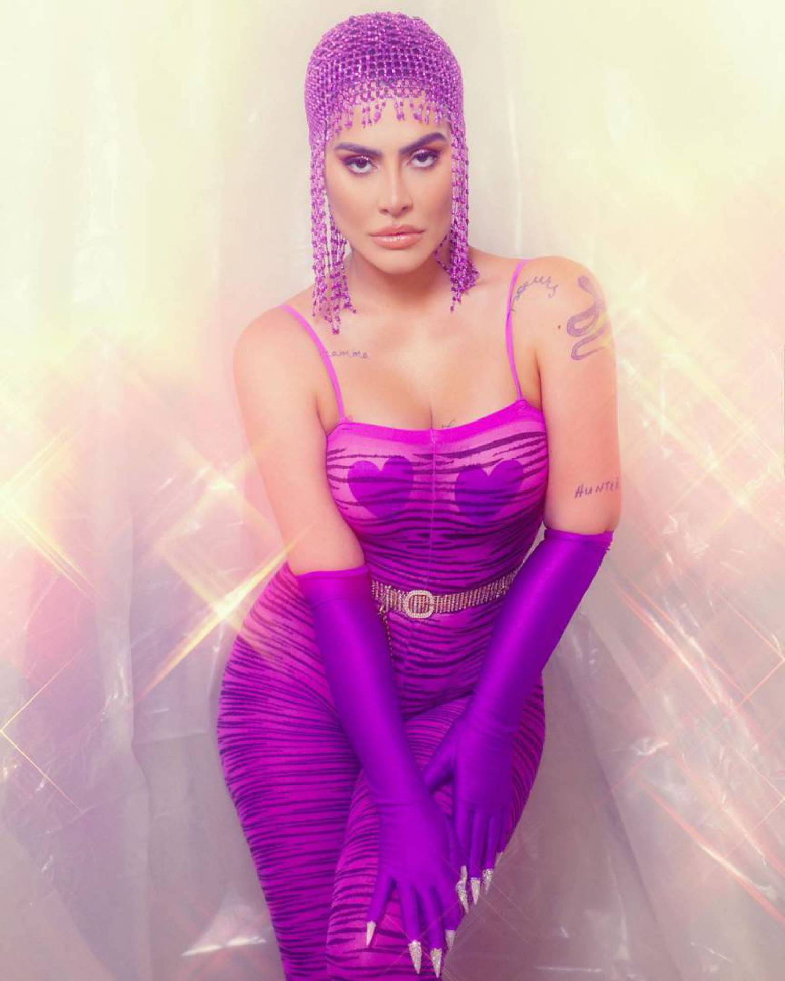 Cleo adora provocar seus fãs no Instagram. A morena aproveitou o carnaval para abusar da sensualidade e publicar uma série de fotos onde aparece com um macacão totalmente transparente e deixa os seguidores babando. Vestida de roxo dos pés à cabeça, a atriz e cantora, arrasou no carão e poses sensuais.