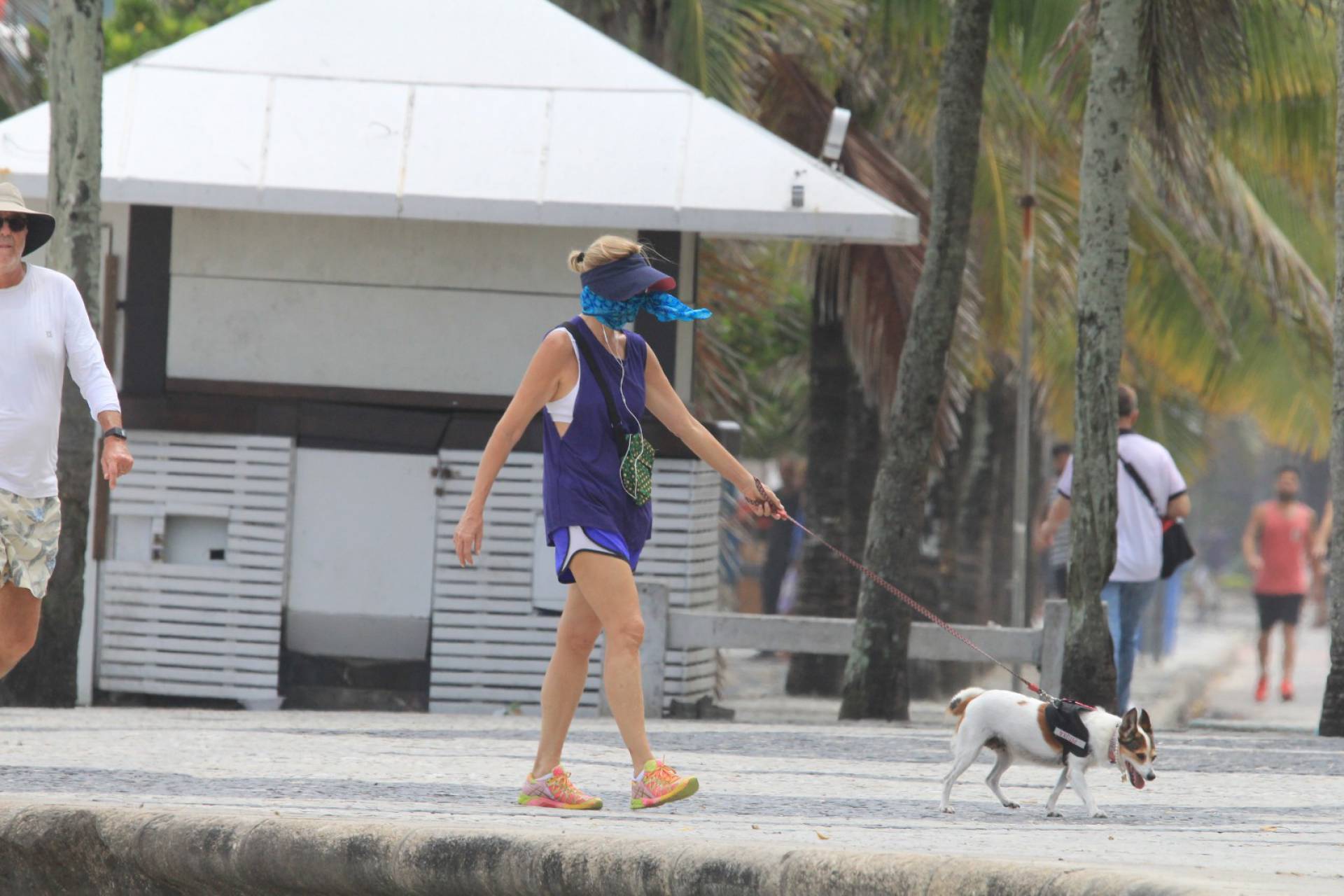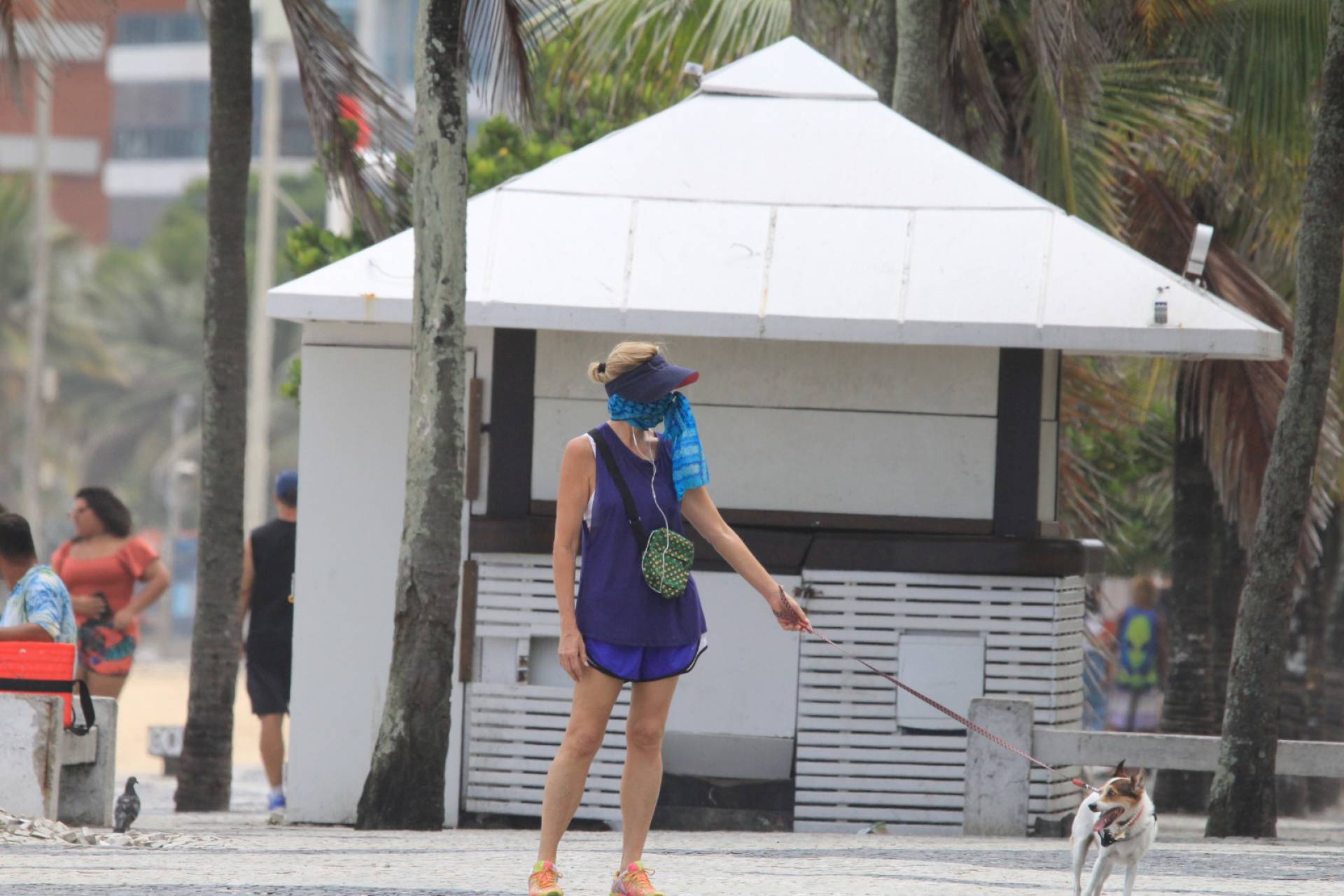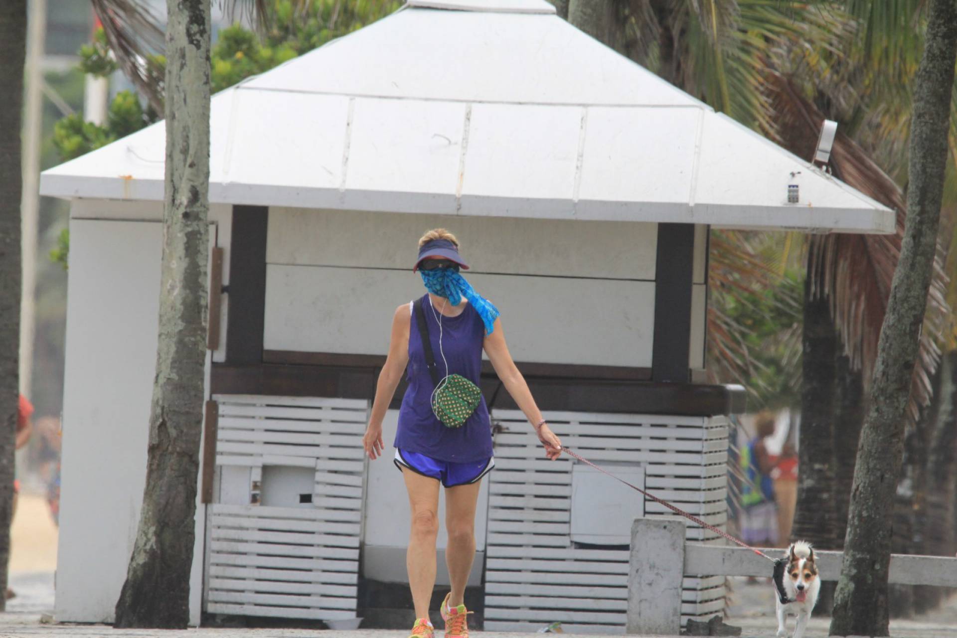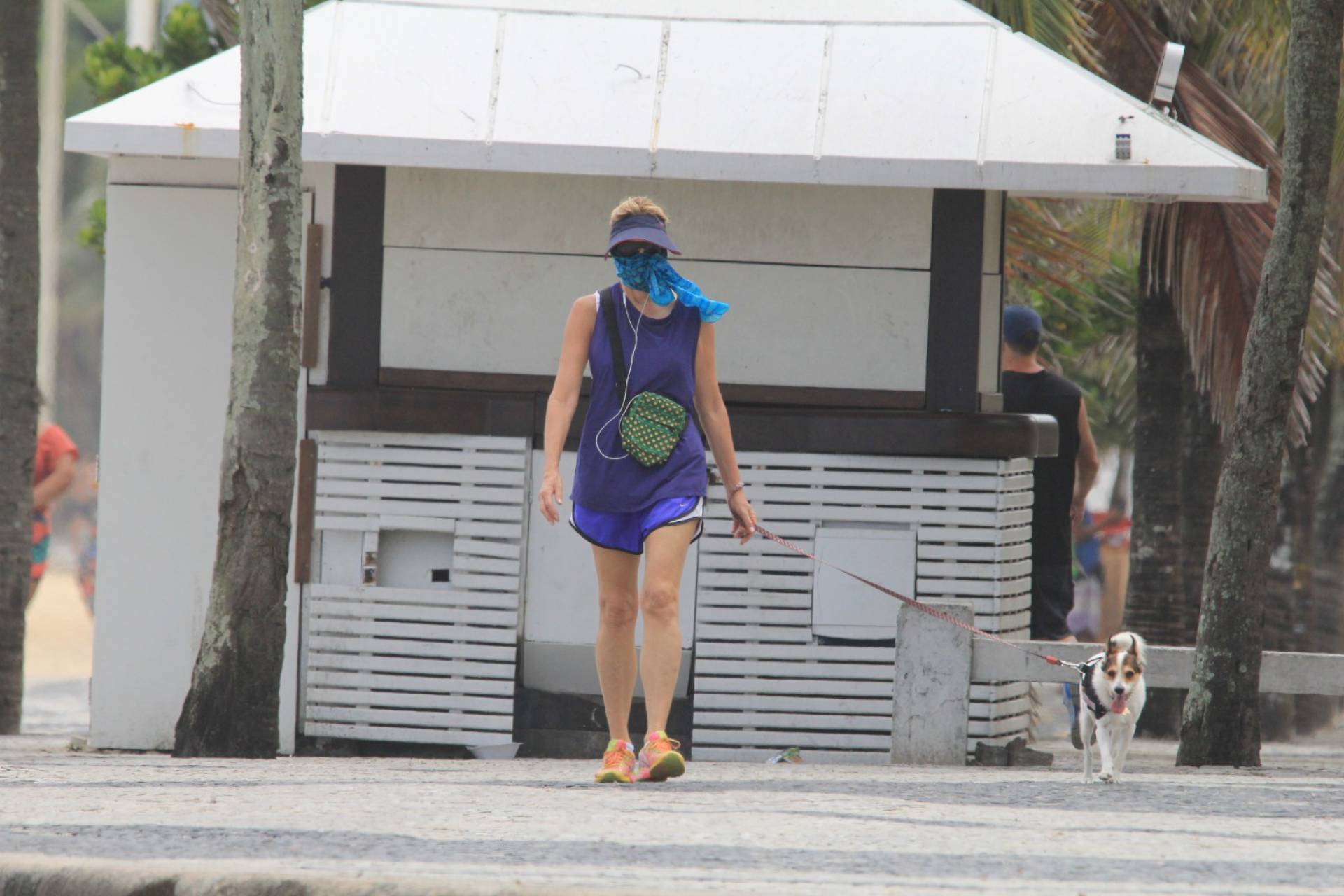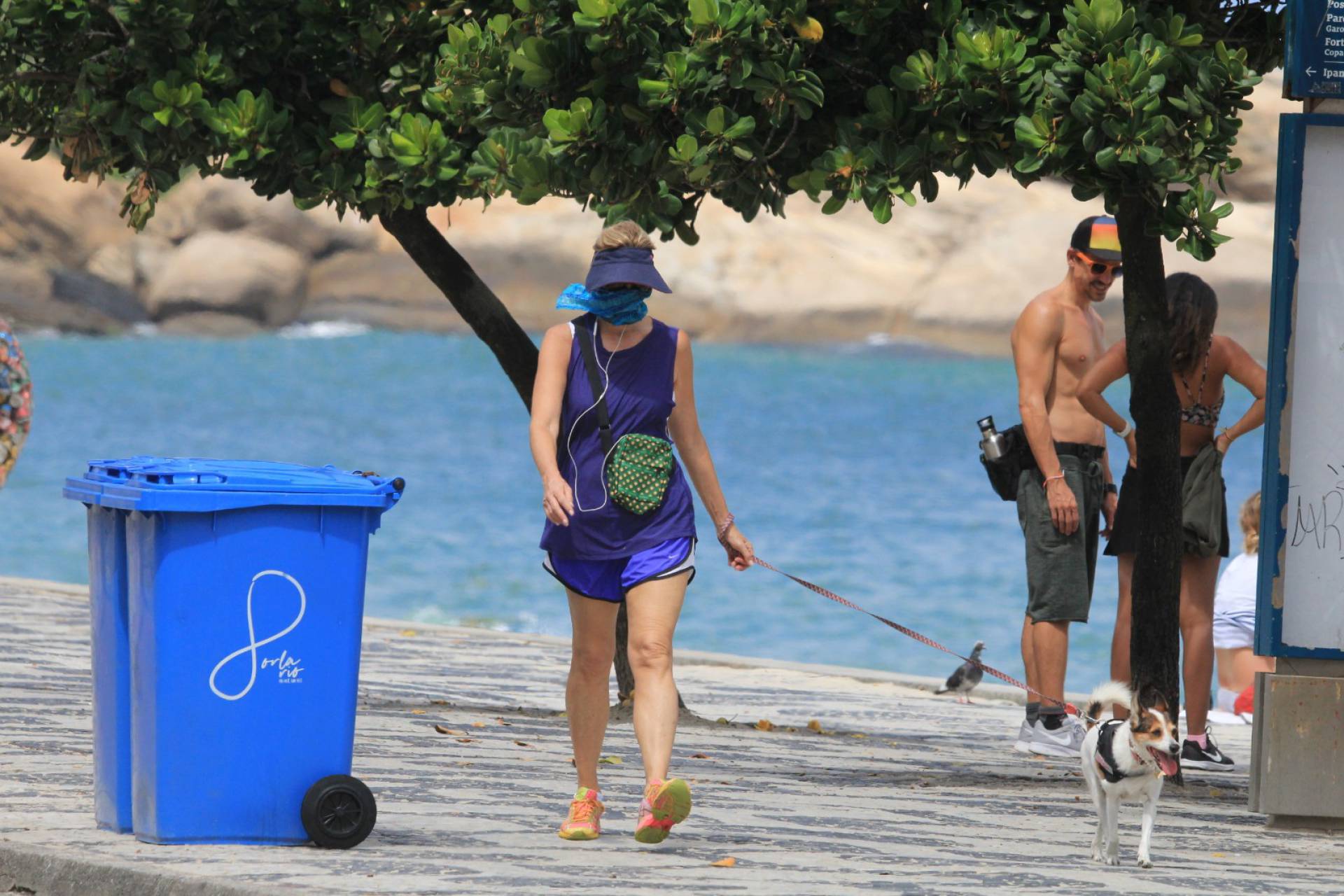 Atriz foi flagrada por paparazzo enquanto levava seu cachorrinho para passear pela orla de Ipanema, na Zona Sul da capital.