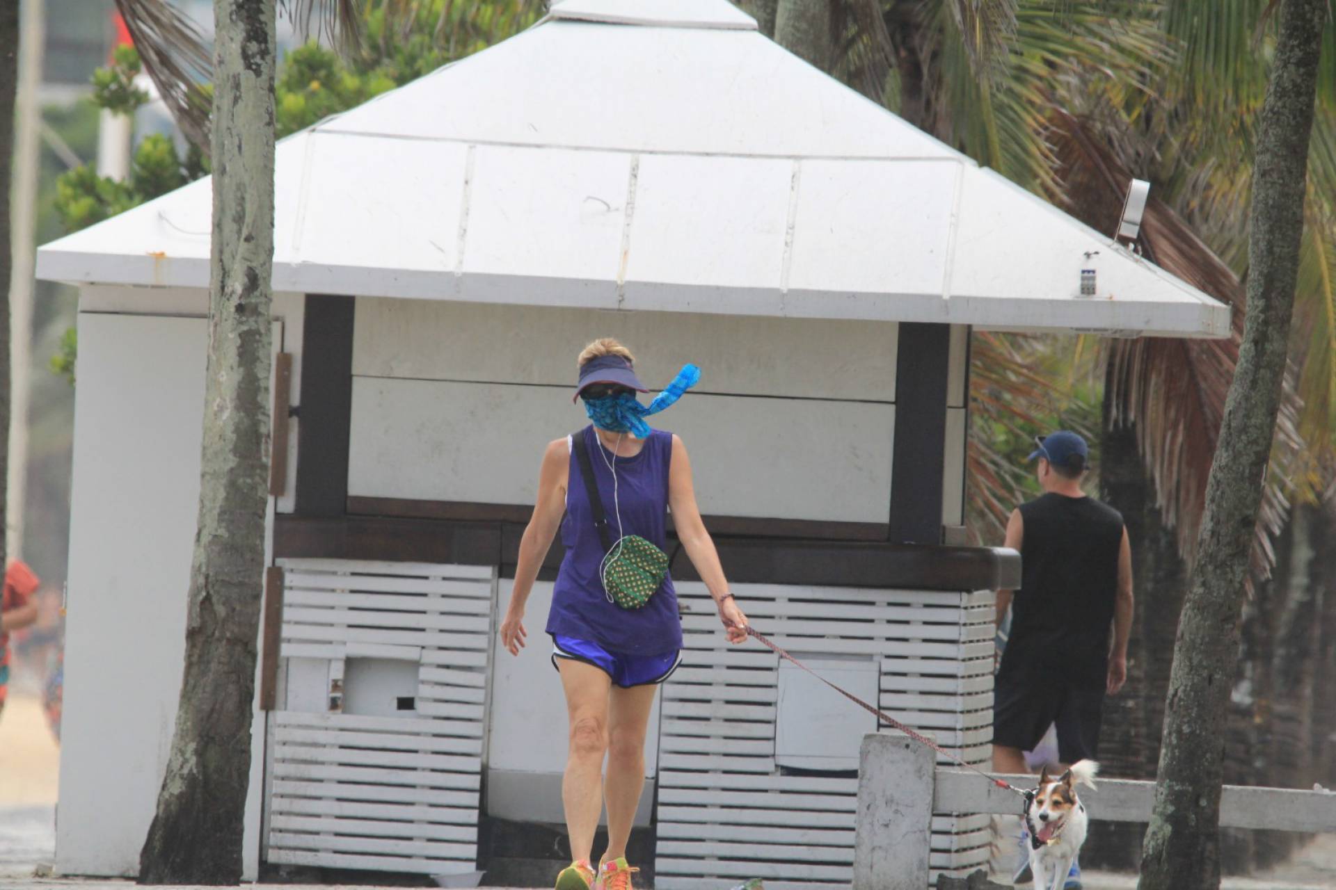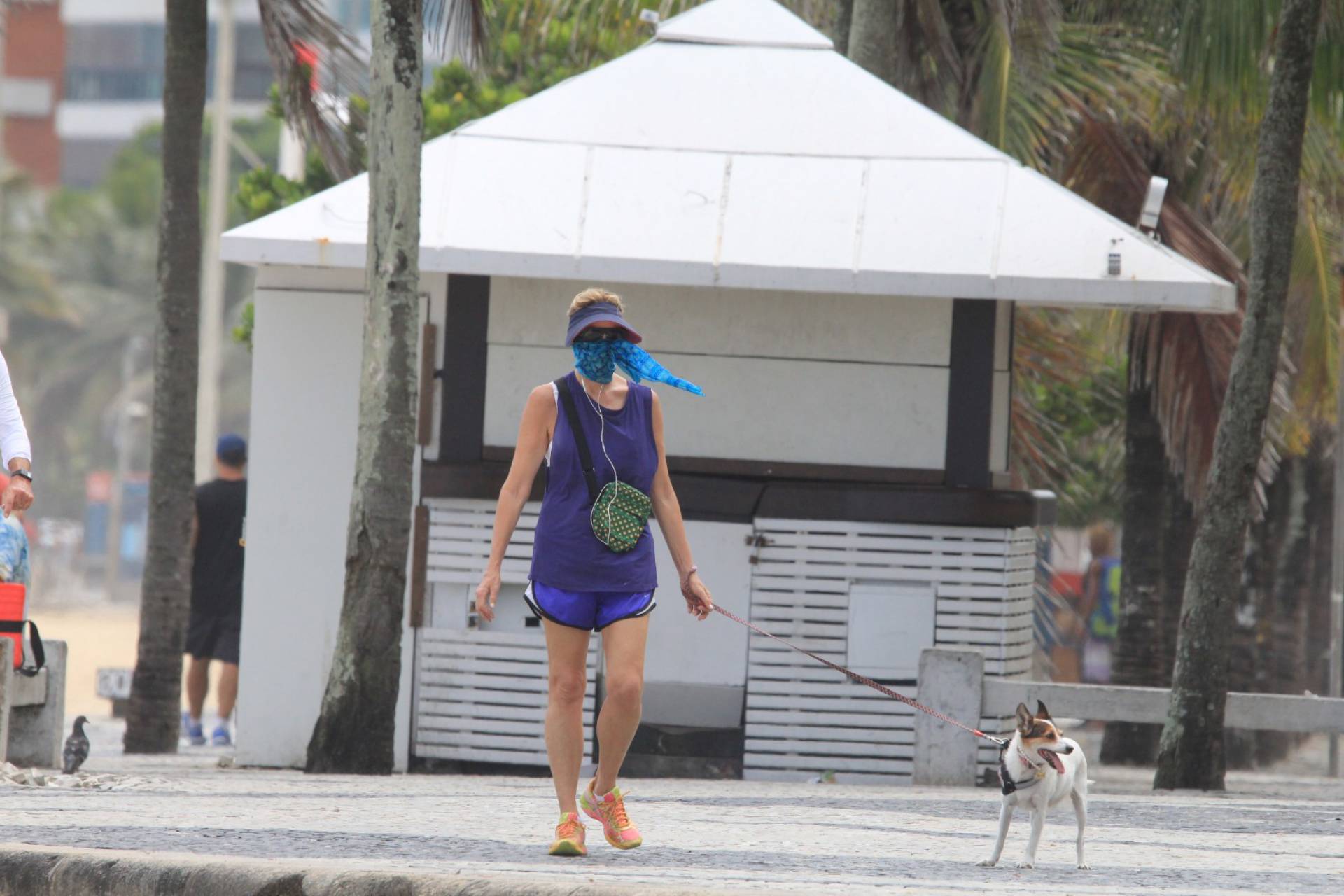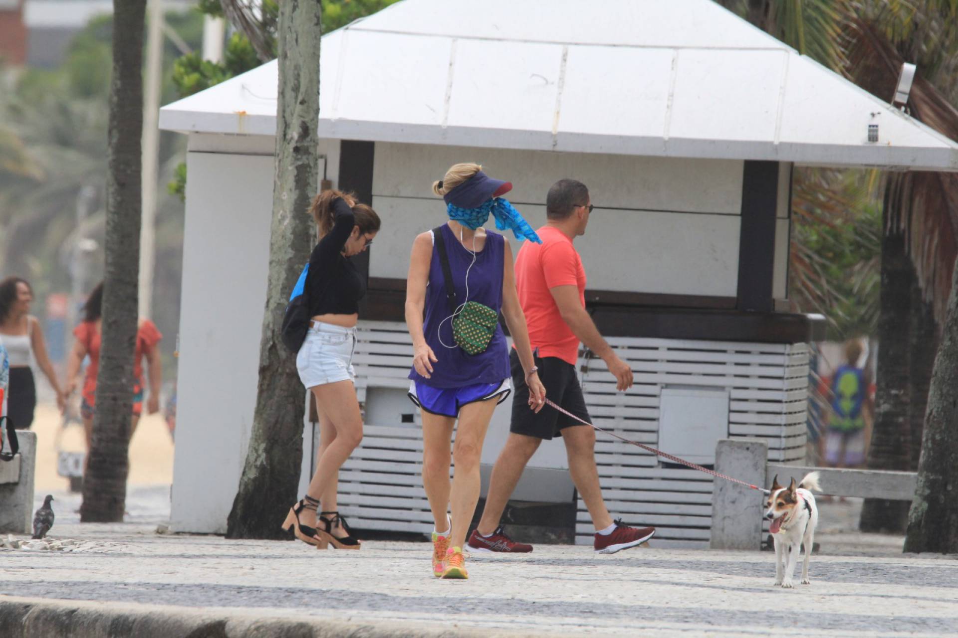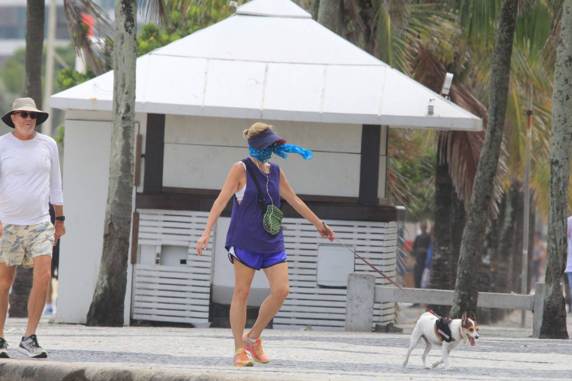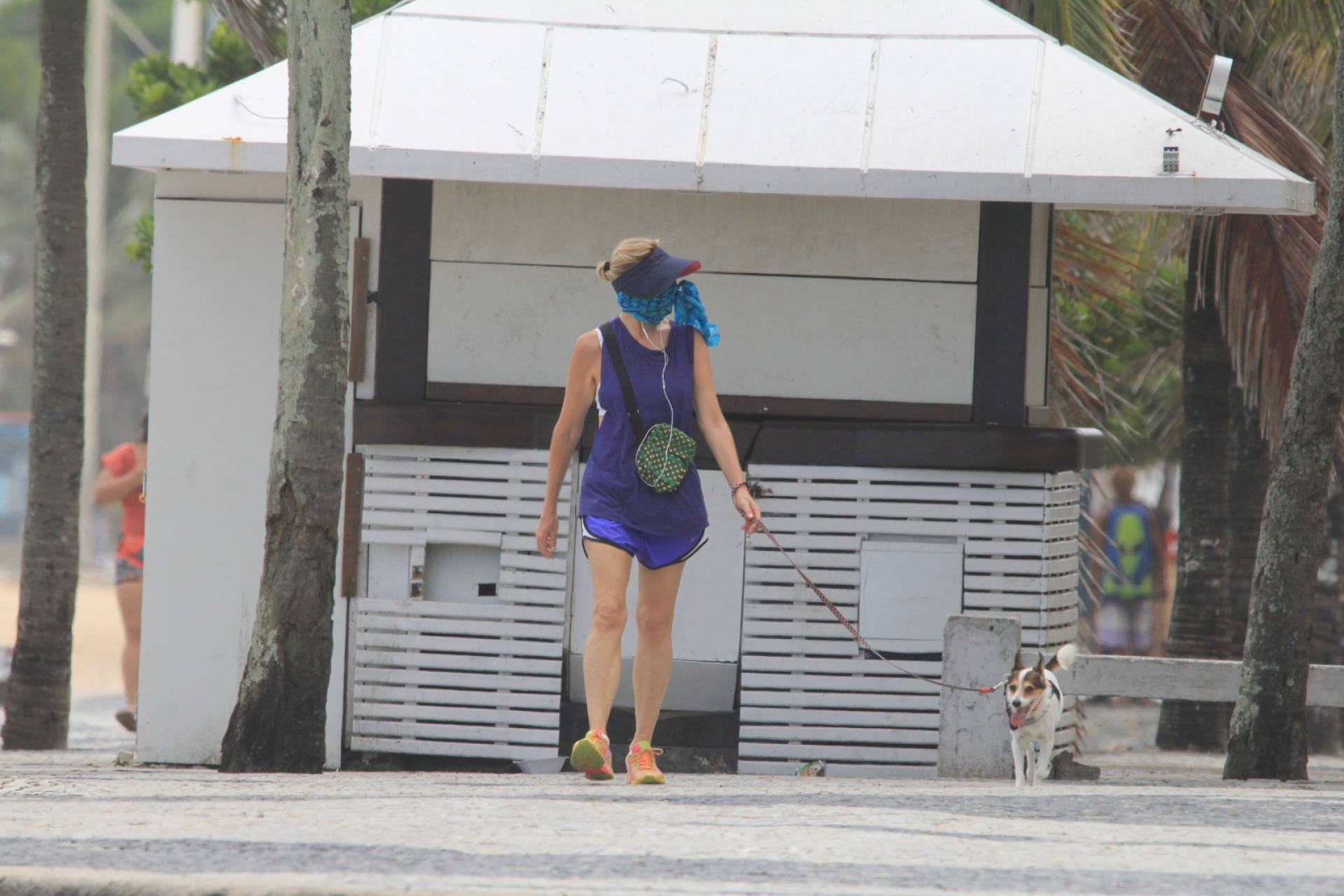 Atriz foi flagrada por paparazzo enquanto levava seu cachorrinho para passear pela orla de Ipanema, na Zona Sul da capital.