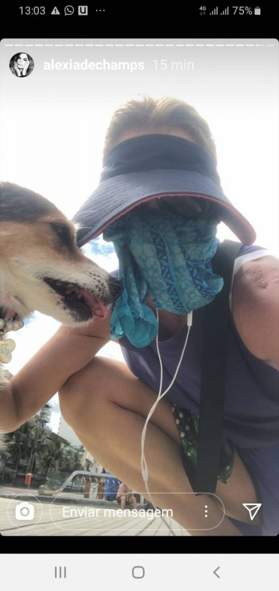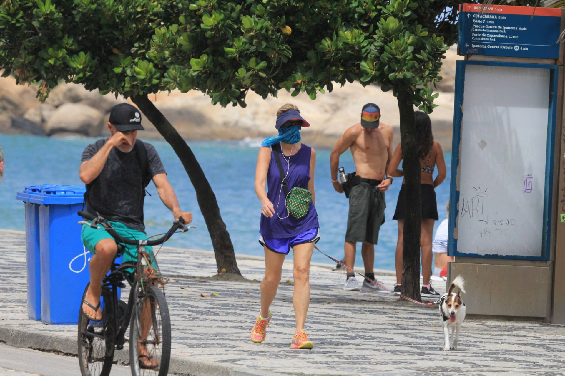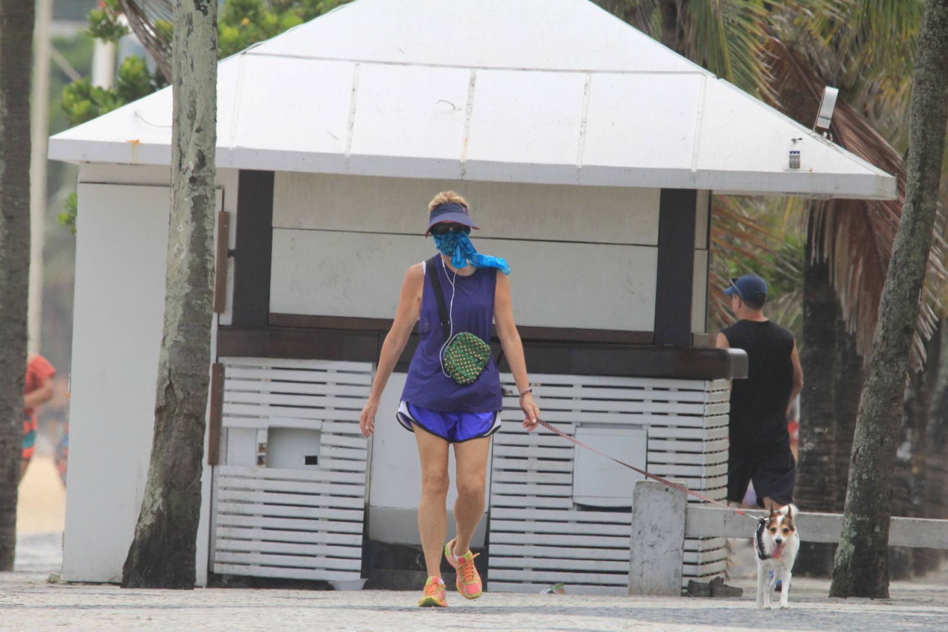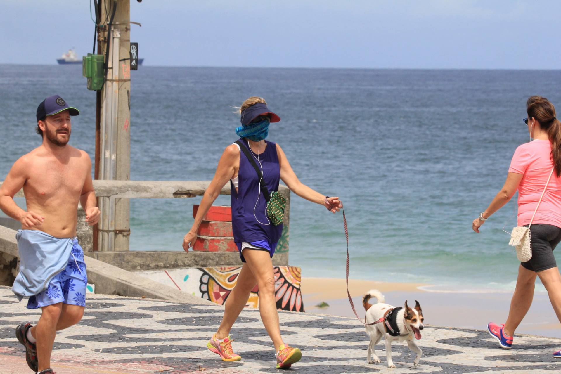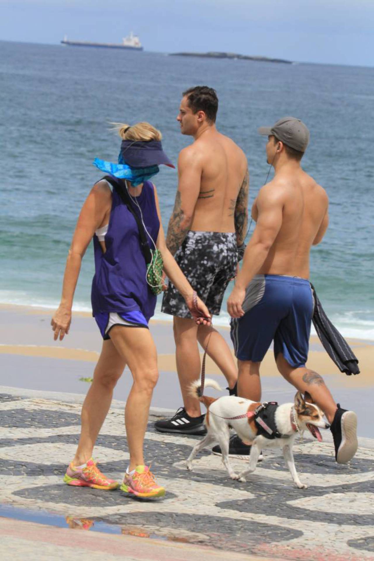 Atriz foi flagrada por paparazzo enquanto levava seu cachorrinho para passear pela orla de Ipanema, na Zona Sul da capital.