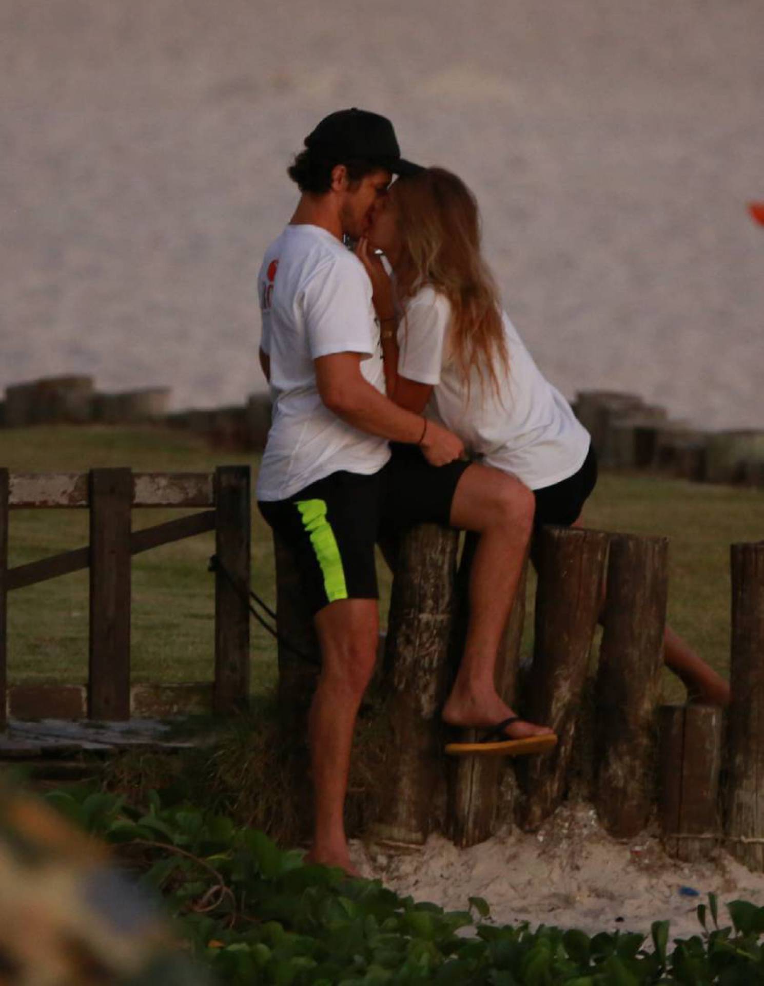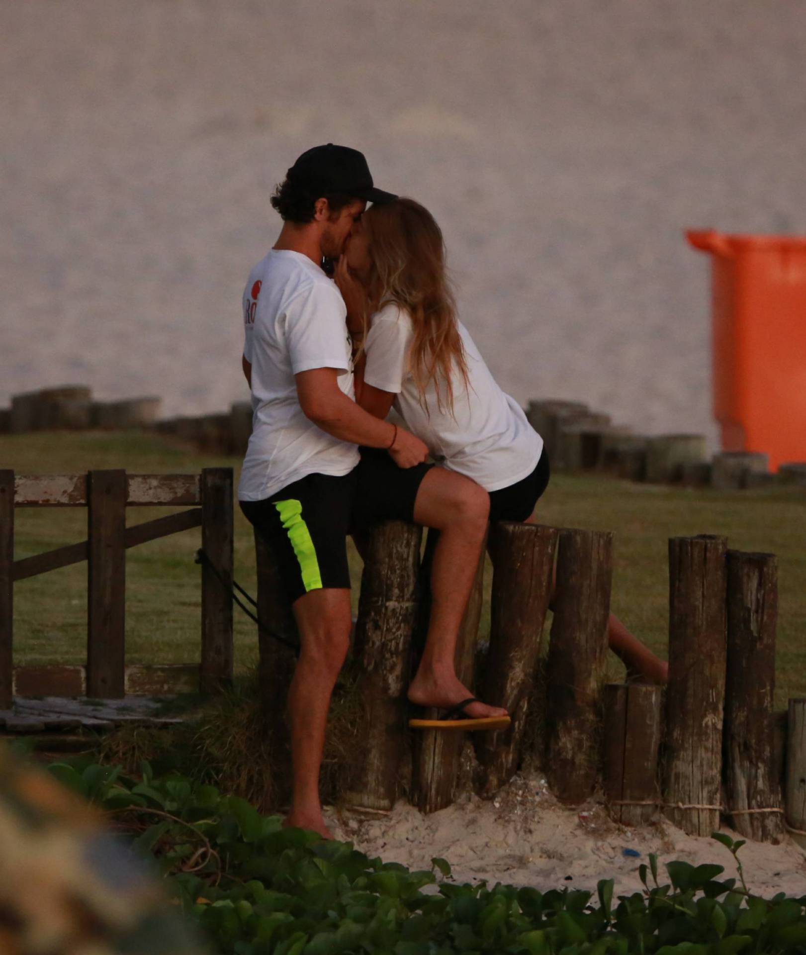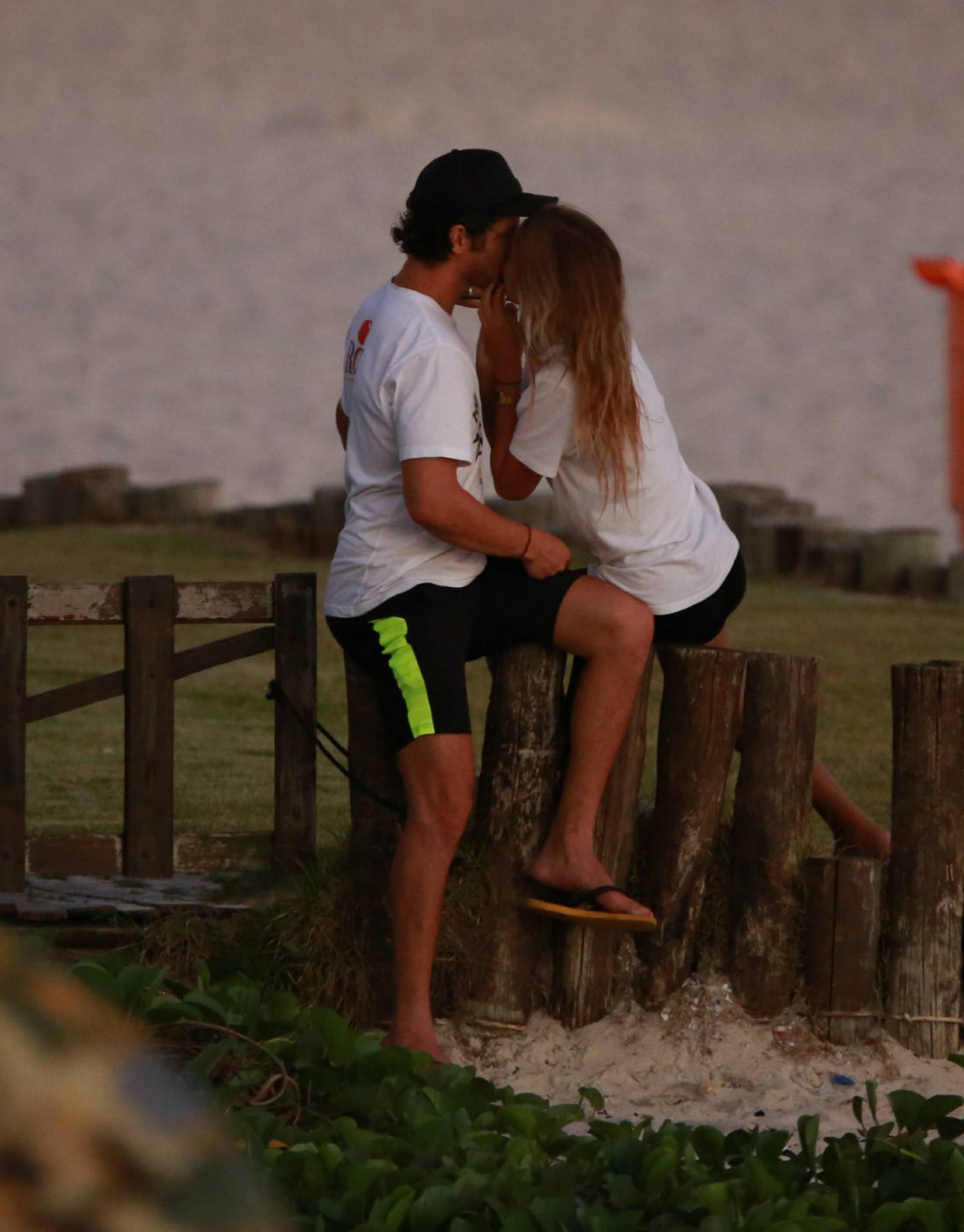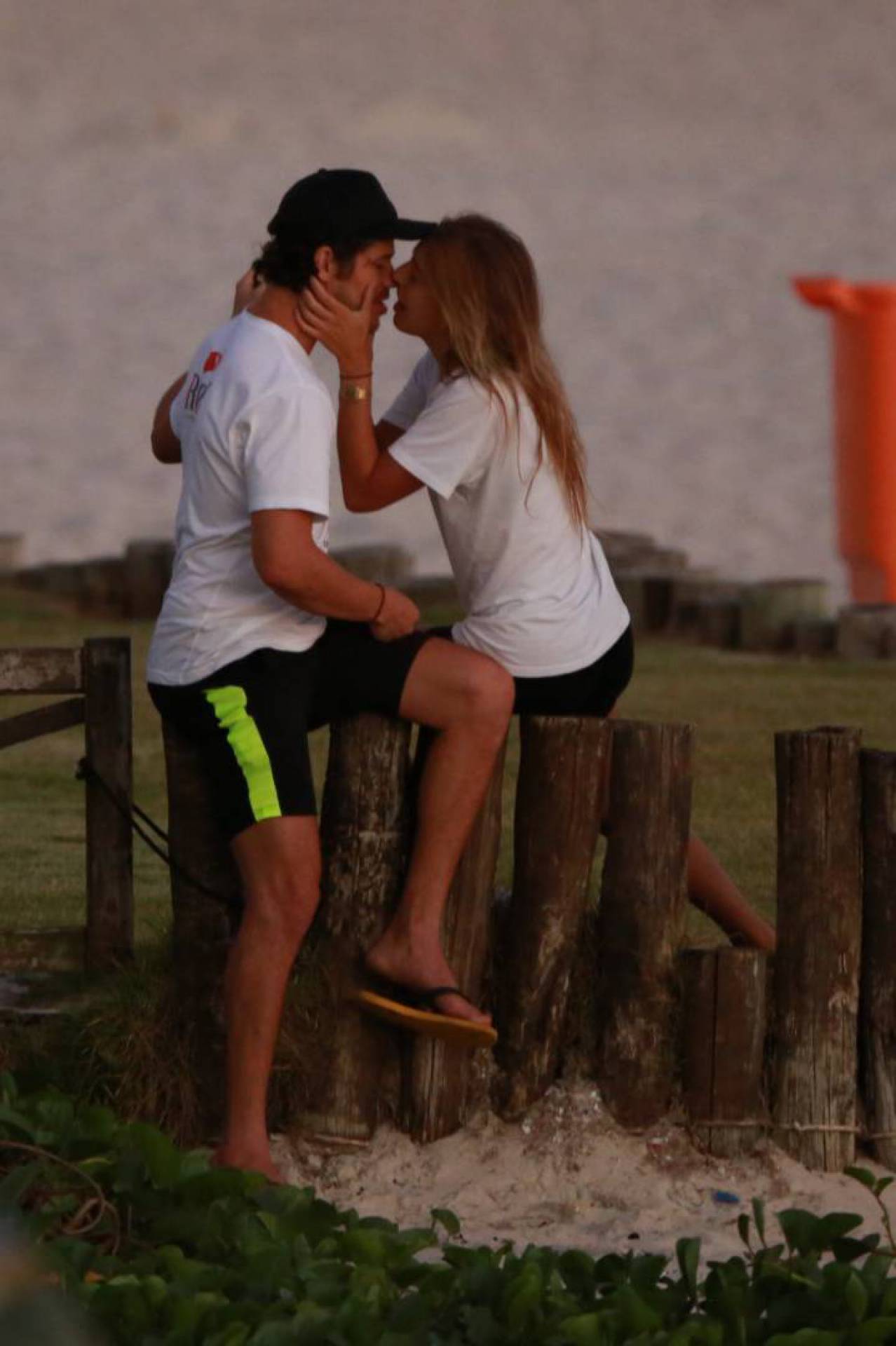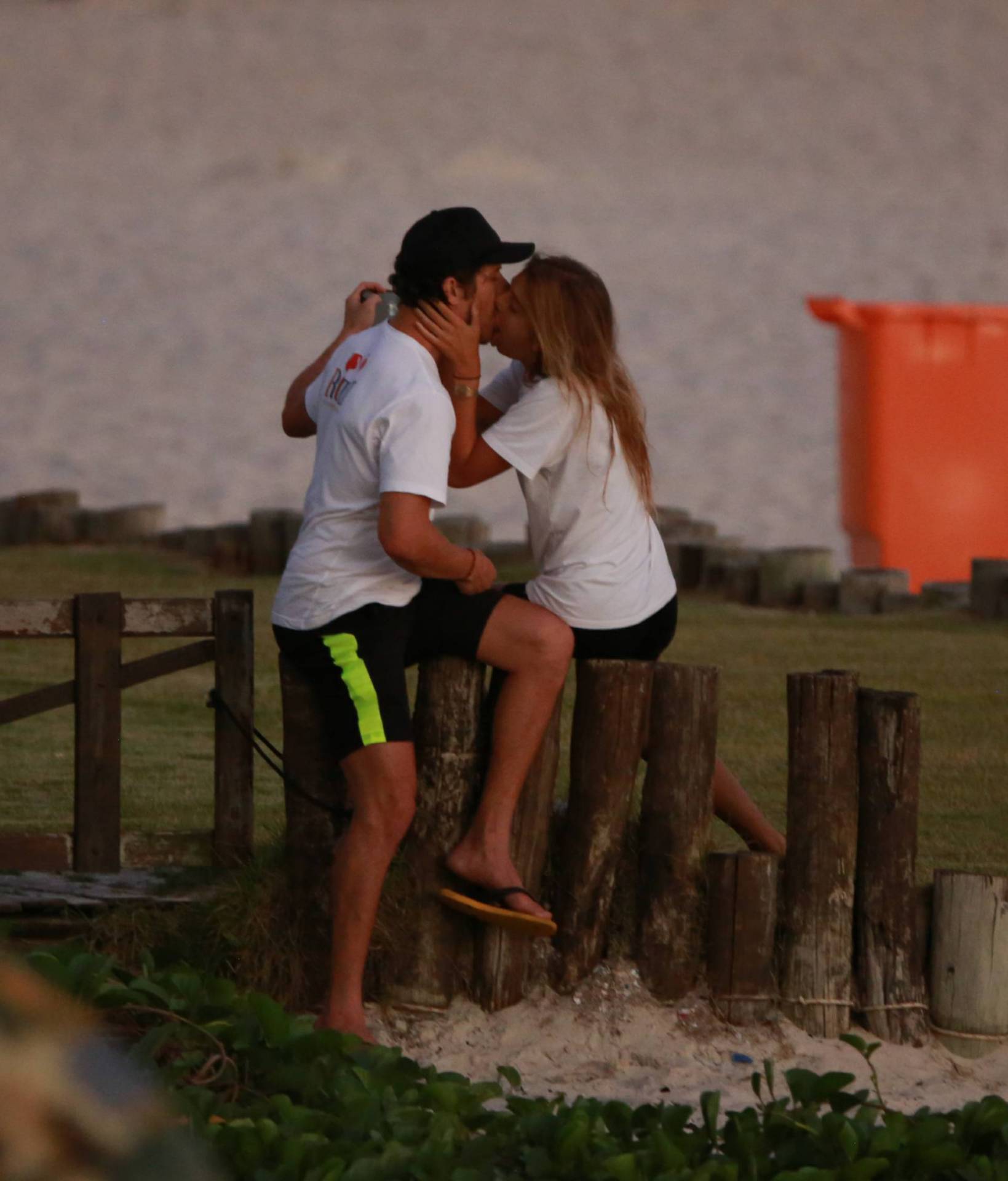 O ator foi flagrado aos beijos na praia praia da Barra da Tijuca, na Zona Oeste do Rio de Janeiro.
