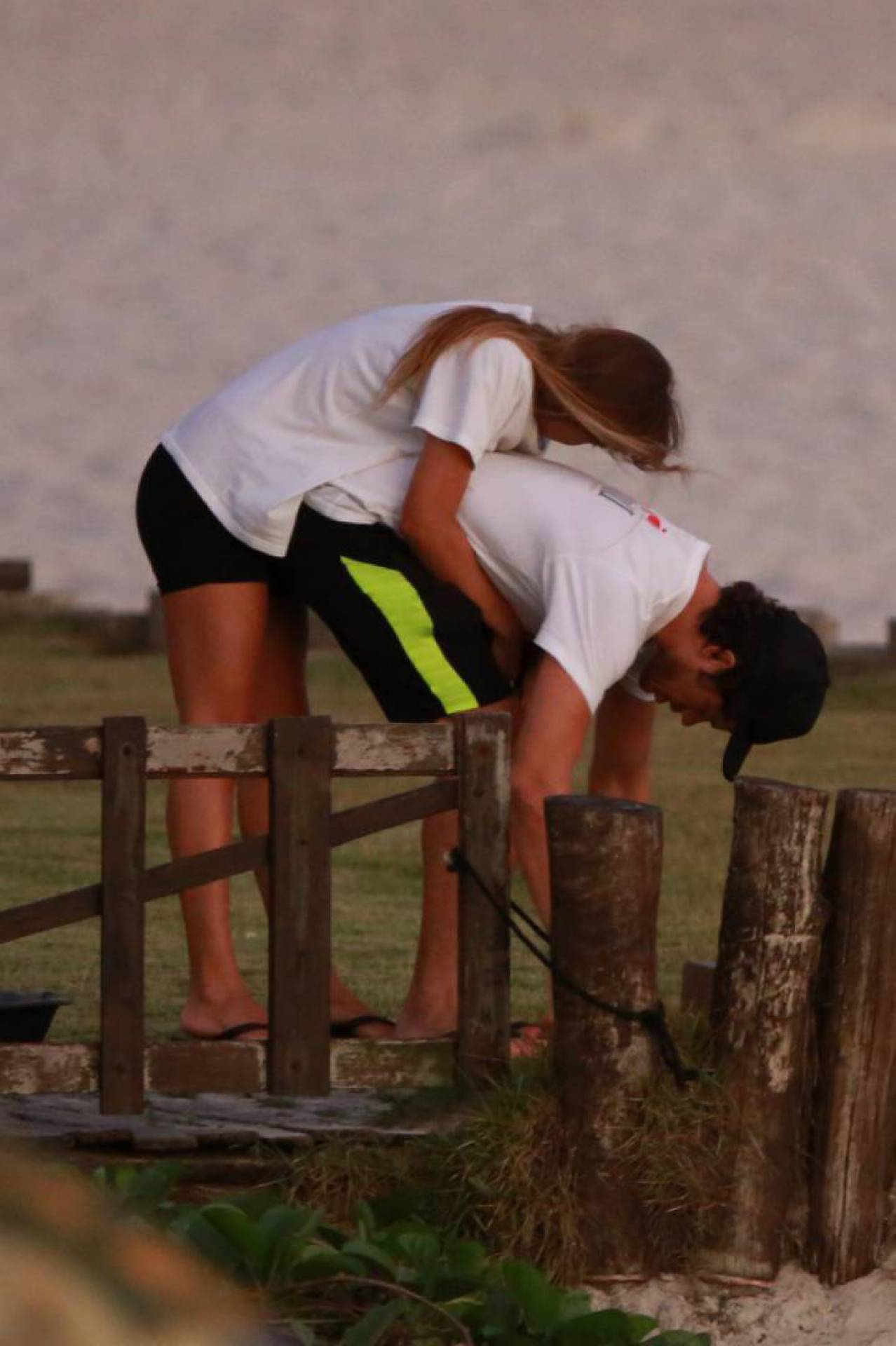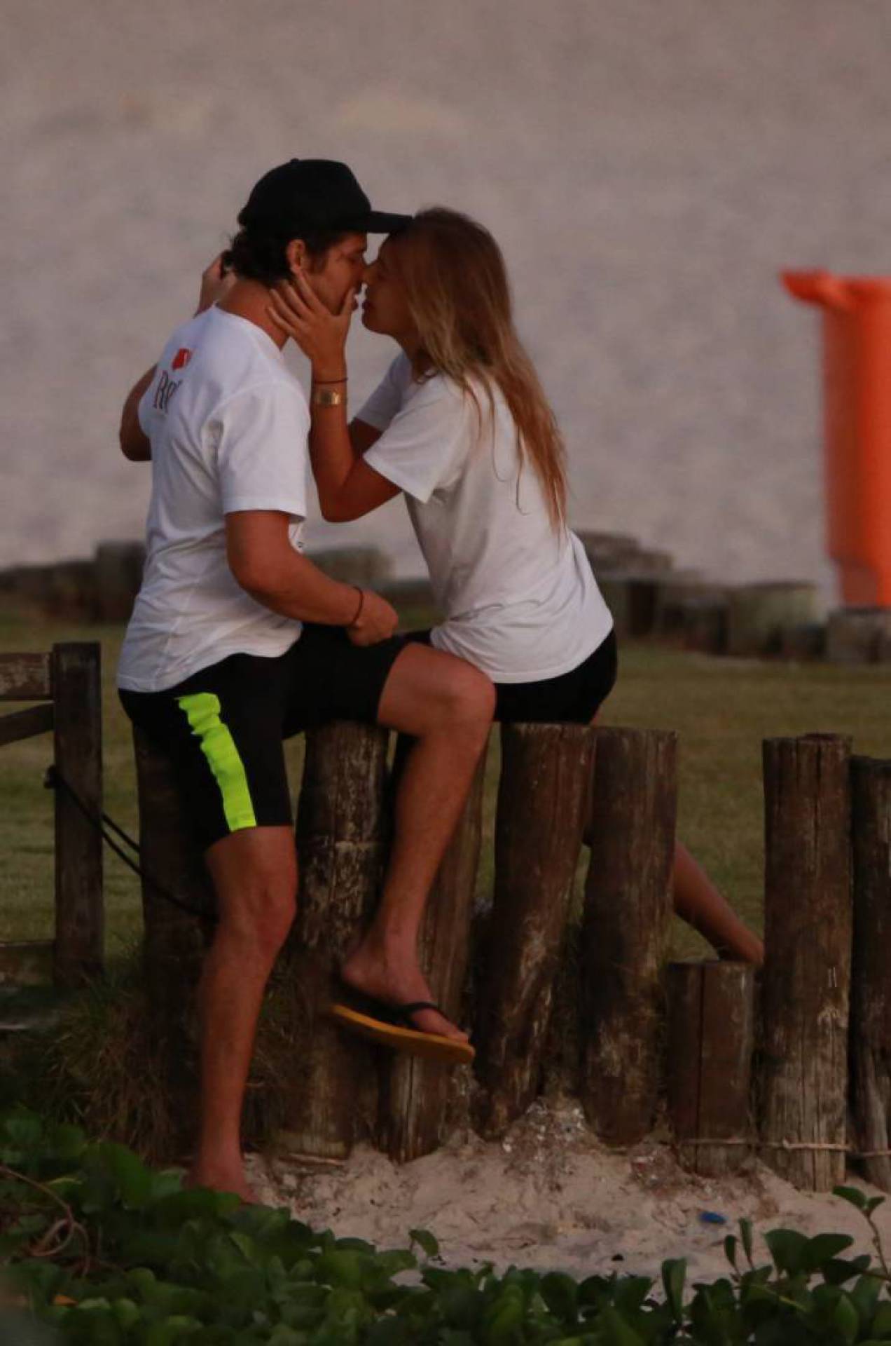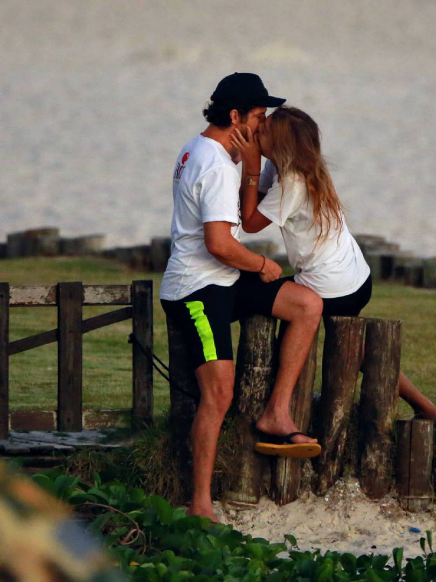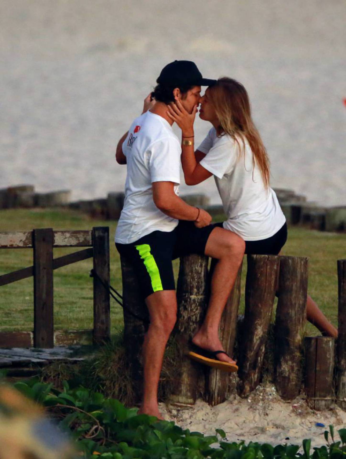 O ator foi flagrado aos beijos na praia praia da Barra da Tijuca, na Zona Oeste do Rio de Janeiro.