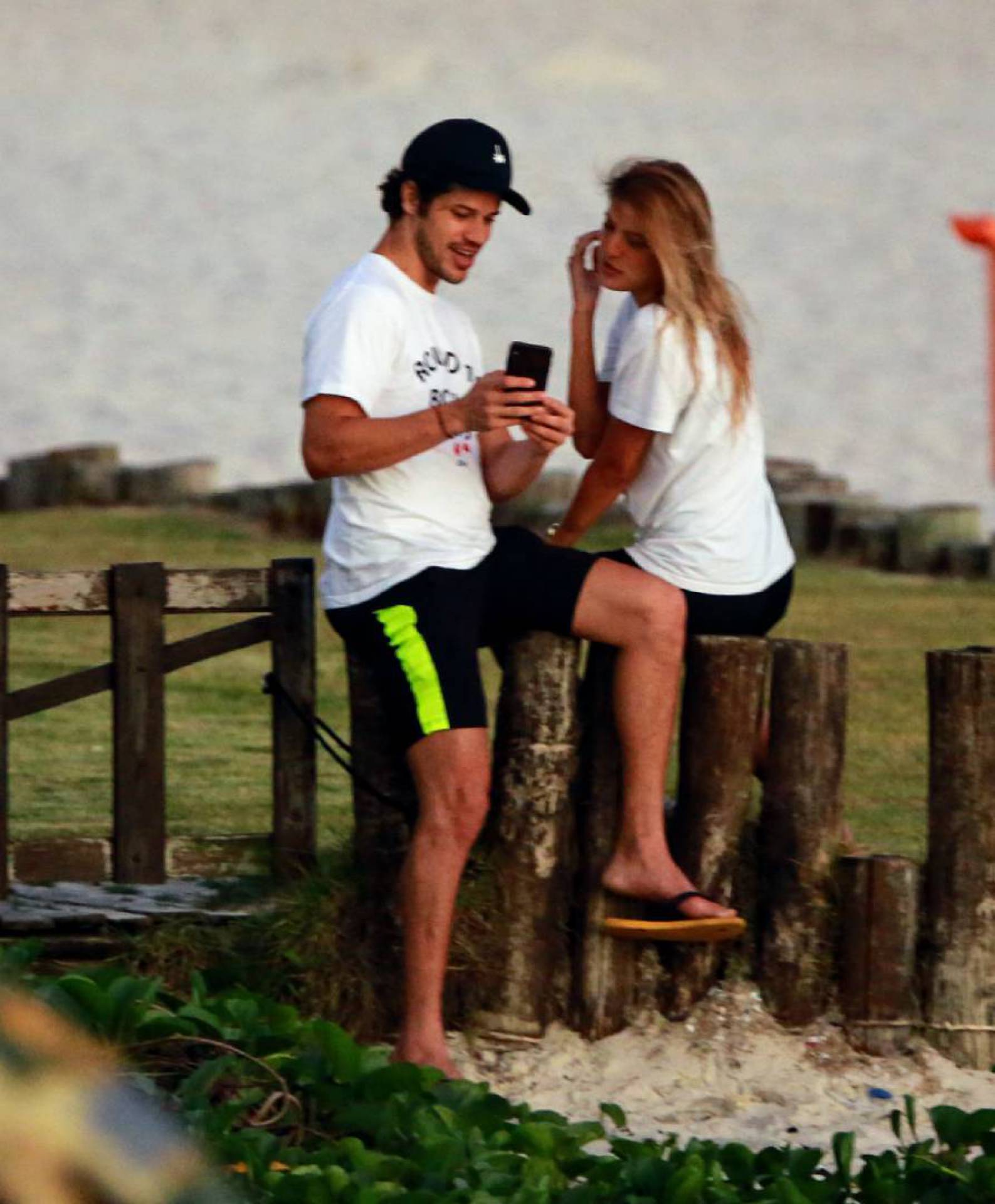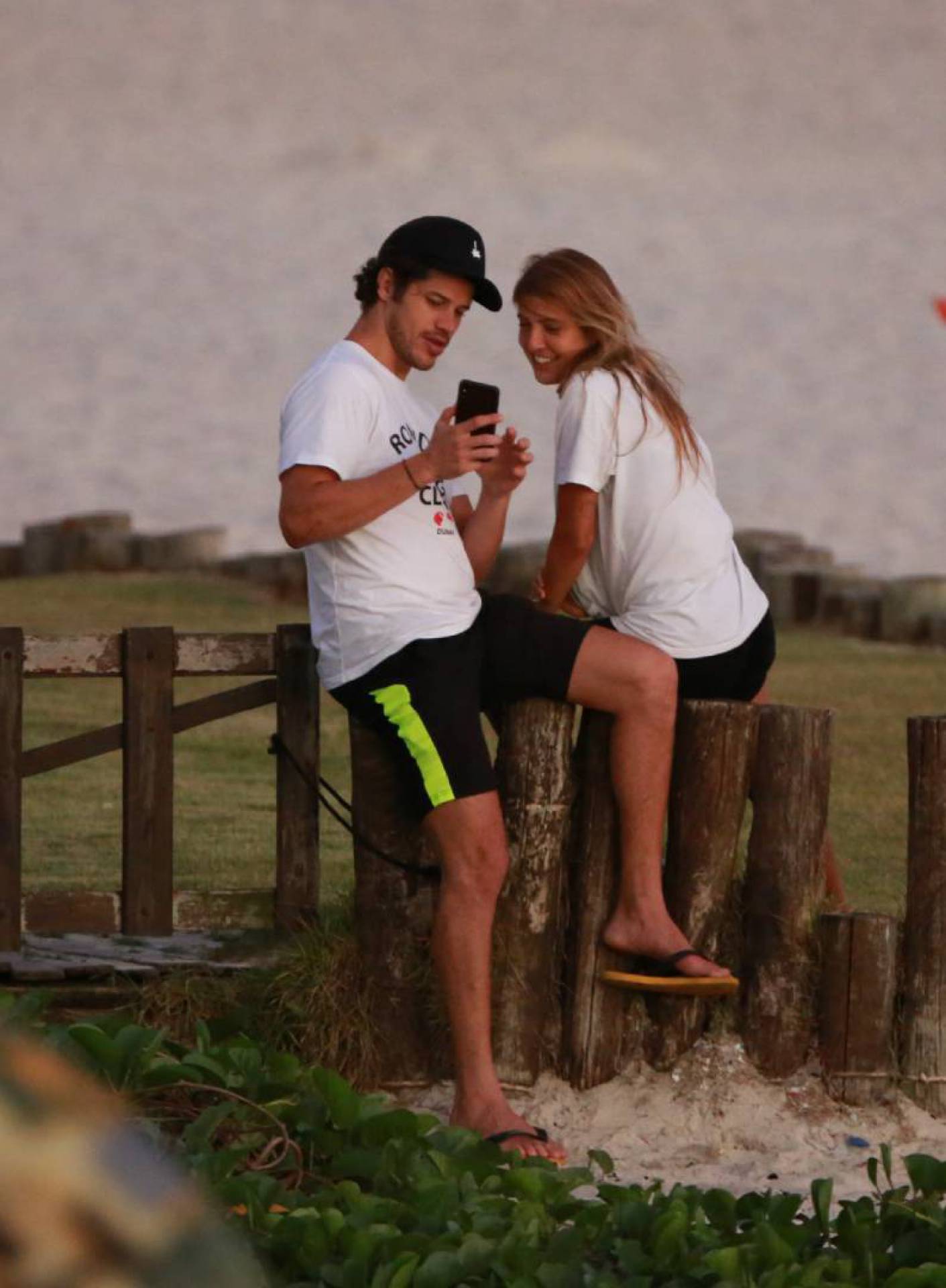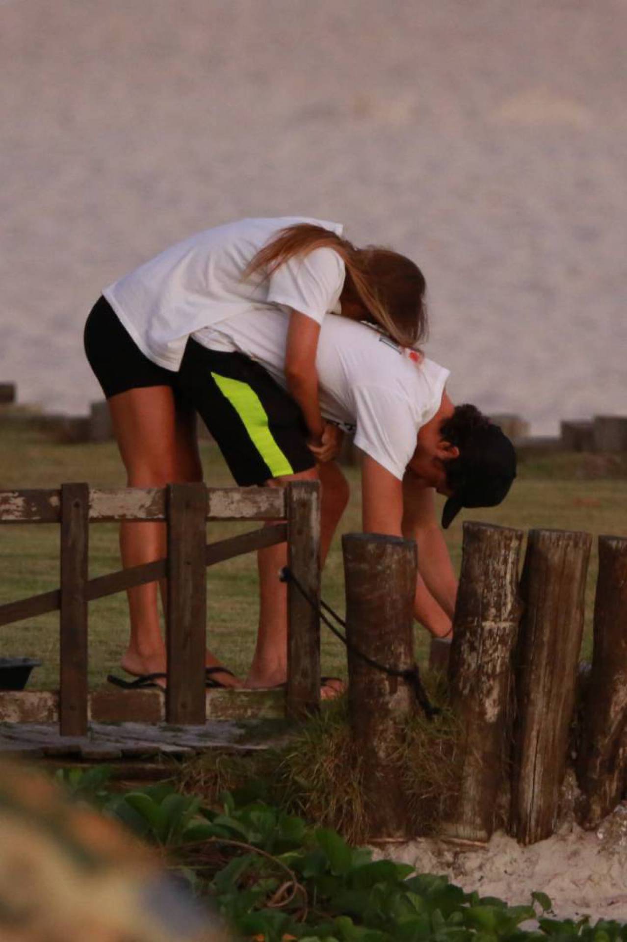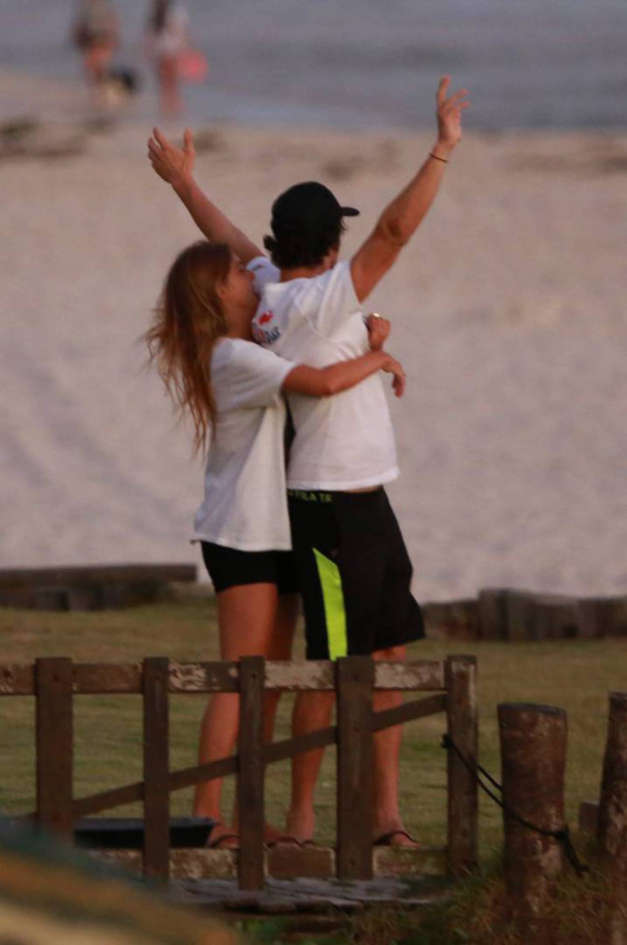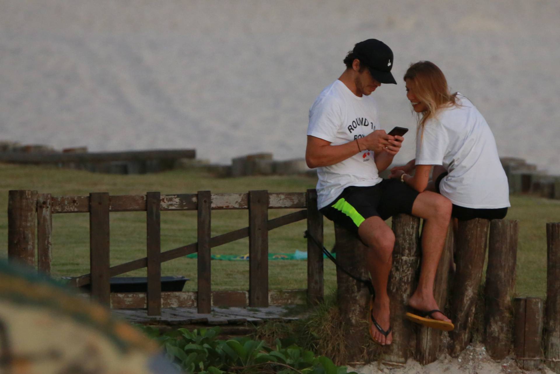 O ator foi flagrado aos beijos na praia praia da Barra da Tijuca, na Zona Oeste do Rio de Janeiro.