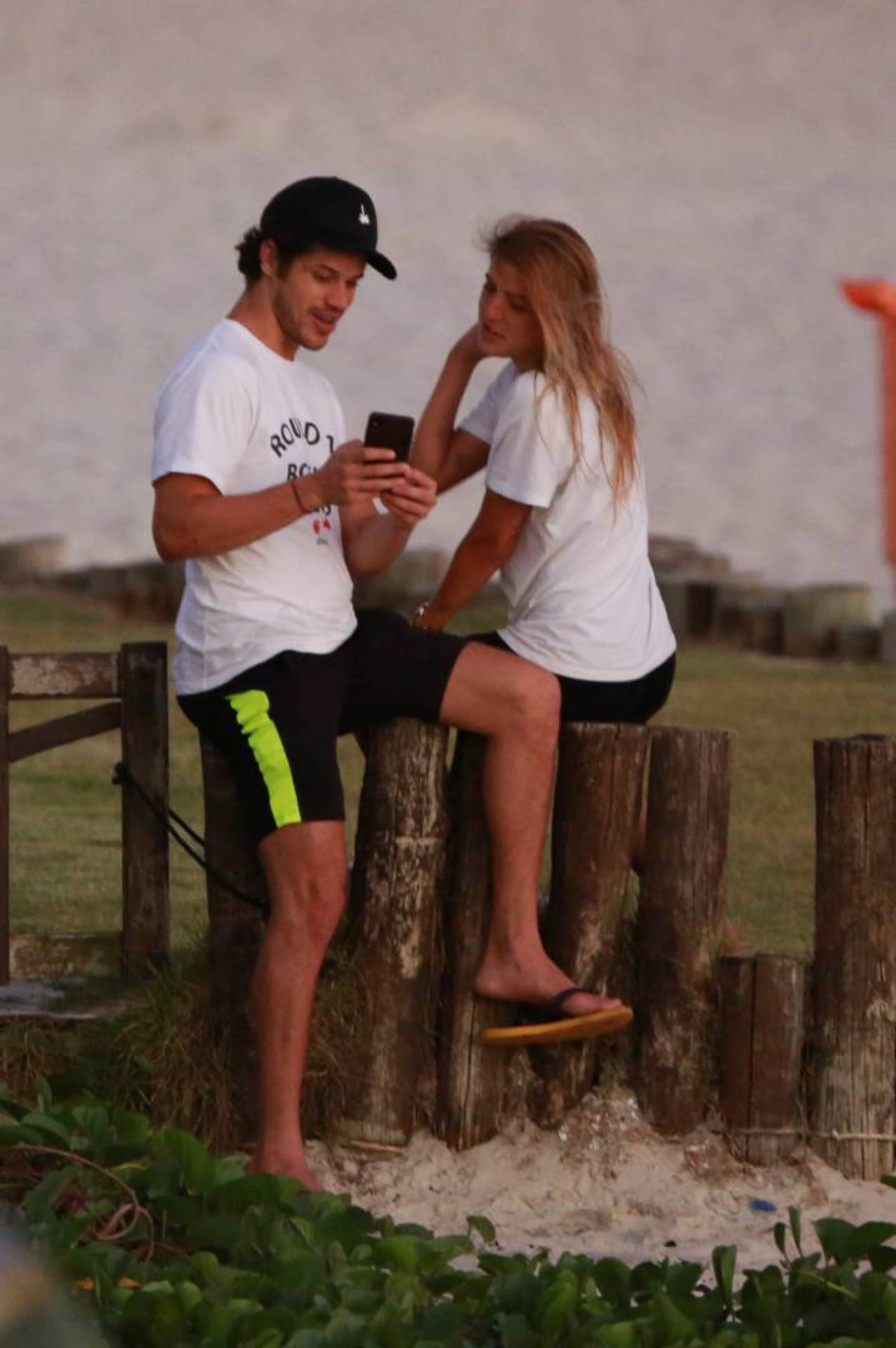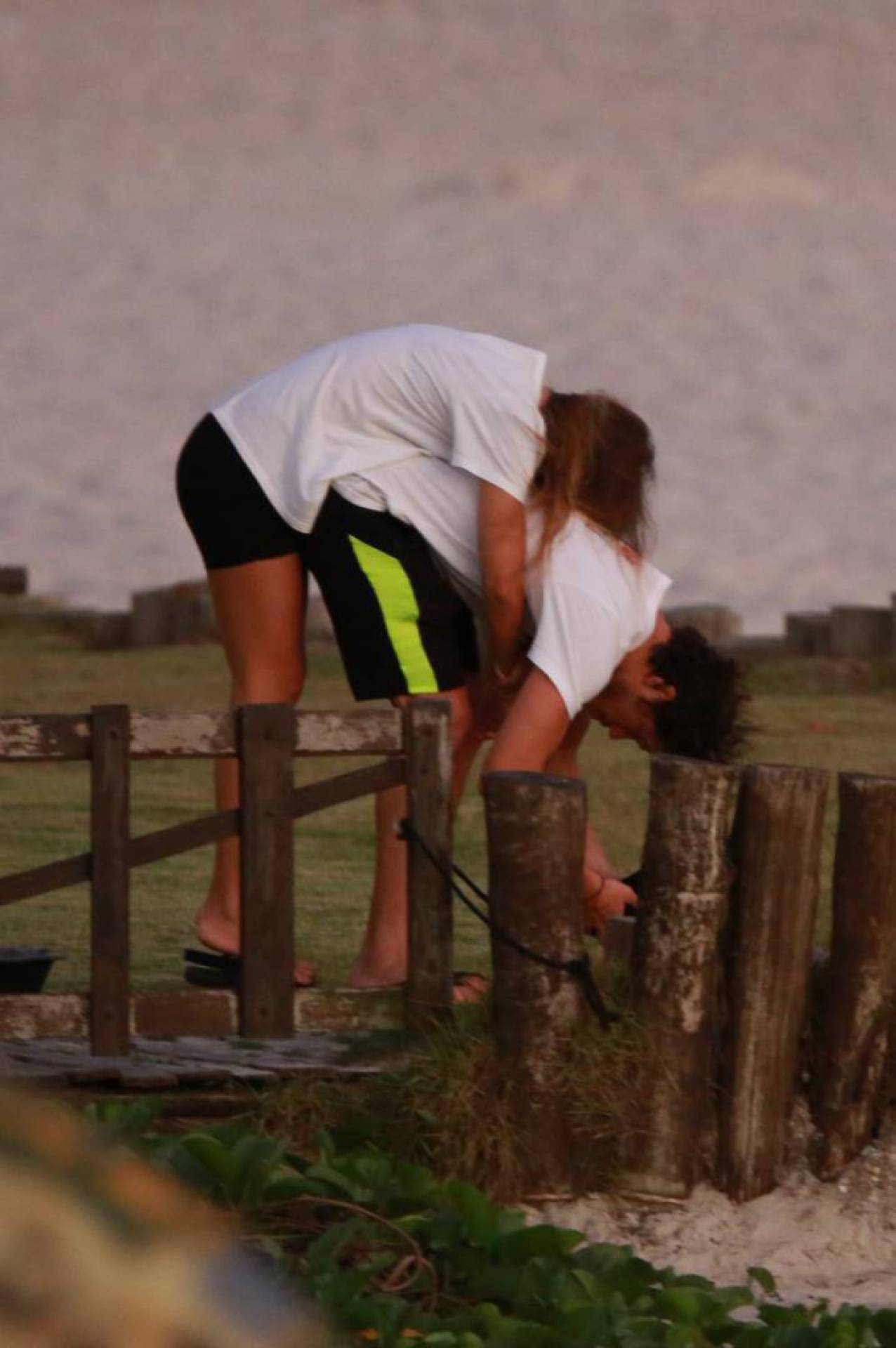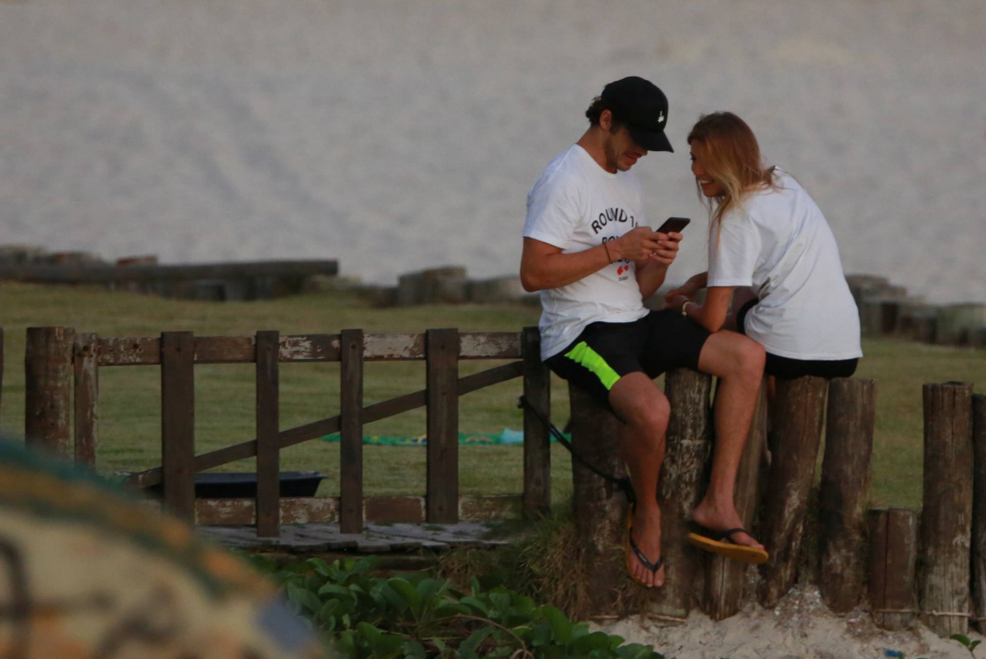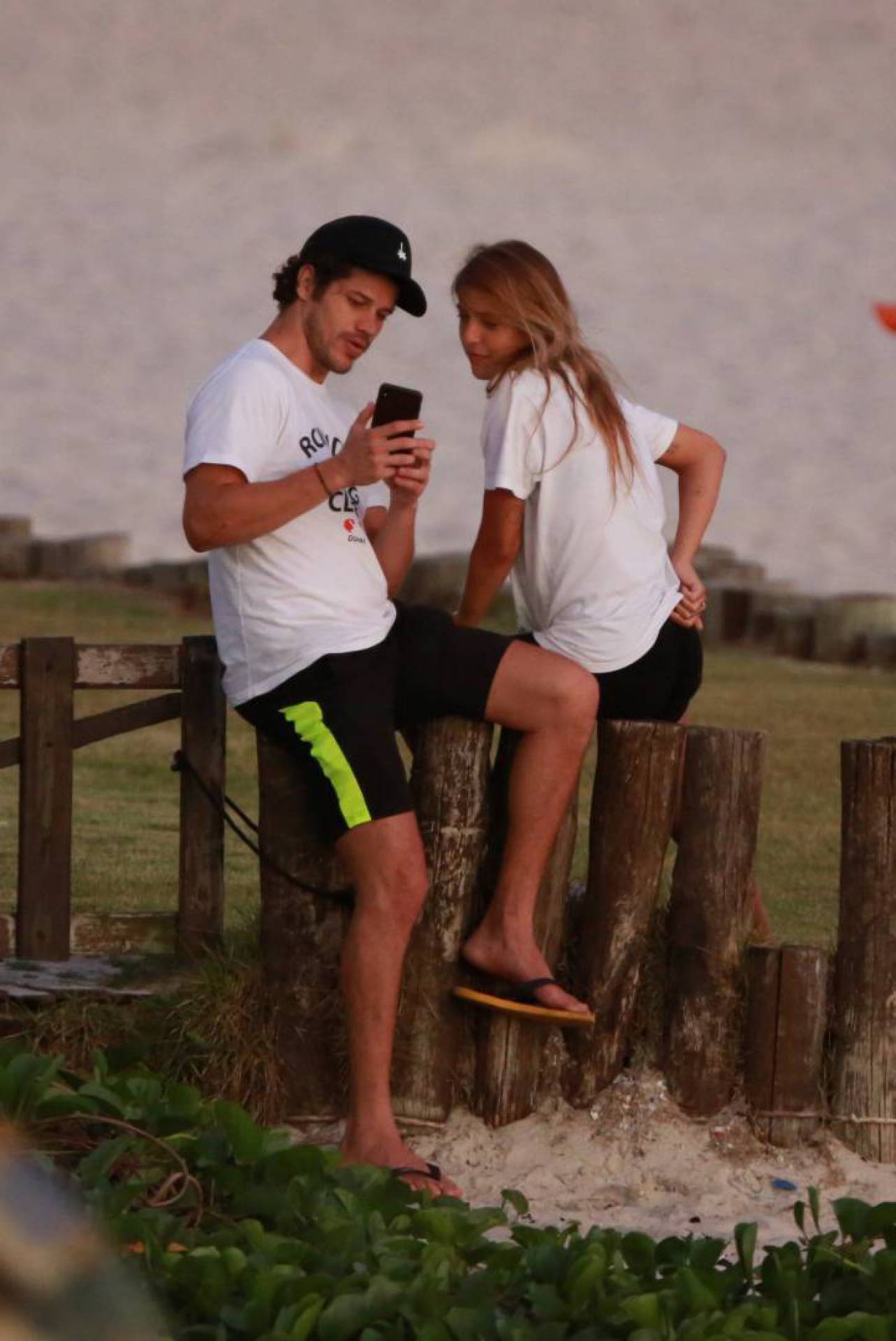 O ator foi flagrado aos beijos na praia praia da Barra da Tijuca, na Zona Oeste do Rio de Janeiro.