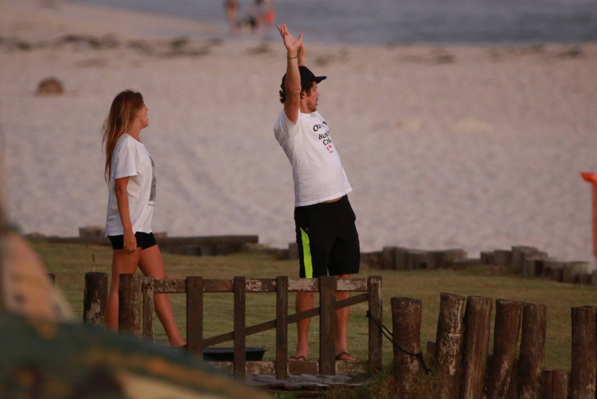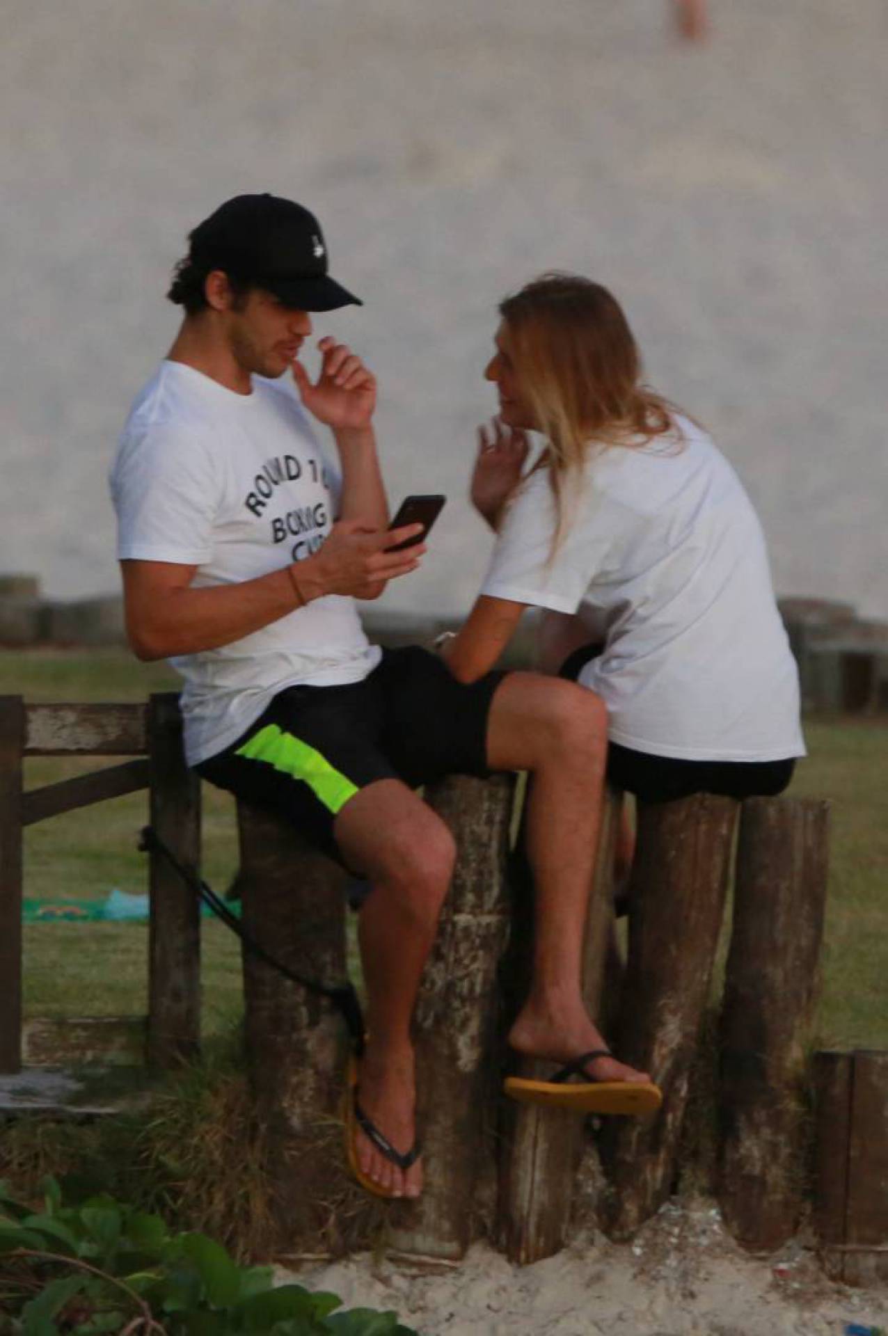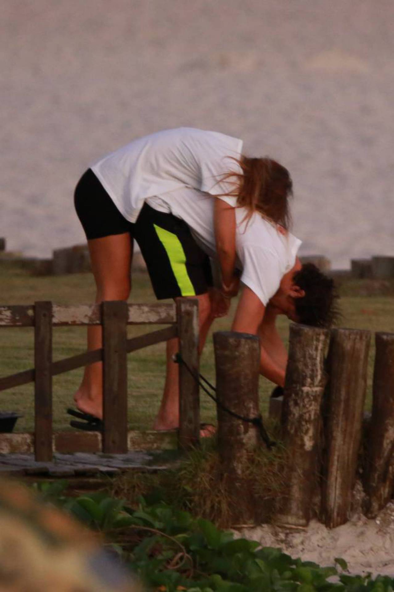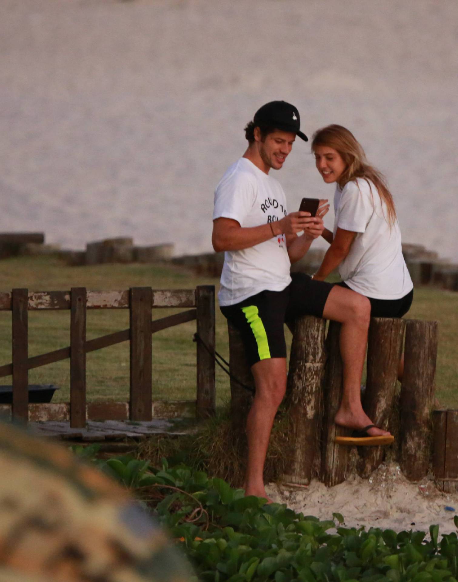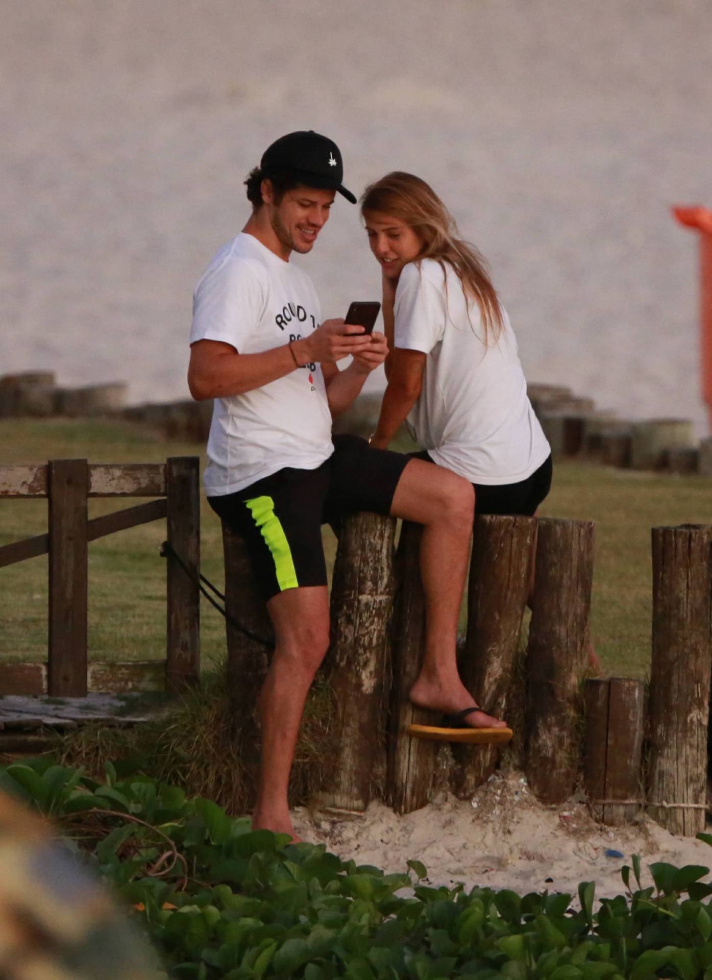 O ator foi flagrado aos beijos na praia praia da Barra da Tijuca, na Zona Oeste do Rio de Janeiro.