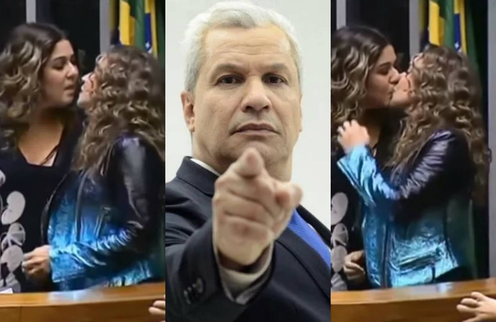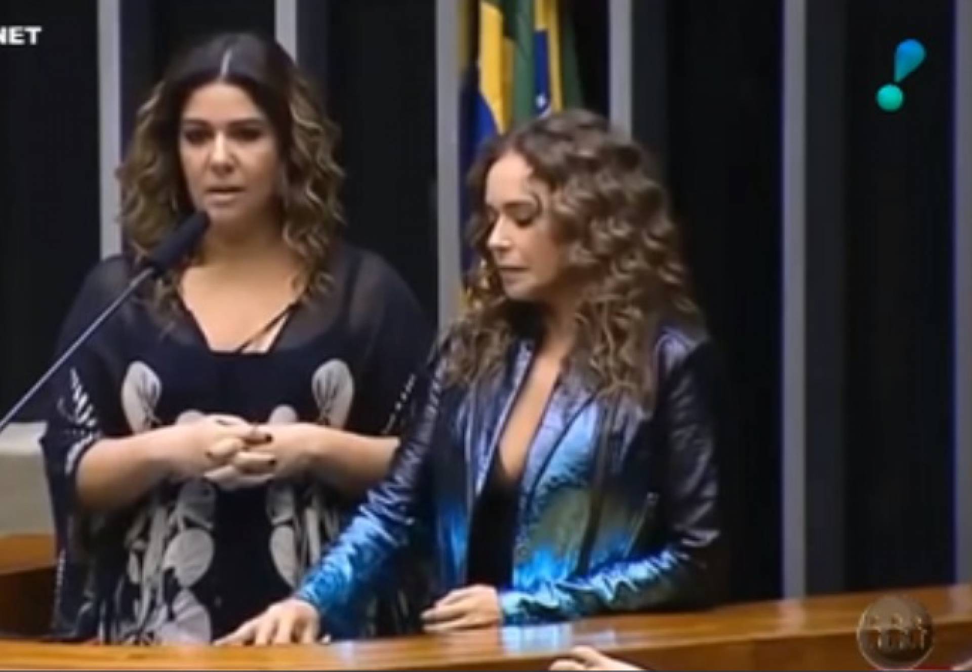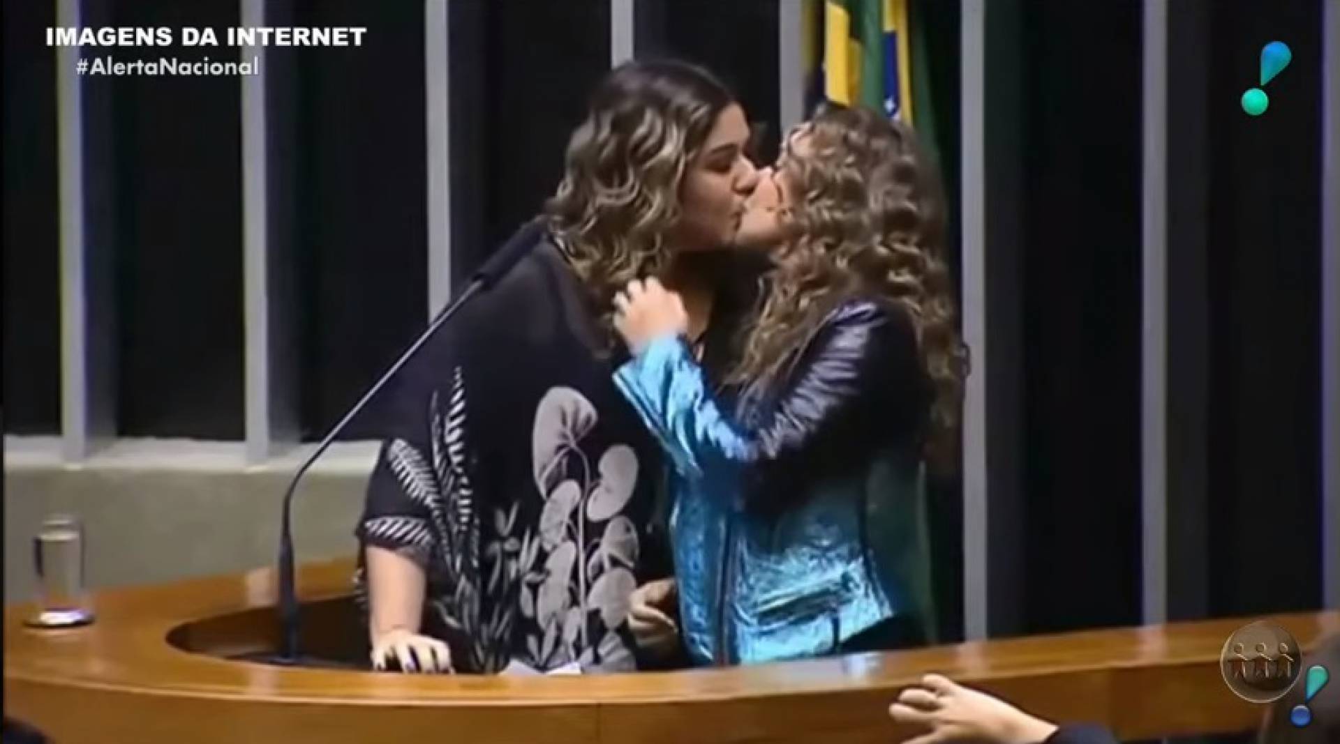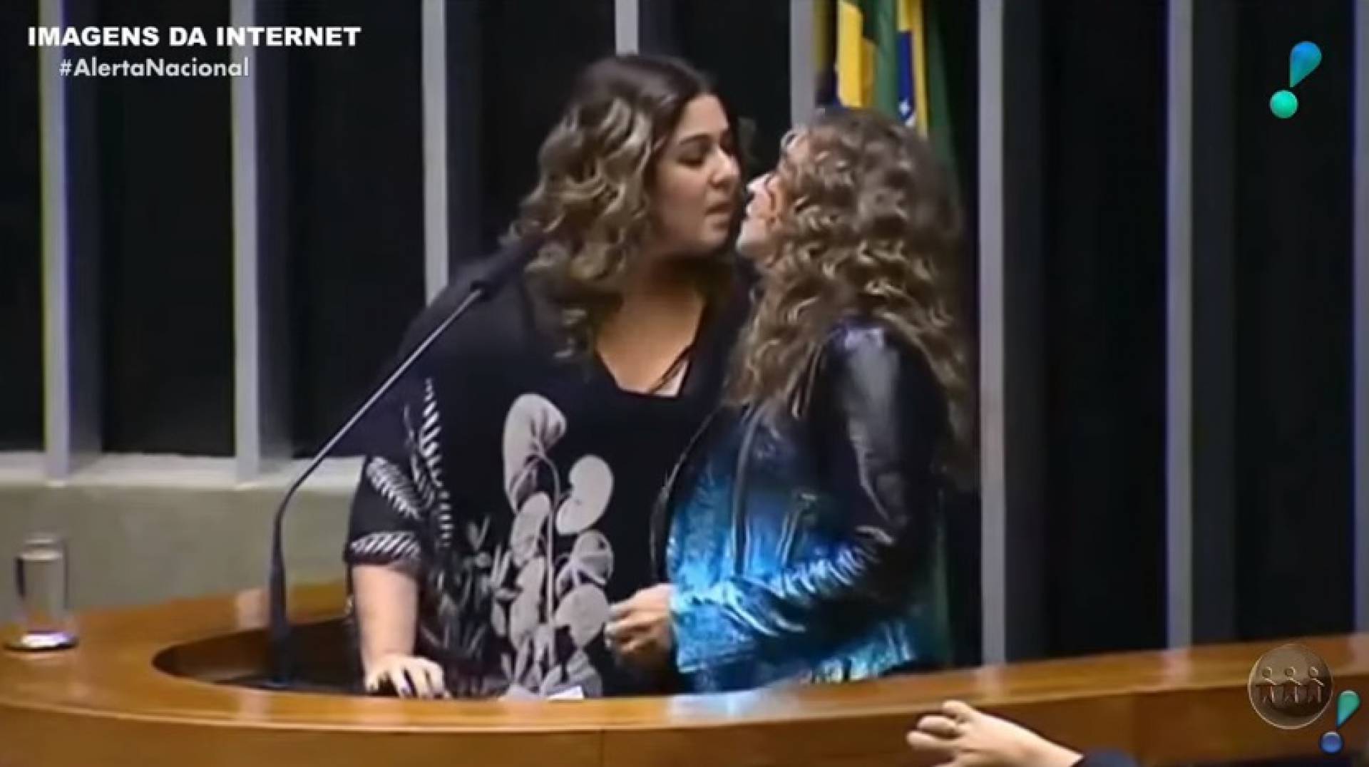 Na imagem apresentada pela Rede TV!, Daniela e sua mulher pedem por direitos, em uma audiência pública na Câmara Federal e finalizam sua fala com um beijo.- 'Mantendo o foco na dieta', diz atriz sobre isolamento social