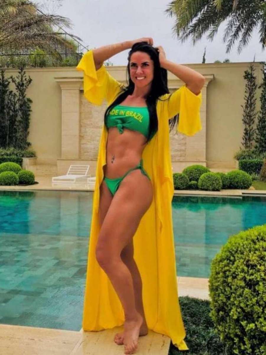 A foto foi tirada depois que ela e o maridão abusaram da pamonha. Para queimar as calorias extras, a morena caprichou na rotina de malhação.