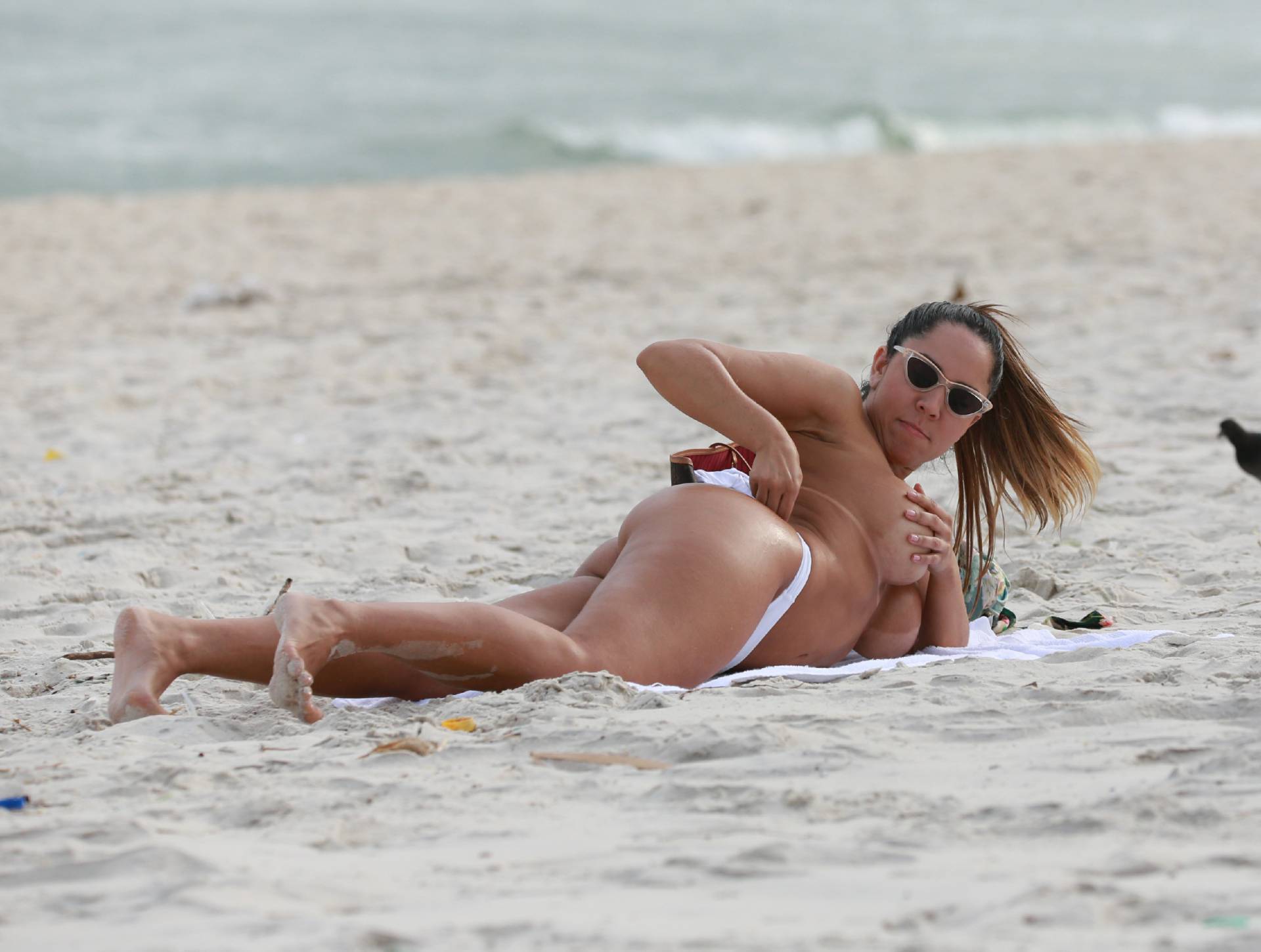 A Mulher Melão foi flagrada por um paparazzo fazendo topless na Barra da Tijuca, Zona Oste do Rio de Janeiro. A gata estava bem a vontade com seios de fora.