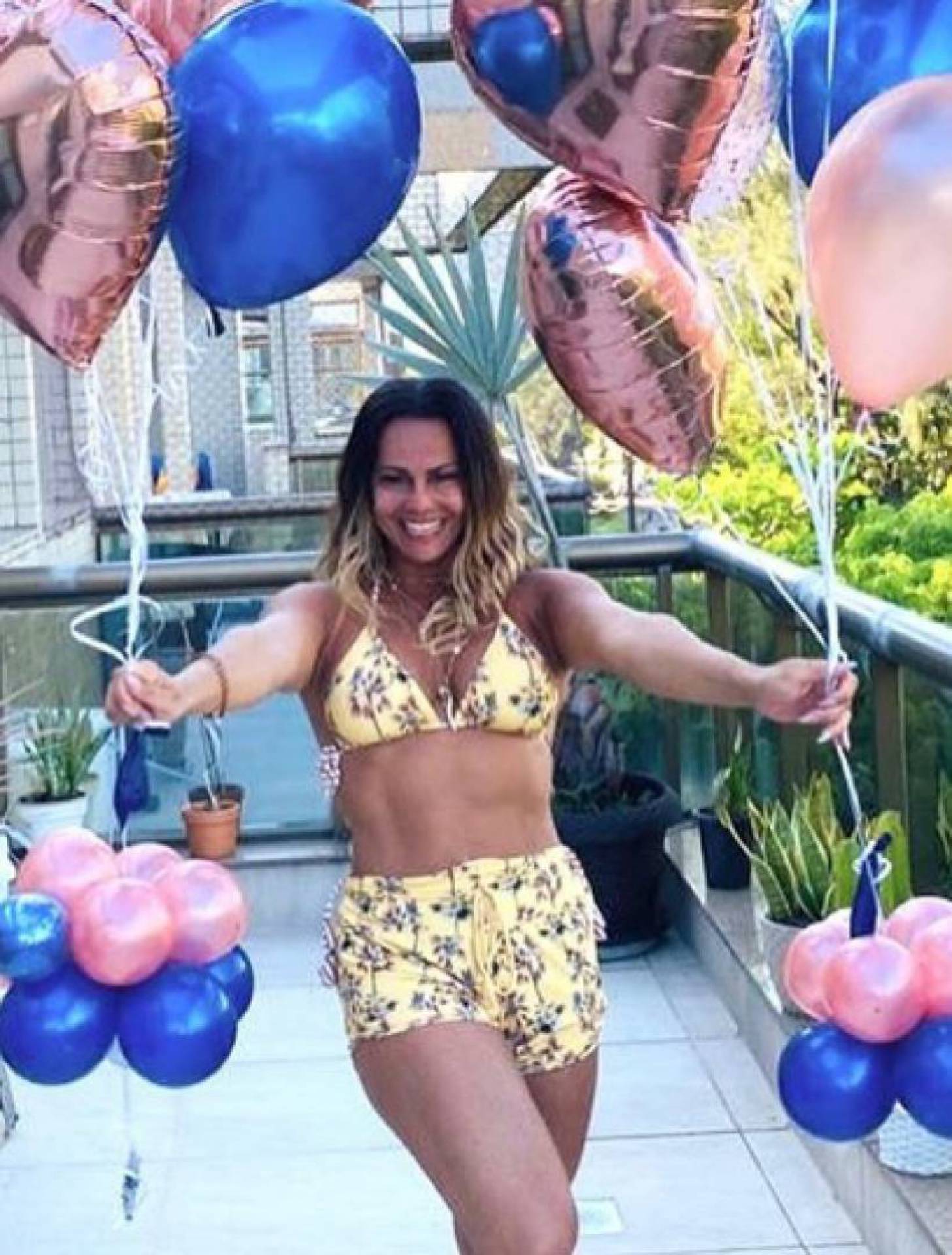 A deusa chegou a comemorar seus 45 anos, completados no dia 25 de março, em casa, com direito a presente e tudo.