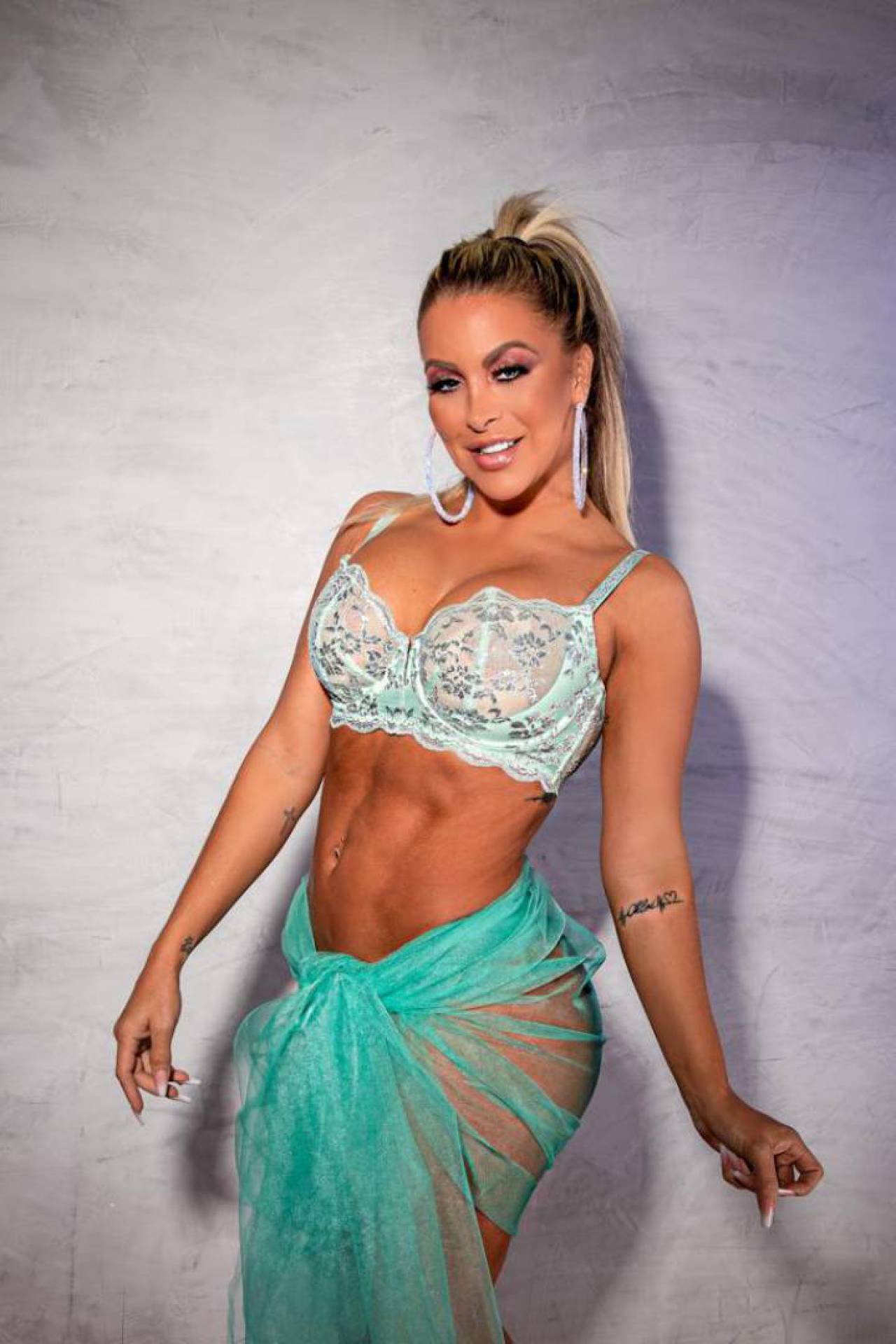 Dayse Brucieri exibiu o corpo sarado em ensaio sensual. A musa fitness posou sem calcinha com tecido de renda escondendo as partes intimas. E falou sobre falta de sexo durante a quarentena.