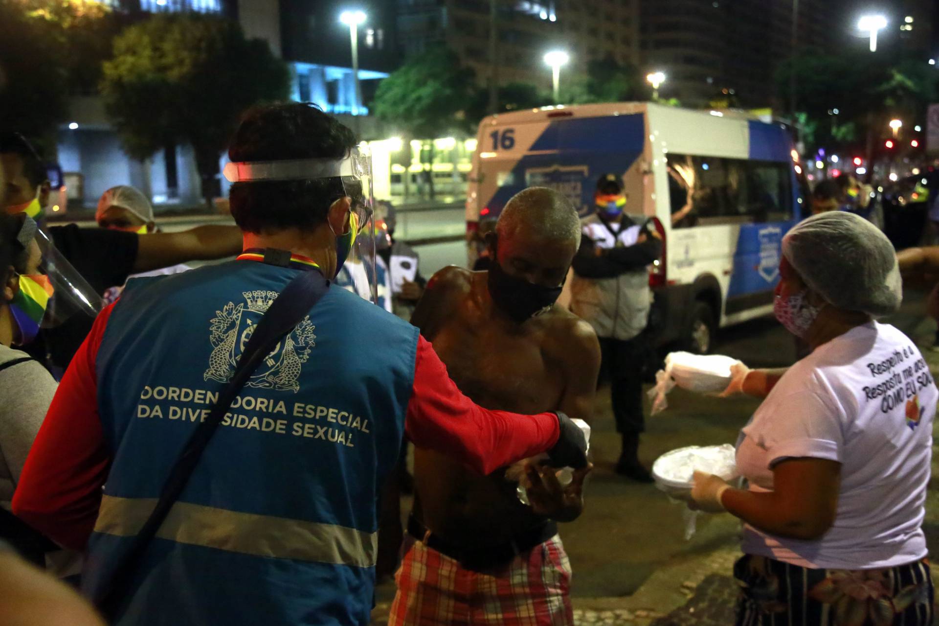 A Coordenadoria Especial da Diversidade Sexual da Prefeitura do Rio (CEDS-Rio), em conjunto com o grupo LGBT Maré Sem Preconceito - Vila do João, e o líder comunitário Betinho Cabeleireiro, entregou nesta terça-feira, 12 de maio, 120 quentinhas para pessoas em situação de rua e vulnerabilidade social, nas ruas do Centro do Rio. A ação contou com o apoio do programa Lapa Presente, II Região Administrativa do Centro e da Polícia Militar do Rio de Janeiro.