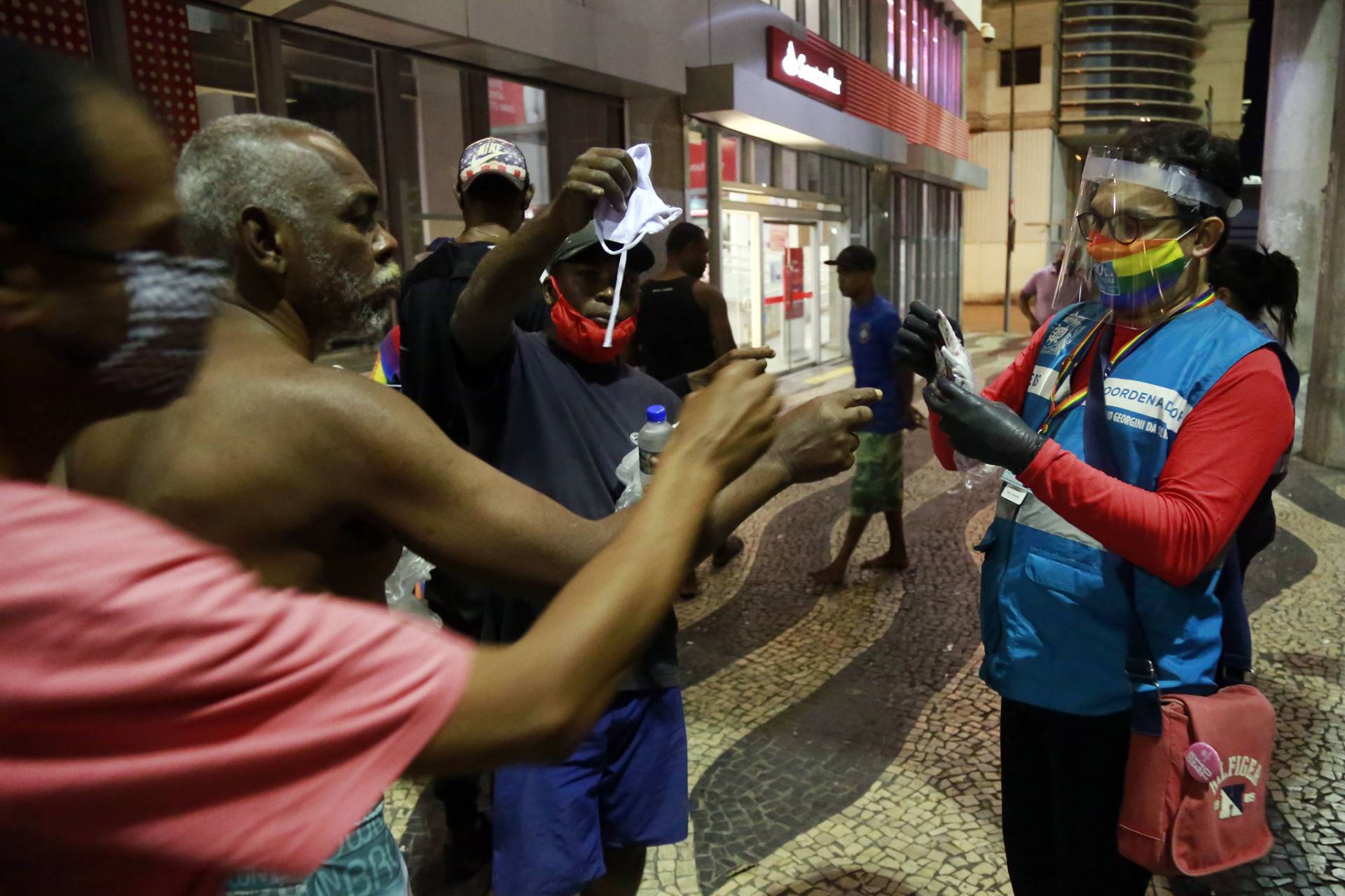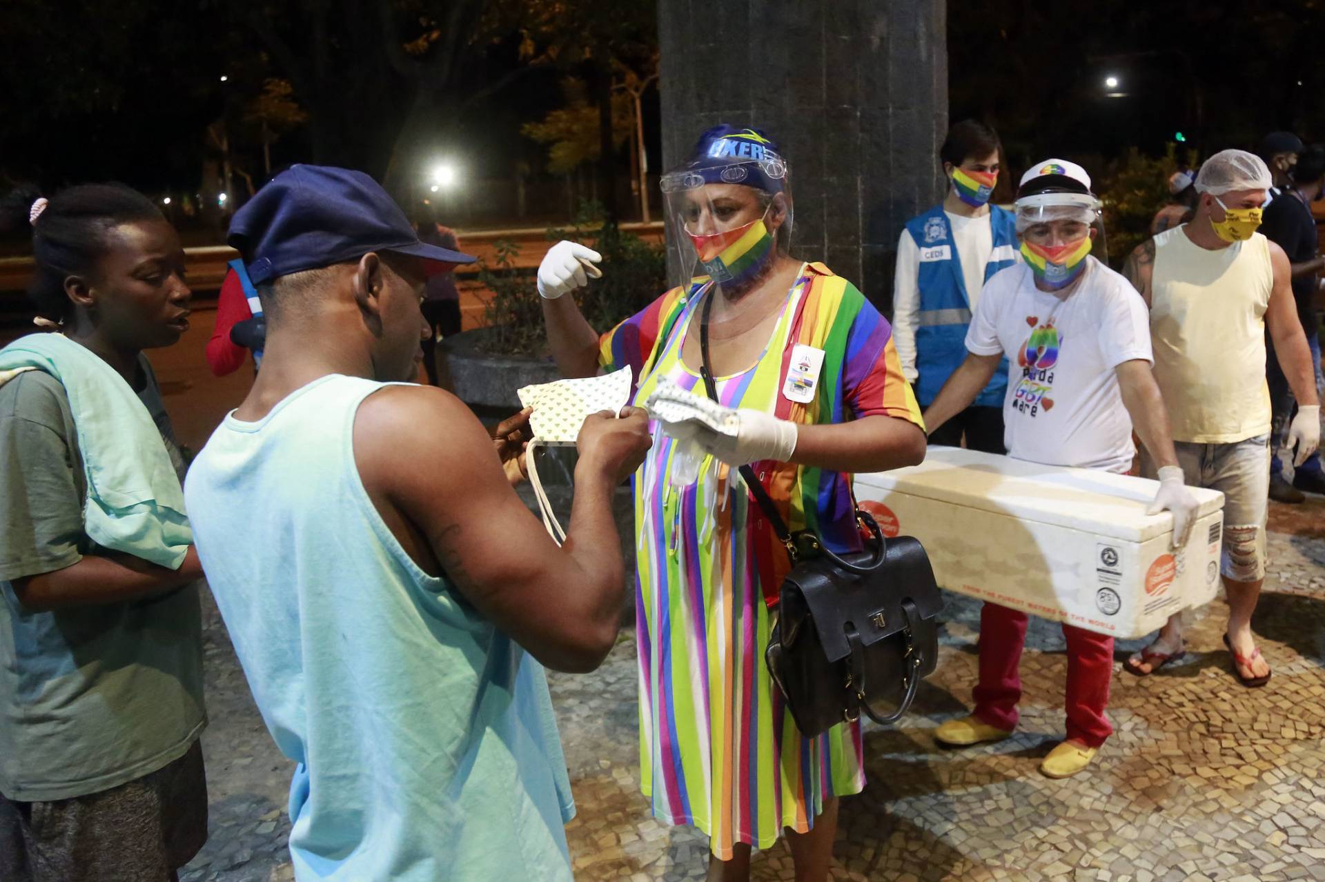 A CEDS- Rio também participou de outra ação na noite desta terça-feira, nas ruas do Centro. Dessa vez, em conjunto com o coletivo Máscaras do Bem, foram distribuídas 300 máscaras de proteção para pessoas em situação de rua e vulnerabilidade social. As peças foram confeccionadas por travestis e pessoas trans, com tecidos doados para ajudar os mais impactados pela pandemia da Covid-19.