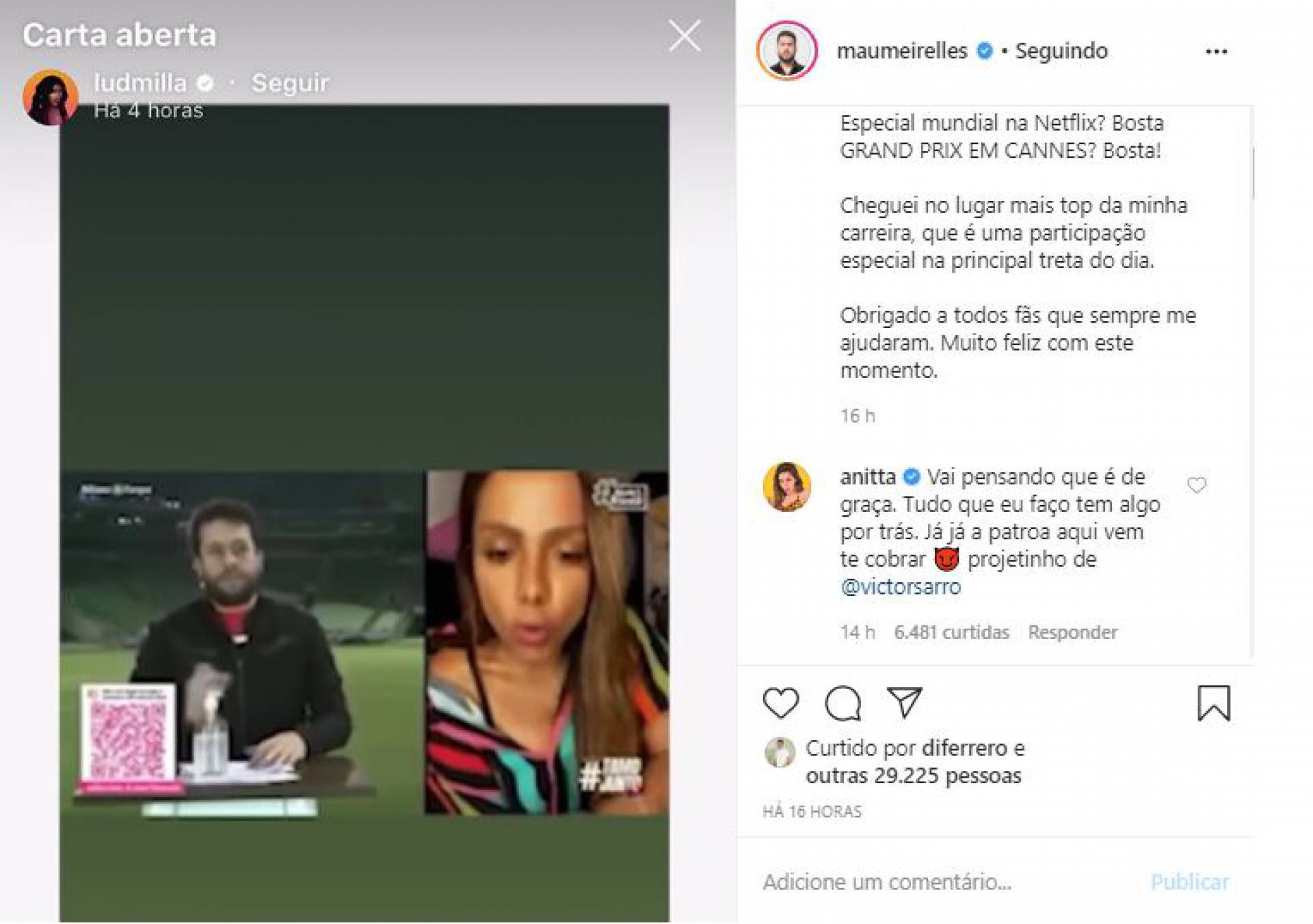 Após publicações sobre o motivo da desavença com ex-colega, supostos fãs de Anitta passaram a atacar Lud com comentários racistas em todas as redes sociais da cantora.