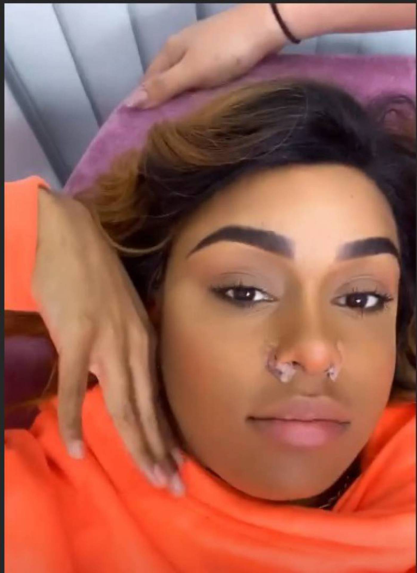 No clique, a morena surge com uma calça completamente transparente onde dá para ver perfeitamente sua calcinha fio dental.