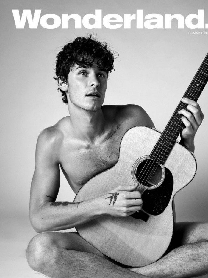 Shawn Mendes elevou a temperatura nas redes sociais ao tirar a roupa para a capa da revista "Wonderland". Na foto, o cantor canadense aparece apenas segurando um violão e tocando o instrumento, que tapa suas partes íntimas.