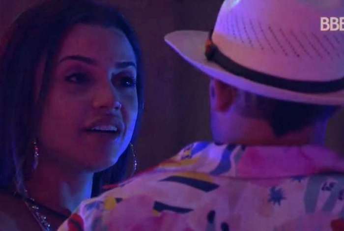 "Não falou ainda para você?", perguntou o sírio. "Eu já pedi pra ele falar e ele falou que não consegue falar. Eu: 'você pode falar qualquer coisa pra mim, é alguma coisa que eu to fazendo?'. Eu falei: 'você tem que me falar pra eu parar de fazer'. Ele não fala", lamentou a mineira.