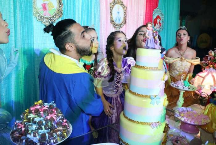 Rio - Pouco mais de um mês após reatarem o casamento, Naldo e a esposa, Ellen Cardoso, a Mulher Moranguinho, marcaram presença na festa de 6 anos da filha mais velha da Perlla, Pérola. A primogênita da funkeira fez aniversário no último sábado, 25 de março, e reuniu a família e amigos, nesta terça-feira, na casa de festas Dreams, na Zona Oeste da cidade.