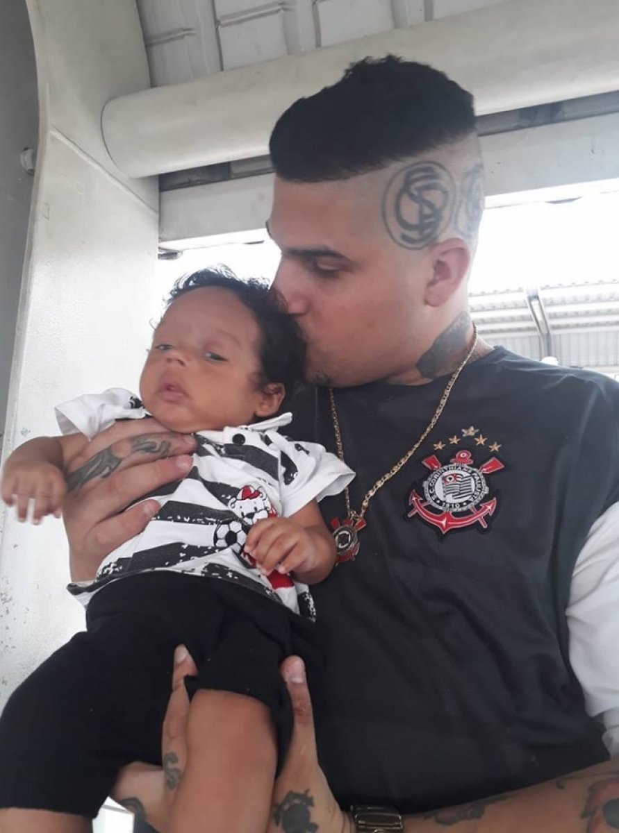 No mesmo dia do nascimento do bebê o Corinthians ganhou do Bahia por 2 a 1, pela 12ª rodada do Campeonato Brasileiro. No Facebook do pai, dá pra ver que ele é apaixonado mesmo pelo clube. Leandro mostra, com orgulho, diversas tatuagens dedicadas ao Timão. Até na cabeça...
