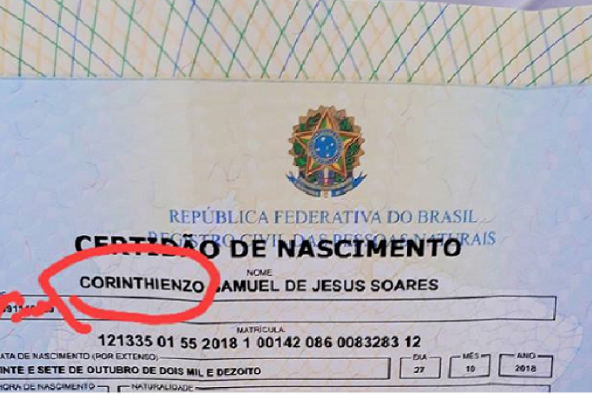 O amor pelo clube do coração pode ir longe. É o caso de Leandro Soares, torcedor fanático do Corinthians. Em outubro do ano passado, em homenagem ao Timão, ele decidiu batizar seu filho recém-nascido como Corinthienzo Samuel de Jesus Soares.