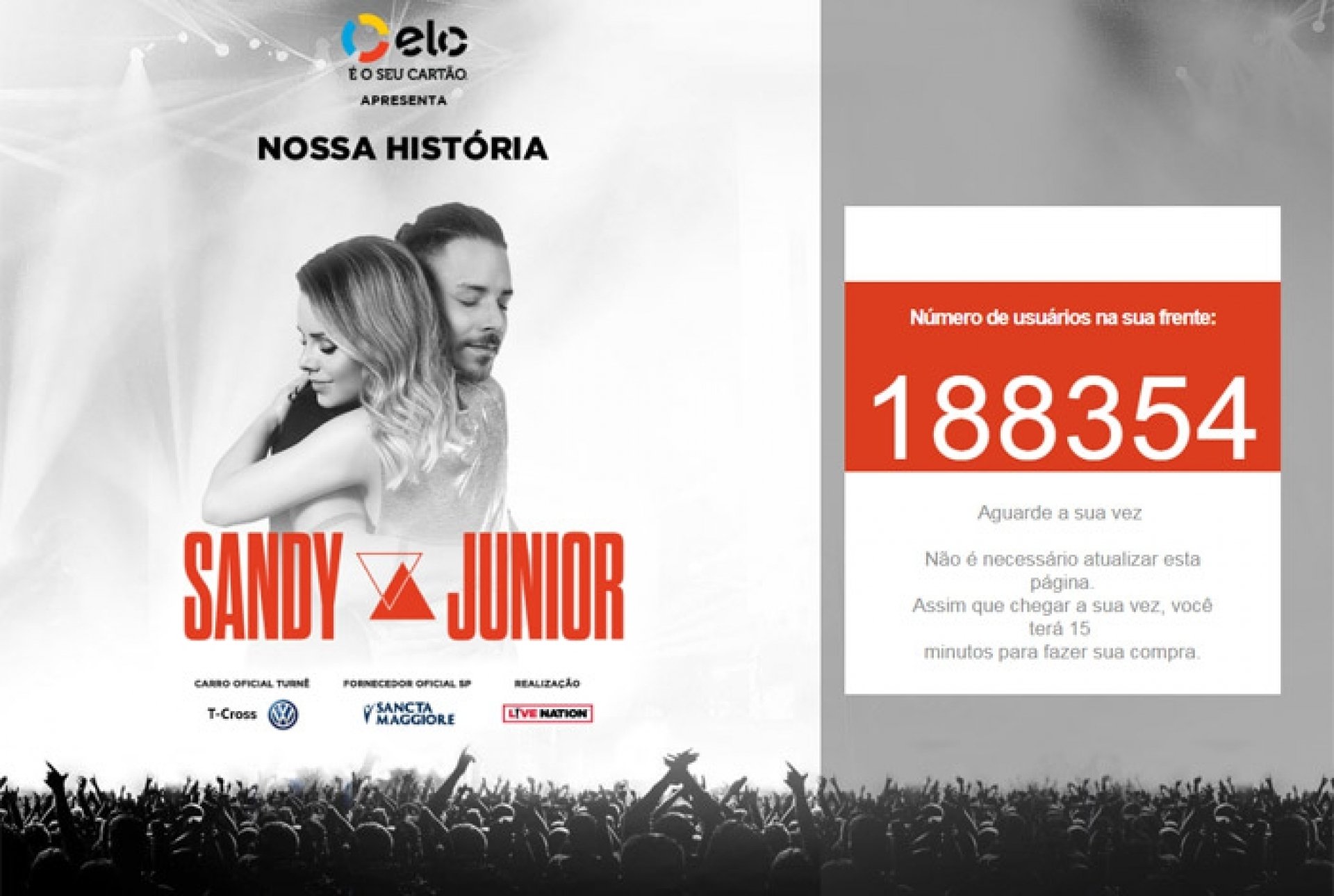 Durante a manhã desta quarta-feira, a fila virtual para adquirir o ingresso de pré-venda chegou a 188.354 pessoas. O número é superior ao que Vasco, Fluminense e Botafogo levaram aos seus estádios neste Campeonato Carioca. O Fluminense, por exemplo, mesmo embalado pela contratação de Ganso, somou 158.164 pessoas por onde jogou no estado. O maior público foi no Fla-Flu da semifinal da Taça Guanabara (mais de 50 mil presentes). Nem o Vasco, campeão do primeiro turno, consegue barrar a quantidade de apaixonados que querem ver Sandy & e Júnior ao vivo. O Cruzmaltino teve 103.983 torcedores nos jogos disputados no Rio de Janeiro.