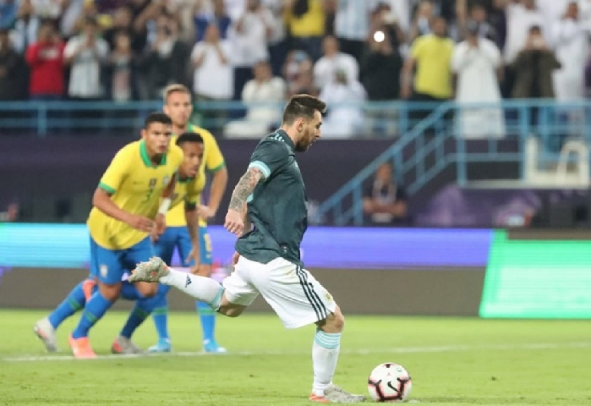 Para piorar, dois minutos depois, Alex Sandro derrubou Messi na área — segunda vez nesses cinco amistosos que o lateral esquerdo fez pênalti (a outra foi contra a Colômbia). Messi cobrou e Alisson defendeu, mas o craque marcou no rebote. Sem tesão, mesmo com posse de bola, o Brasil terminou a etapa inicial pressionado.