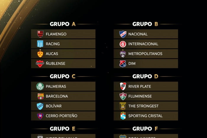 GRUPO A: Flamengo, Racing (ARG), Aucas (EQU) e Ñublense (CHI).