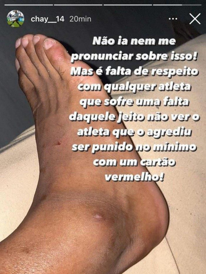 "Não ia nem me pronunciar sobre isso. Mas é falta de respeito com qualquer atleta que sofre uma falta daquele jeito não ver o atleta que o agrediu ser punido no mínimo com um cartão vermelho", disse Chay.