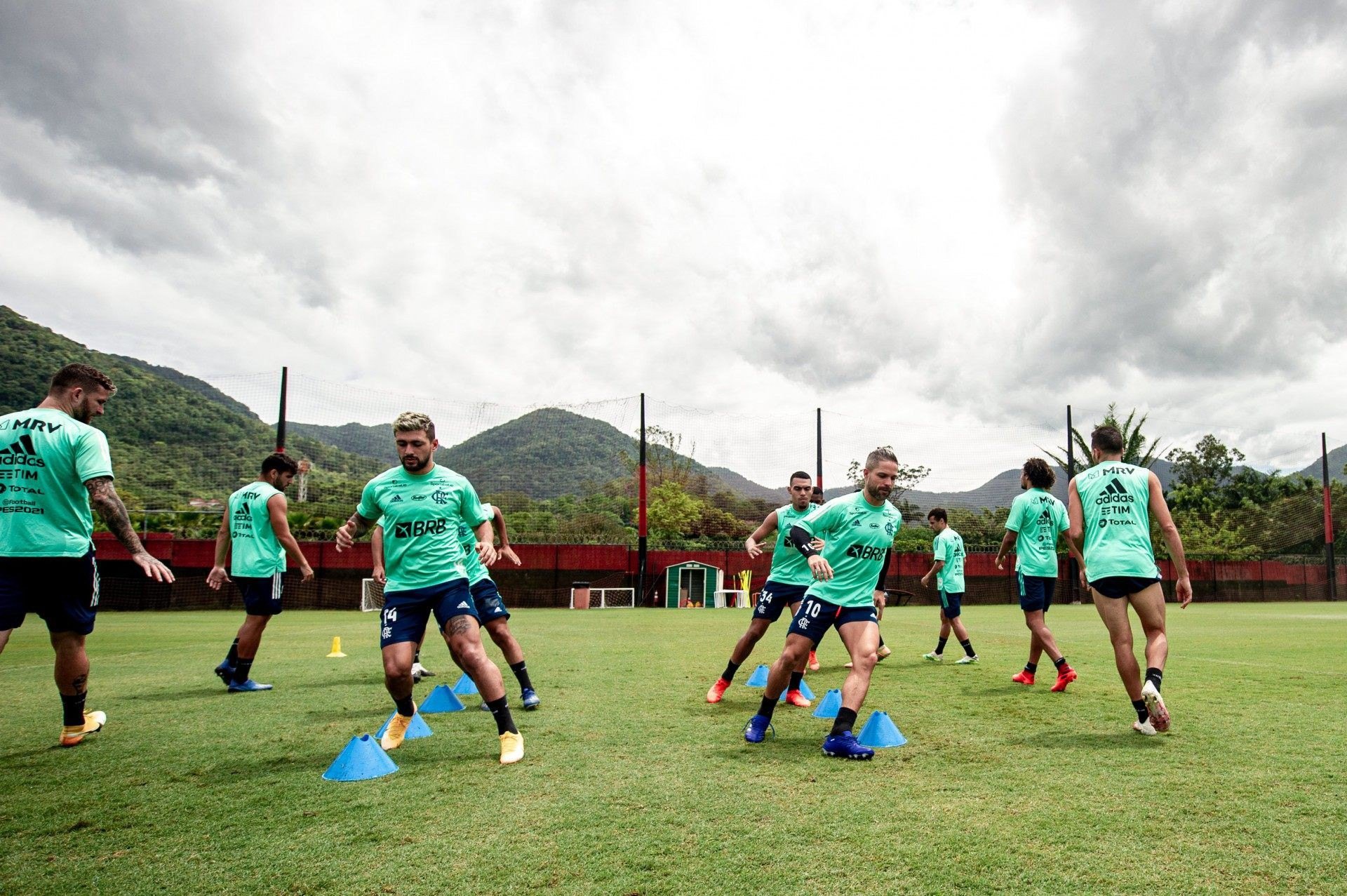 Arrascaeta fez os treinos de aquecimento e prévios à atividade principal junto ao grupo de jogadores que não iniciou entre os titulares - que realizaram um treino regenerativo, como de praxe - diante do Corinthians.
