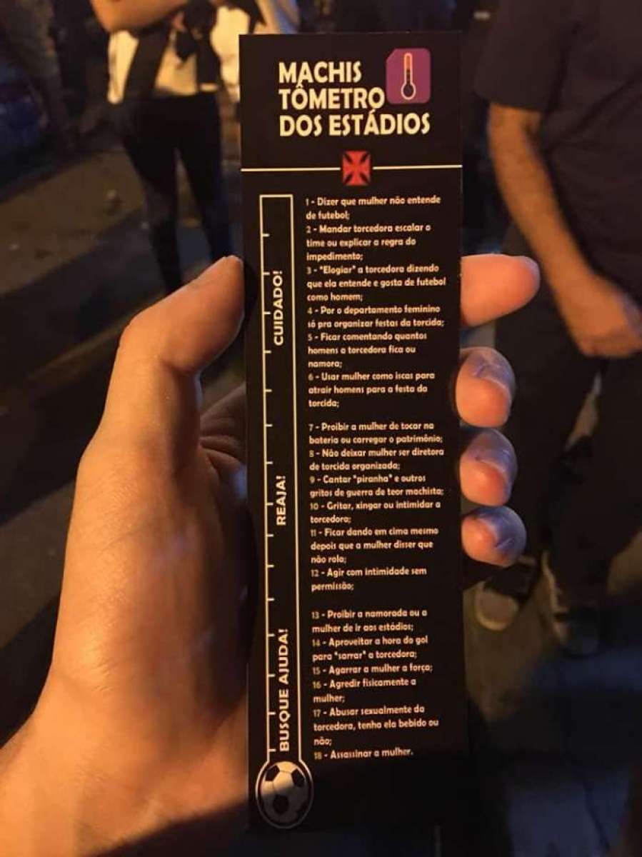 "Teve uma rejeição bem pequena. Já ouvimos até que estamos invadindo um território masculino, que não podemos reclamar de nenhum tipo de assédio, já que estádio não é nosso lugar. Para os homens dessa minoria, só digo que eles estão bem equivocados, porque vai ter mulher na arquibancada, gandulando, apitando jogo, tocando em bateria de torcida e reclamando sim quando for assediada. Não vamos mais ficar de braços cruzados", avisa.