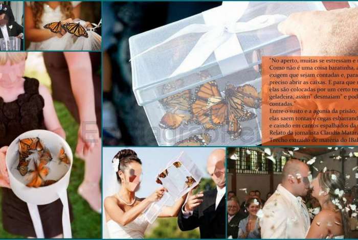 Os animais são despachados em pequenas caixas. Na hora da “revoada”, alguém sacode essas caixinhas para que as borboletas se mexam. Muitas, porém, não resistem nem à viagem e morrem. Outras, durante a soltura, saem desnorteadas, batem em alguma coisa e morrem.