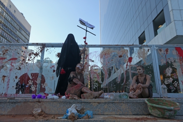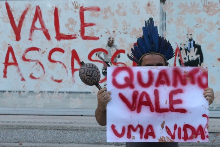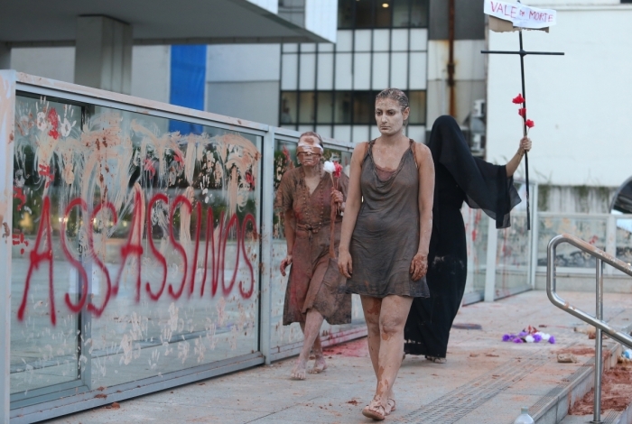 Cerca de 50 pessoas participaram do protesto, que também teve performances, discursos e exibição de cartazes com cobranças à Vale e ao governo. Não houve confrontos. Seguranças da Vale acompanharam o ato, mas não interferiram. Quatro policiais militares também estiveram presentes, mas não precisaram agir.